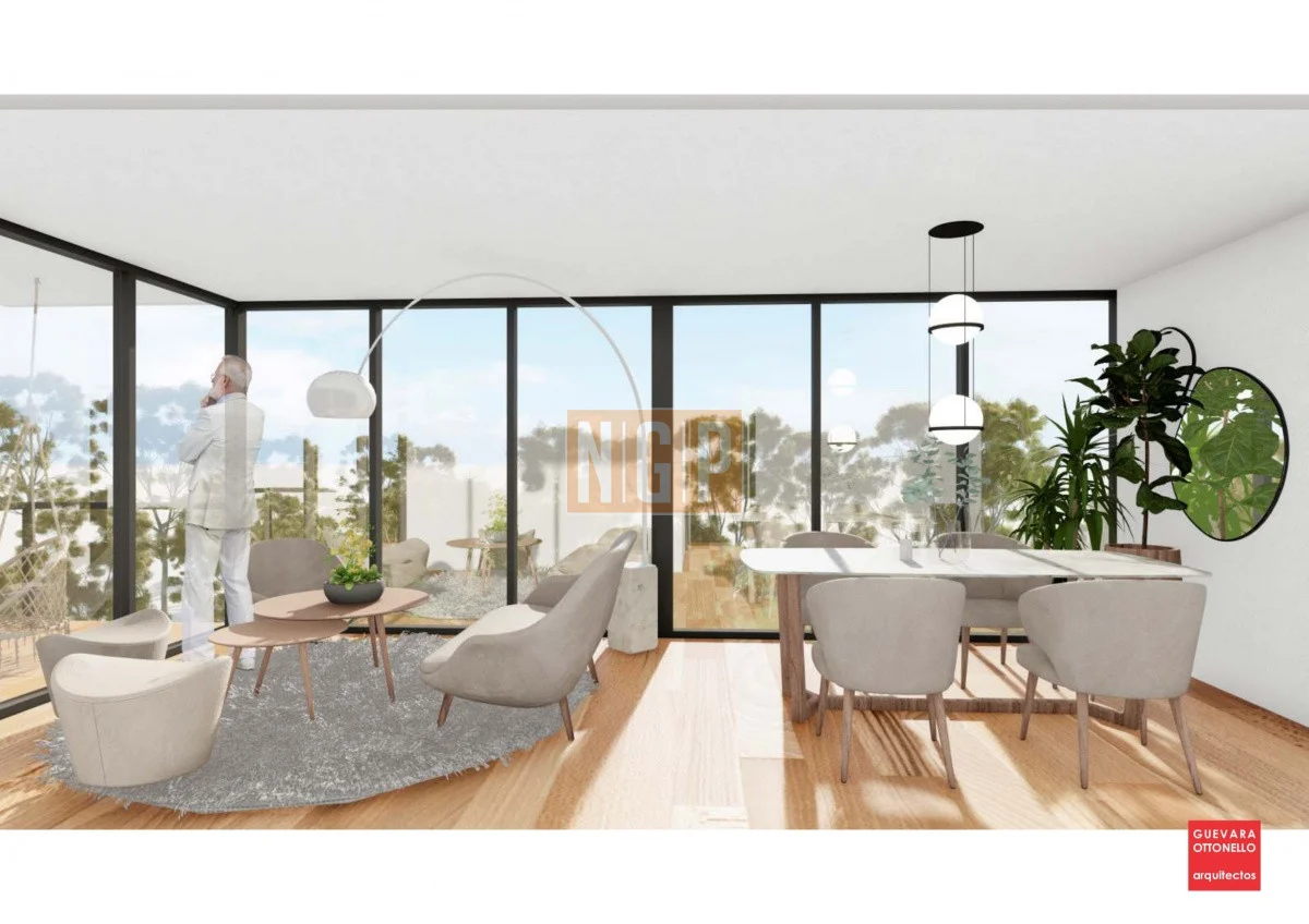 En las terrazas el pavimento será porcelanato de similar terminación al piso flotante de madera interior.