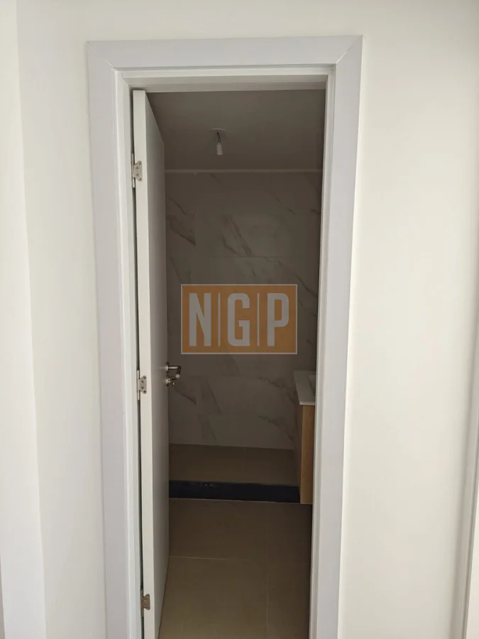 El pavimento de la cocina y los baños será porcelanato, y el revestimiento de pared de los baños será porcelanato de 30 cm x 60 cm color blanco, terminación mate