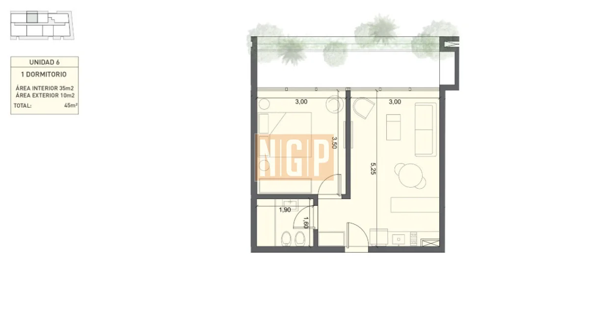 Realización de pre instalación de AA (multi Split). Las acometidas y desagües serán colocados en cada unidad, en el living comedor y en los dormitorios. Las unidades exteriores de cada unidad se colocarán en el sector destinado a este propósito, ubicado bajo parrilleros de cada unidad, según