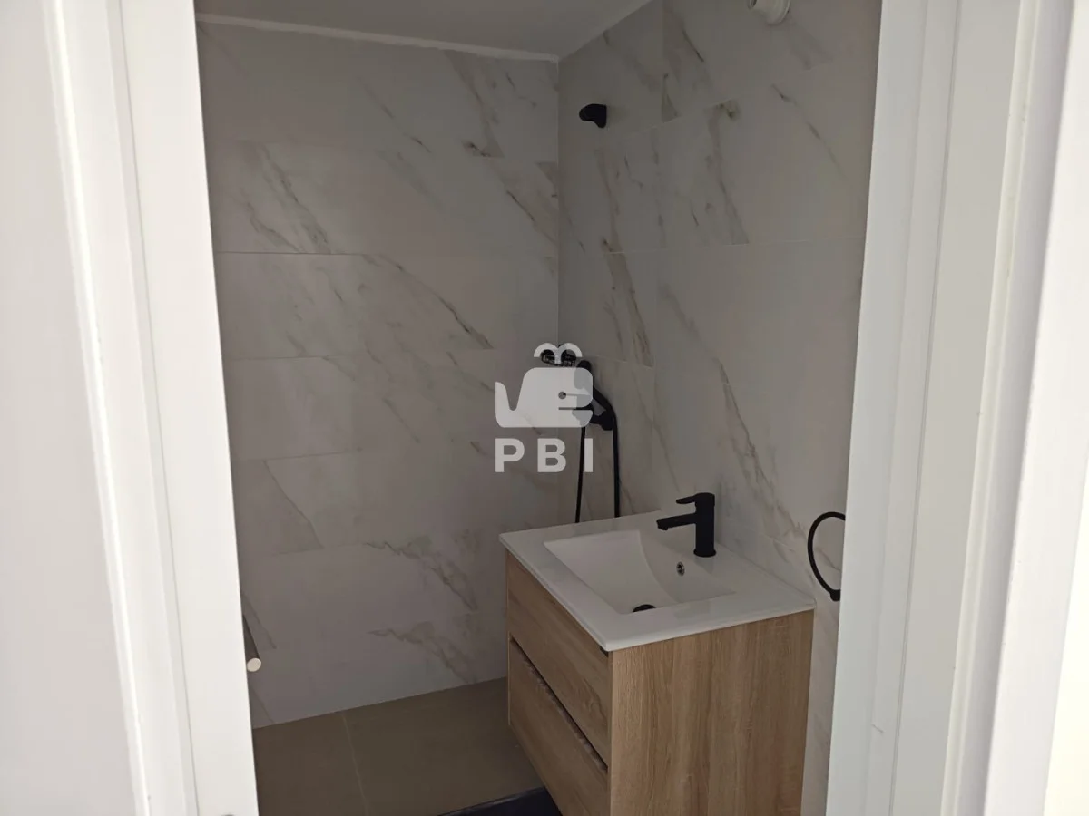 El pavimento de la cocina y los baños será porcelanato, y el revestimiento de pared de los baños será porcelanato de 30 cm x 60 cm color blanco, terminación mate