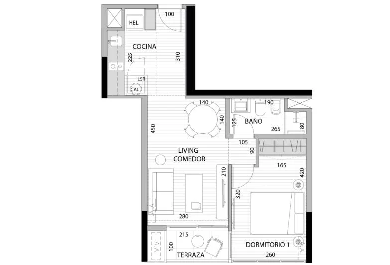 La unidad cuenta con living comedor con salida a terraza, dormitorio con placard.