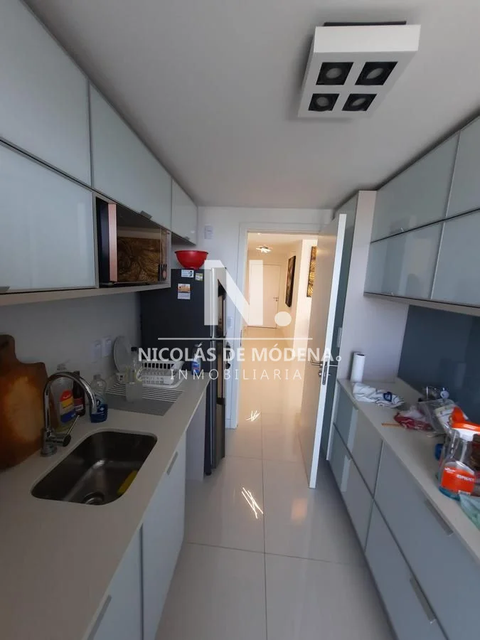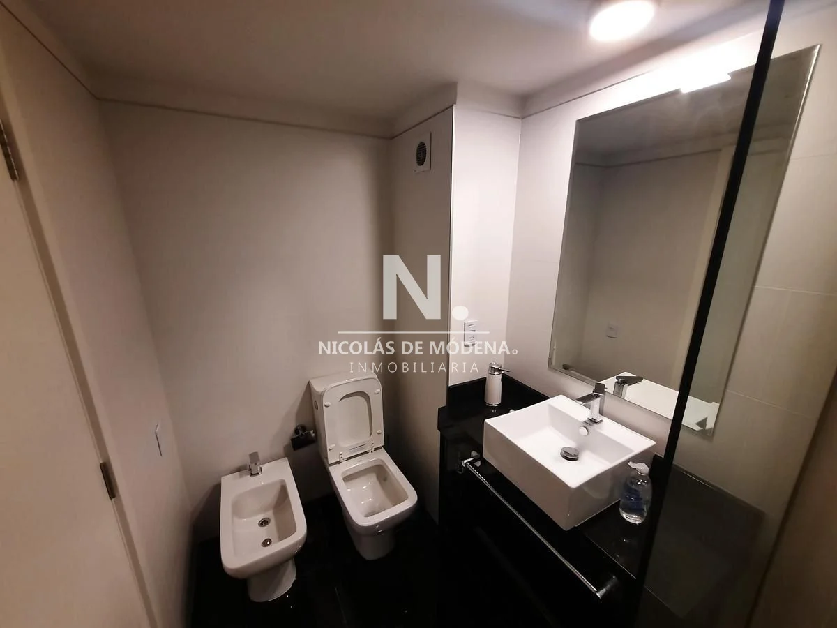 Piso alto con espectaculares vistas. Tres dormitorios, todos en suite. Principal con vestidor. Toilette. Baños con revestimiento de porcelanato y mesadas de mármol con mueble integrado. Grifería y aparatos sanitarios de alta calidad. Amoblamiento de cocina con alto diseño y finas terminaciones. Aberturas de alta prestación de aluminio con doble cristal.