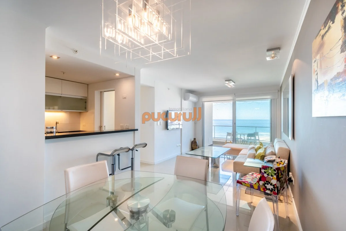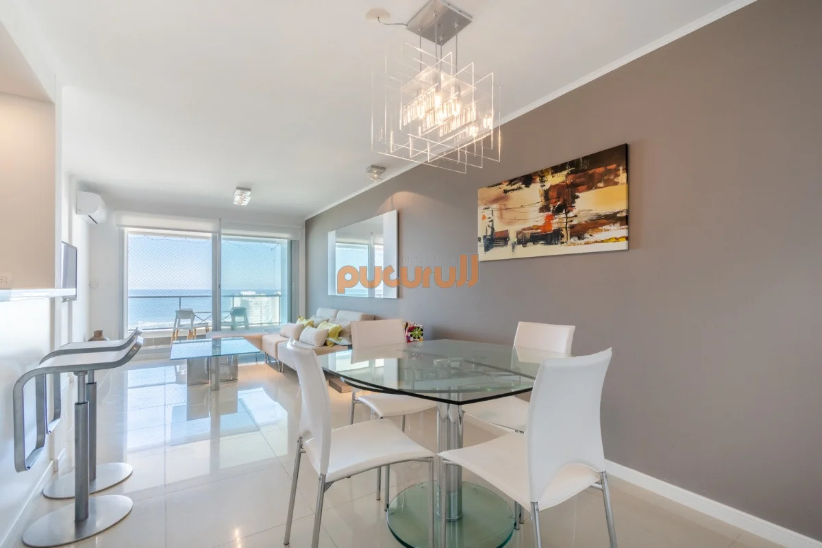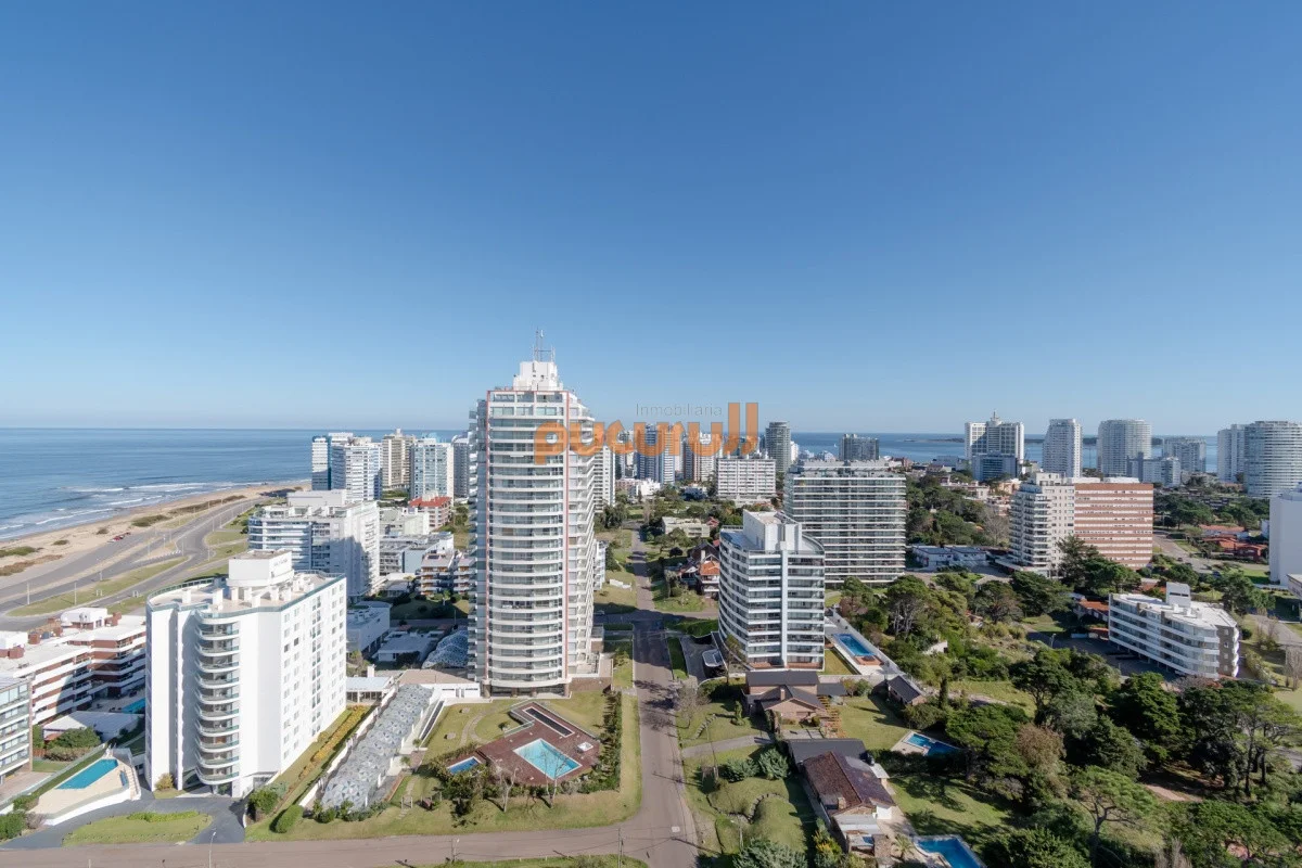 Excelente planta, con espacios amplios y luminosos, piso alto, con muy buena vista al mar de Playa Brava y a los atardeceres de la Mansa. Dispone de dos dormitorios, el principal en suite con vestidor, dos baños completos. Living comedor con extenso balcón mirando hacia el mar. Cocina bien equipada con barra-desayunador.