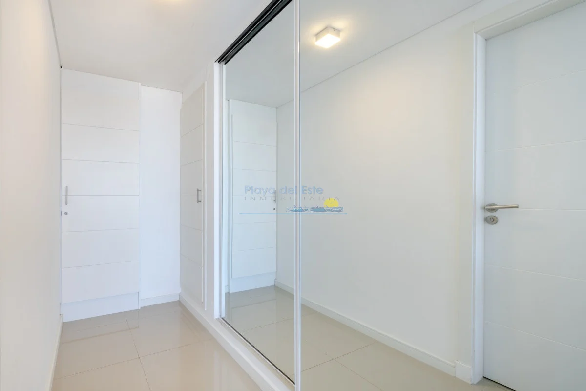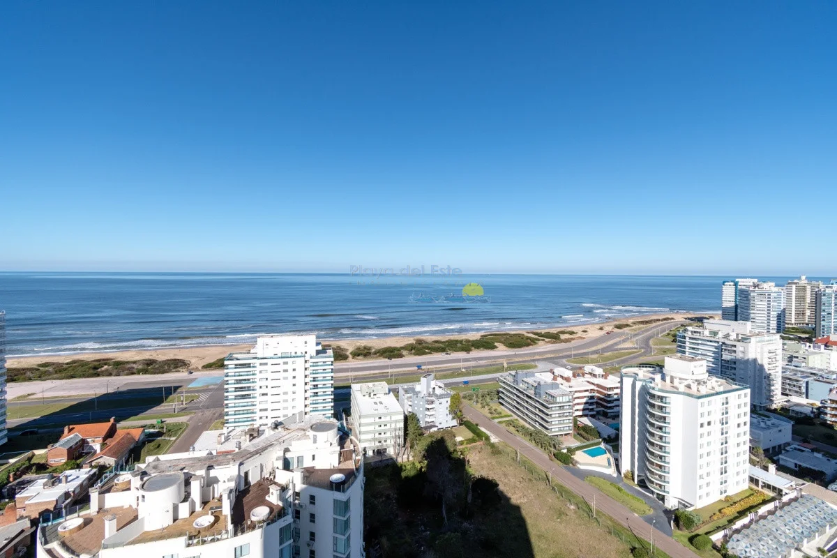 Excelente planta, con espacios amplios y luminosos, piso alto, con muy buena vista al mar de Playa Brava y a los atardeceres de la Mansa. Dispone de dos dormitorios, el principal en suite con vestidor, dos baños completos. Living comedor con extenso balcón mirando hacia el mar. Cocina bien equipada con barra-desayunador.