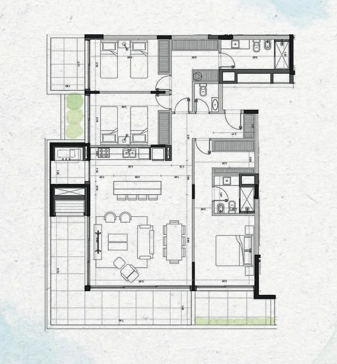 El apartamento incorpora termotanque eléctrico, luminarias LED y extractores en baños. La calefacción por losa radiante eléctrica sectorizada brinda confort en cada ambiente durante todo el año.