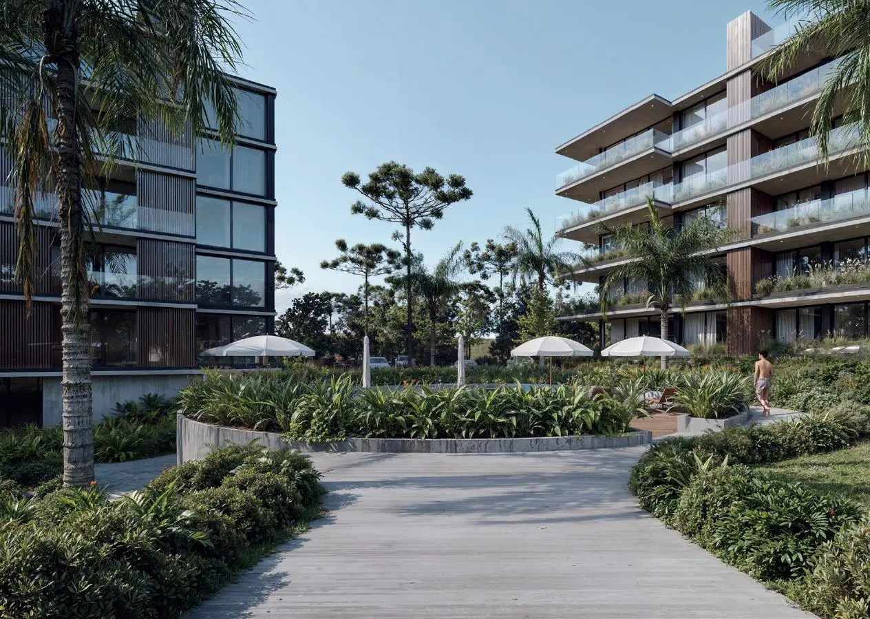 El desarrollo está conformado por 2 torres de 5 niveles que albergan lofts y apartamentos de 1, 2 y 3 dormitorios, concebidos bajo un concepto de arquitectura contemporánea que prioriza la amplitud de los espacios, la luz natural y la conexión con el entorno costero.