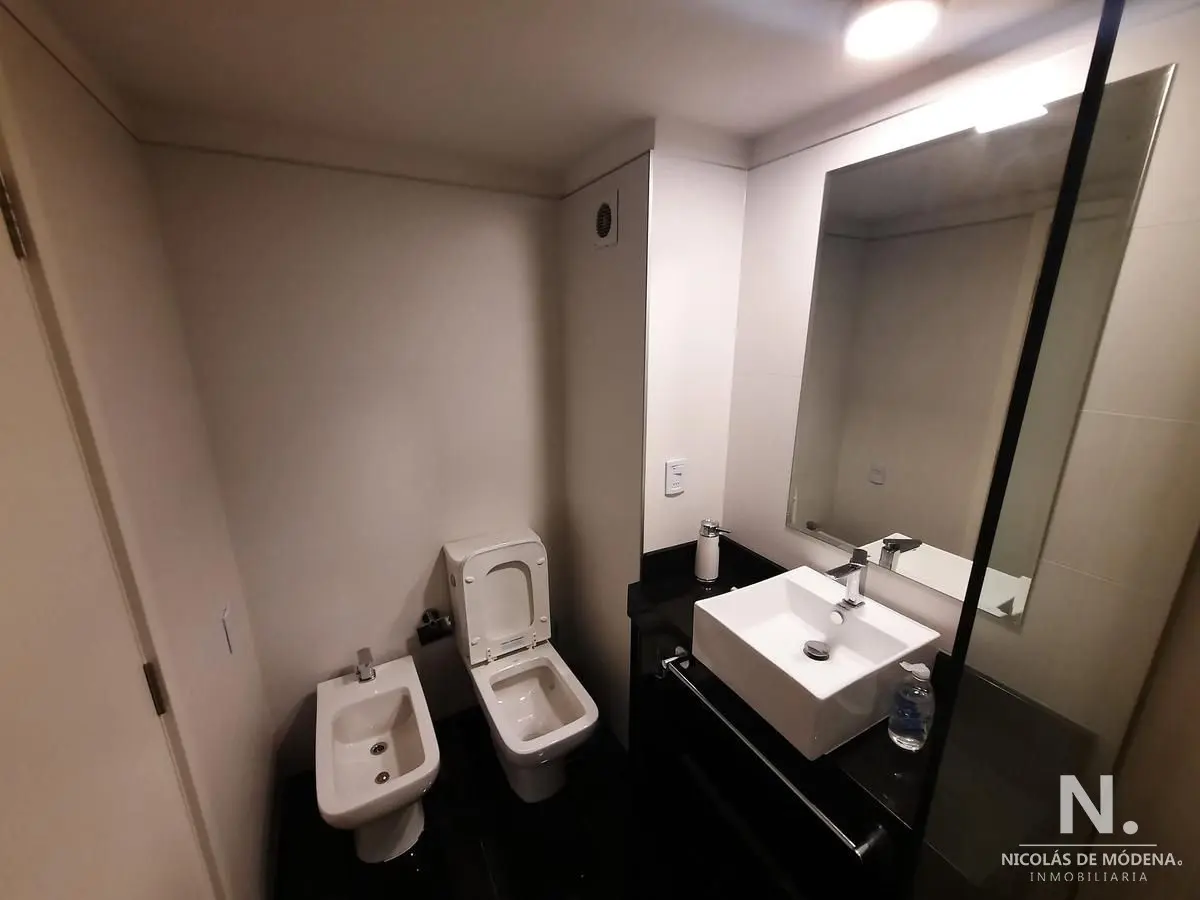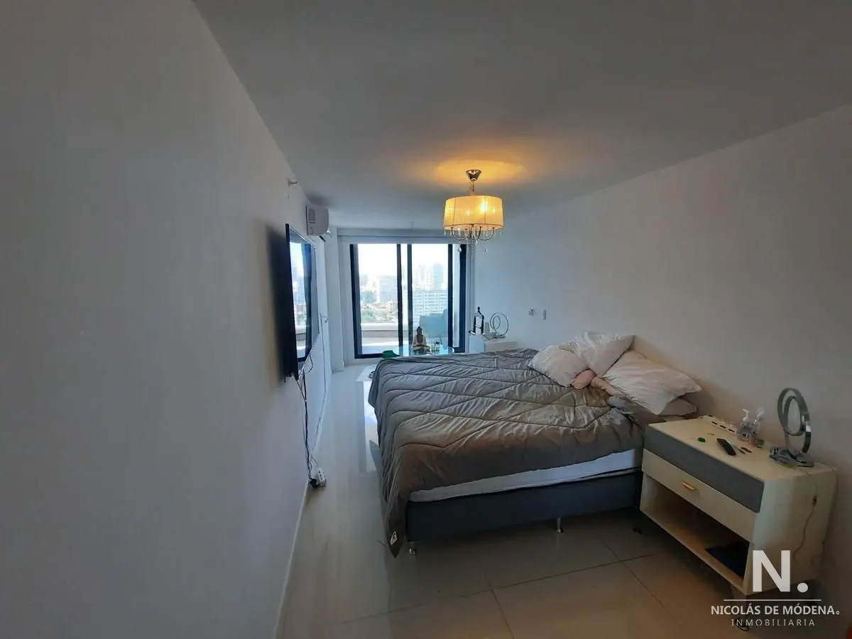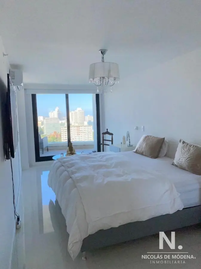 Piso alto con espectaculares vistas. Tres dormitorios, todos en suite. Principal con vestidor. Toilette. Baños con revestimiento de porcelanato y mesadas de mármol con mueble integrado. Grifería y aparatos sanitarios de alta calidad. Amoblamiento de cocina con alto diseño y finas terminaciones. Aberturas de alta prestación de aluminio con doble cristal.