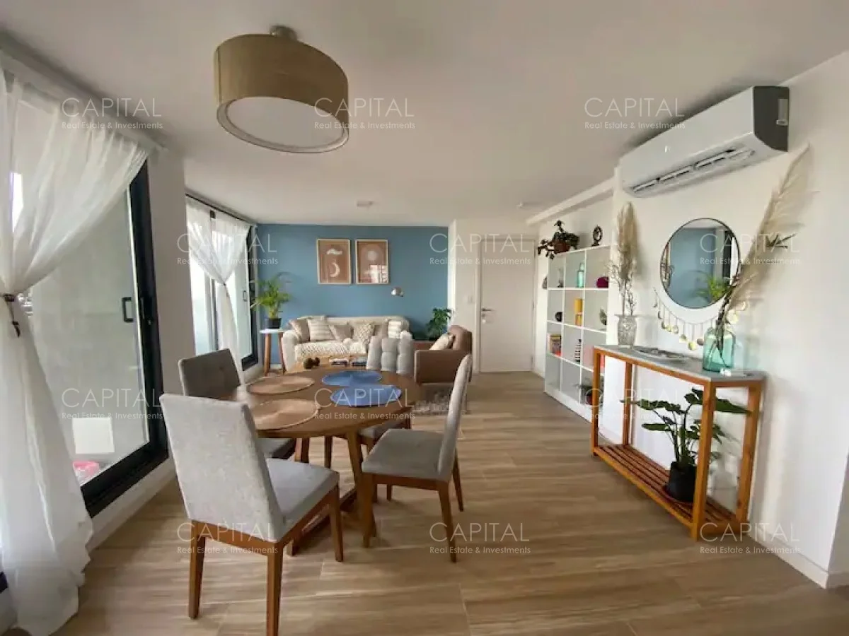 Unidad de dos dormitorios y dos baños, principal en suite. Cocina semi integrada al living comedor con salida a la terraza.