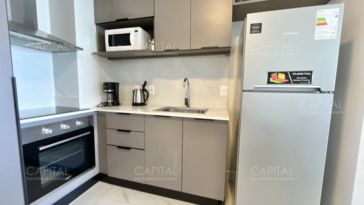 Apartamento moderno con parrillero propio, frente al mar en Playa Mansa. Un dormitorio y medio, cocina integrada al living comedor. Muy bien equipado con aire acondicionado en todos los ambientes, doble vidrio, loza radiante y una excelente vista al mar. Consulte con nuestros asesores. Capital Real Estate Referencia Interna : Tera-34329