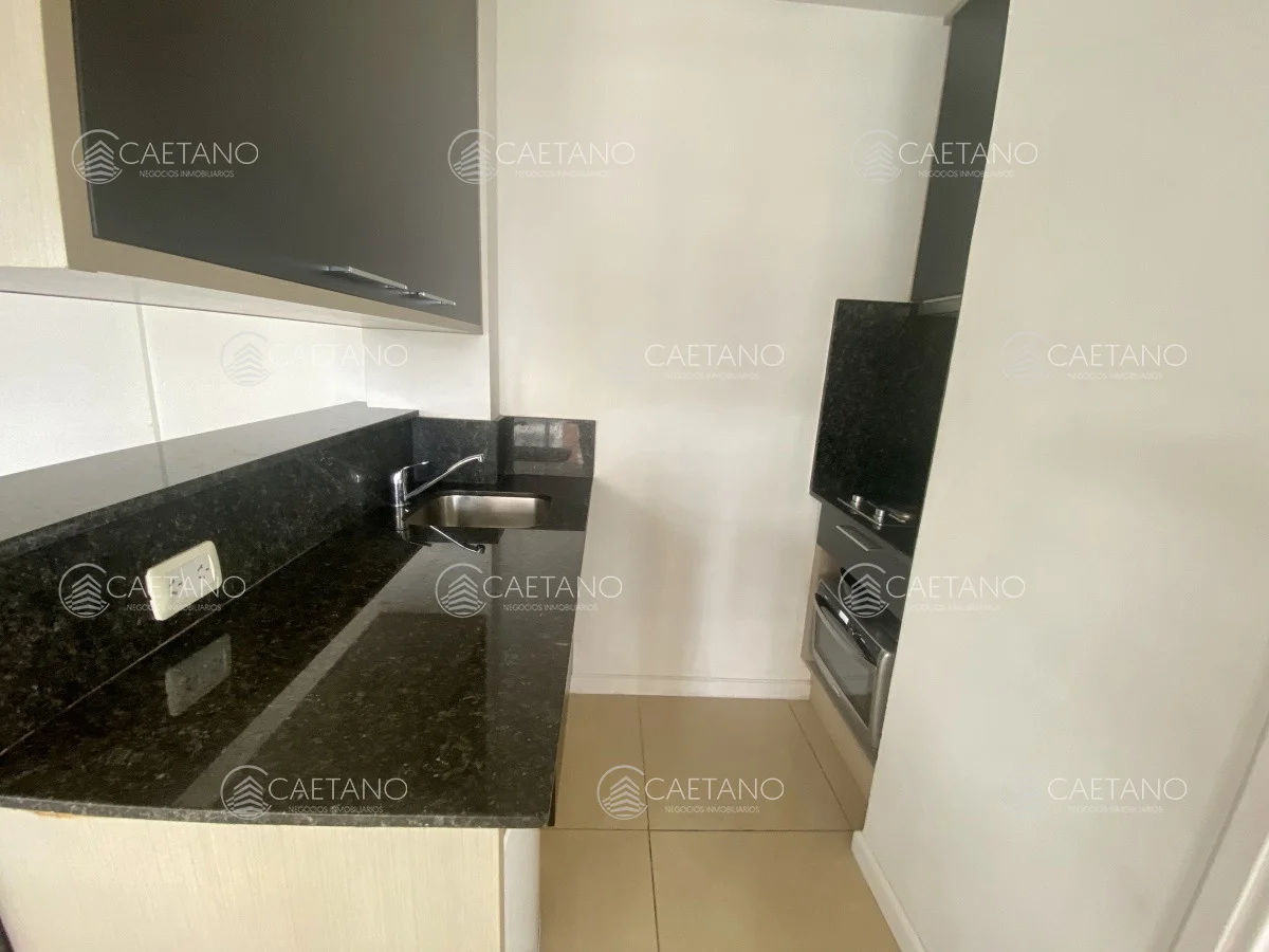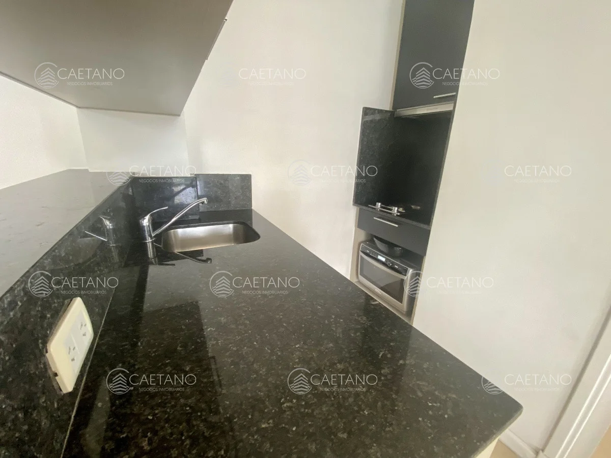 El apartamento muy luminoso ofrece un living-comedor con cocina integrada, un baño y gran terraza de doble circulación.