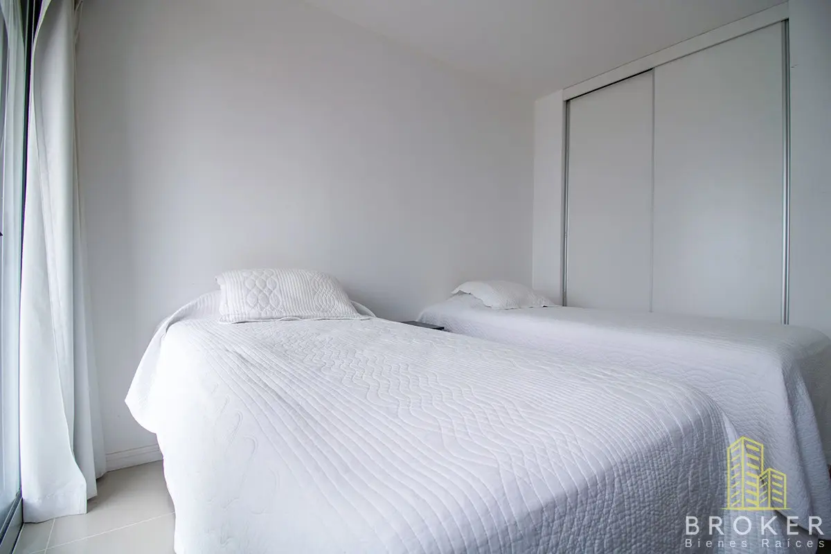 Explora la serenidad de este acogedor apartamento frente al mar. Disfruta de la vista desde la suite principal y el amplio balcón a solo 100 metros del mar. La cocina moderna añade elegancia, y el segundo dormitorio cuenta con su propio balcón. Disfruta de comodidades como la piscina climatizada, barbacoas, playroom y servicios como recepción 24 horas, vigilancia, mucama, acceso a la playa y más. ¡Bienvenido a tu hogar junto al mar!