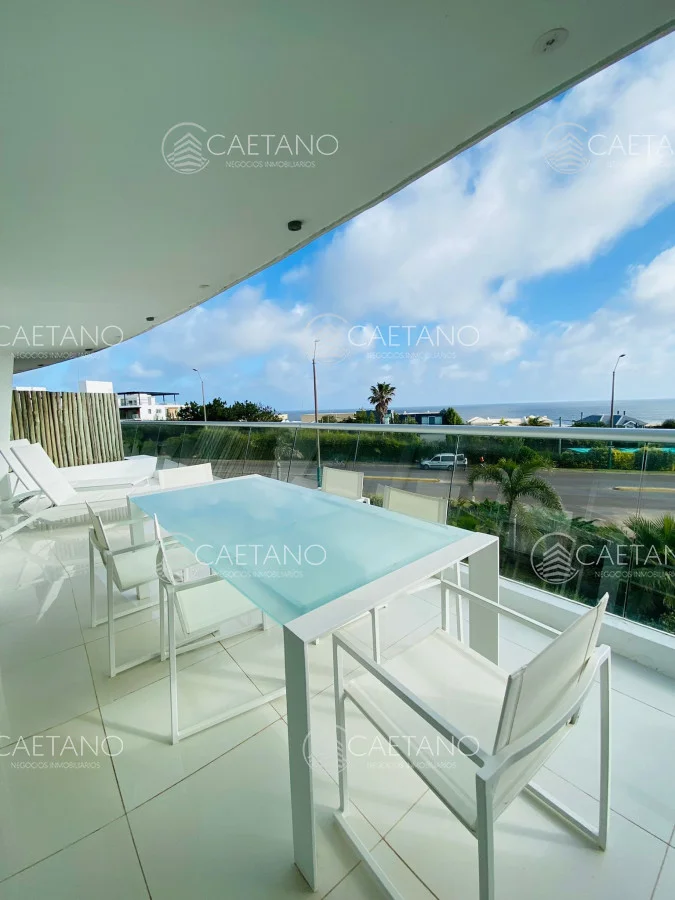Cuenta con dos dormitorios ambos con blackout, dos baños, uno en suite. Amplio living comedor con balcón al frente mirando al mar.