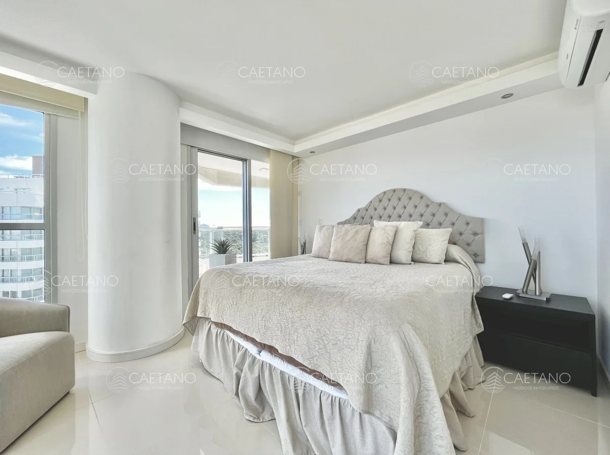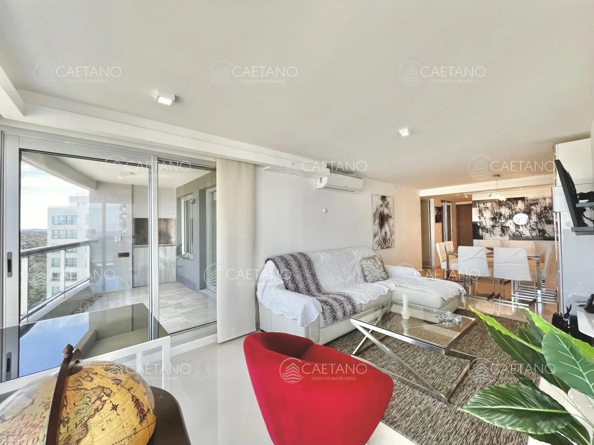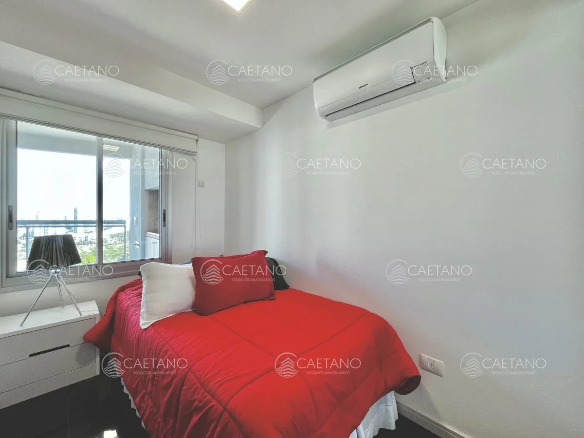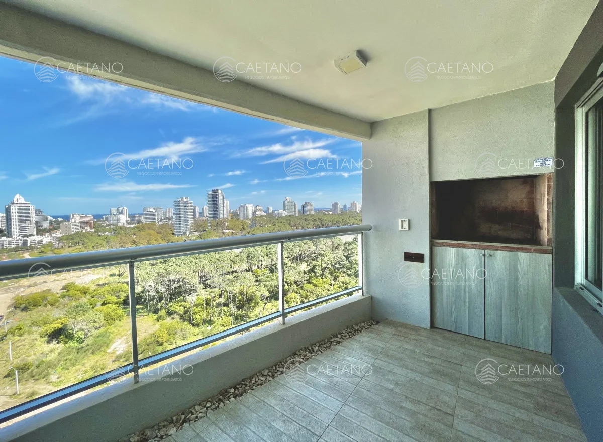 Excelente apartamento en alquiler, a metros de Playa Brava y zona céntrica de Punta del Este. El mismo cuenta con dos dormitorios y dependencia. Living comedor amplio y luminoso, cocina bien equipada, parrillero y cochera doble.