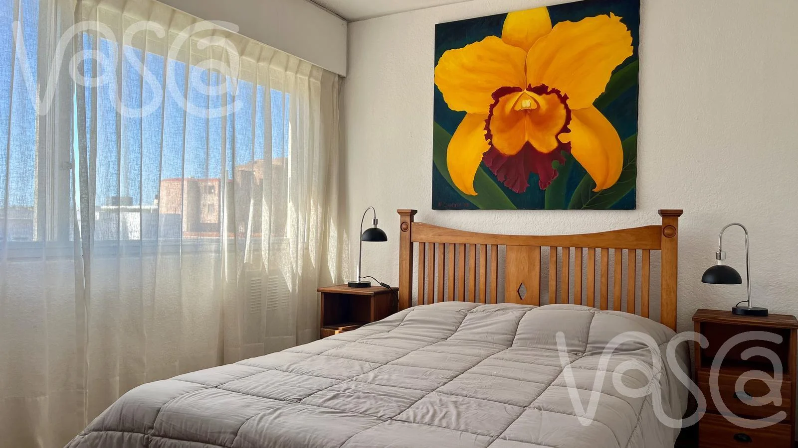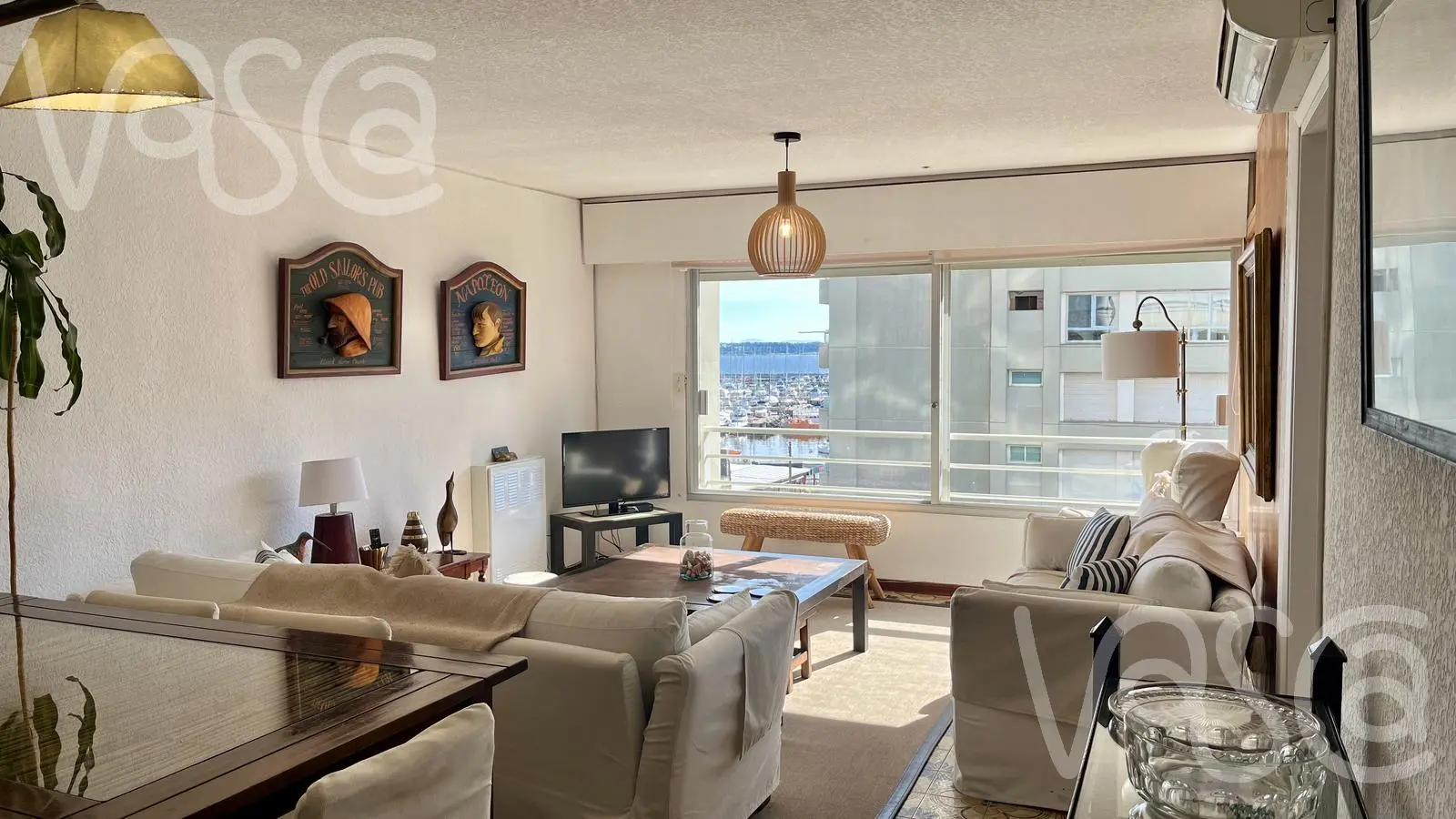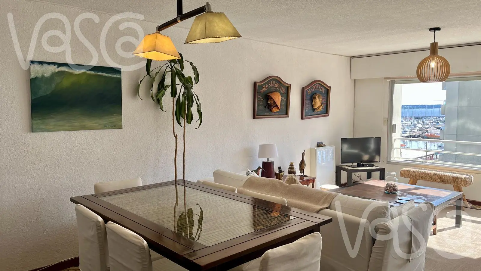 Disfrutá de tu estadía en este luminoso apartamento ubicado en la Península, con una hermosa vista al puerto. Cuenta con un amplio living comedor que invita a relajarse, dos dormitorios con capacidad para 4 personas (1 cama matrimonial y 1 cama marinera), cocina definida reciclada, baño completo reciclado y toilette reciclado.