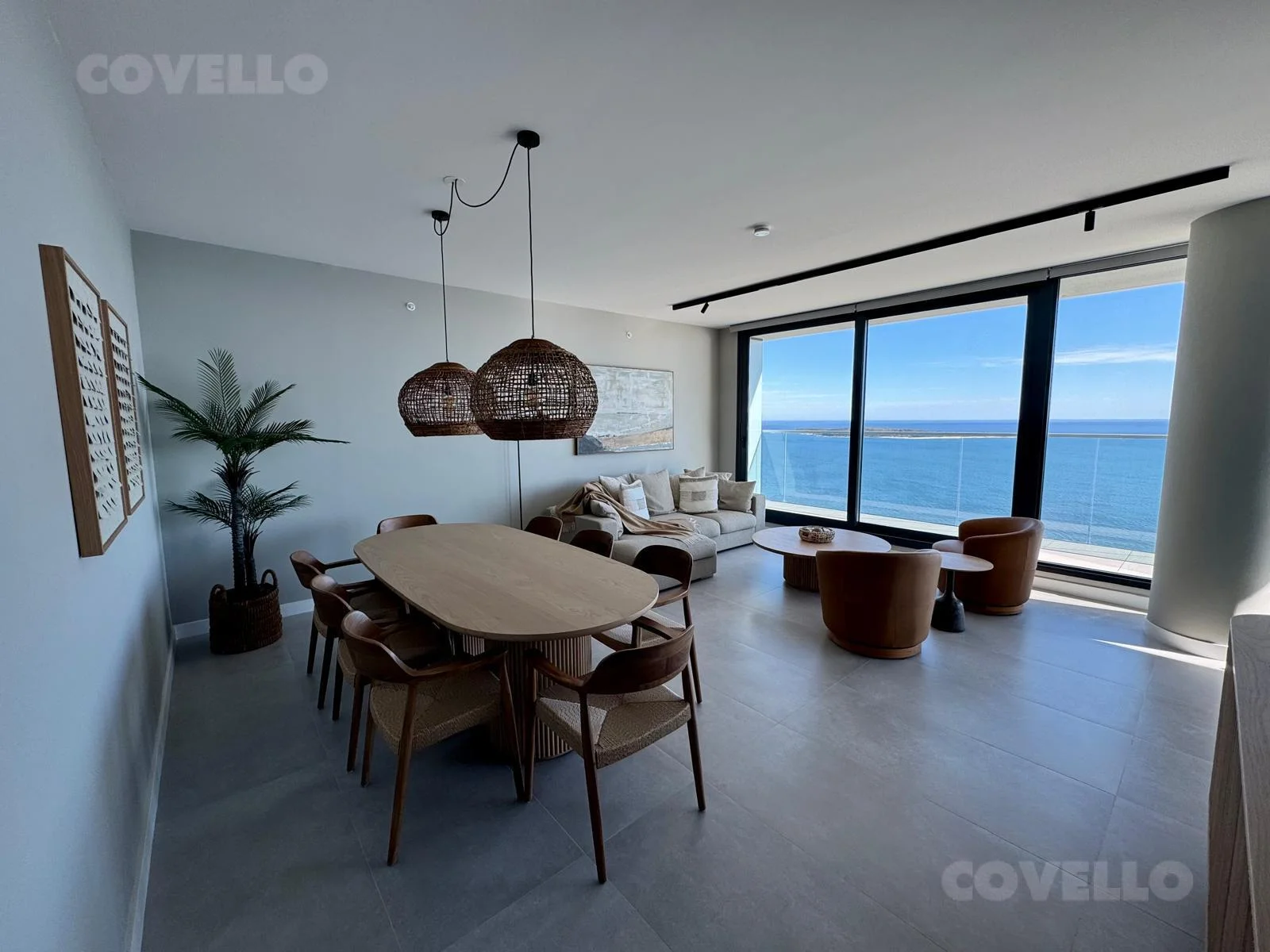 Apartamento en primera fila al mar, cuenta con tres dormitorios en suite mas toilette de recepción.Amplio living comedor con salida al balcón terraza.