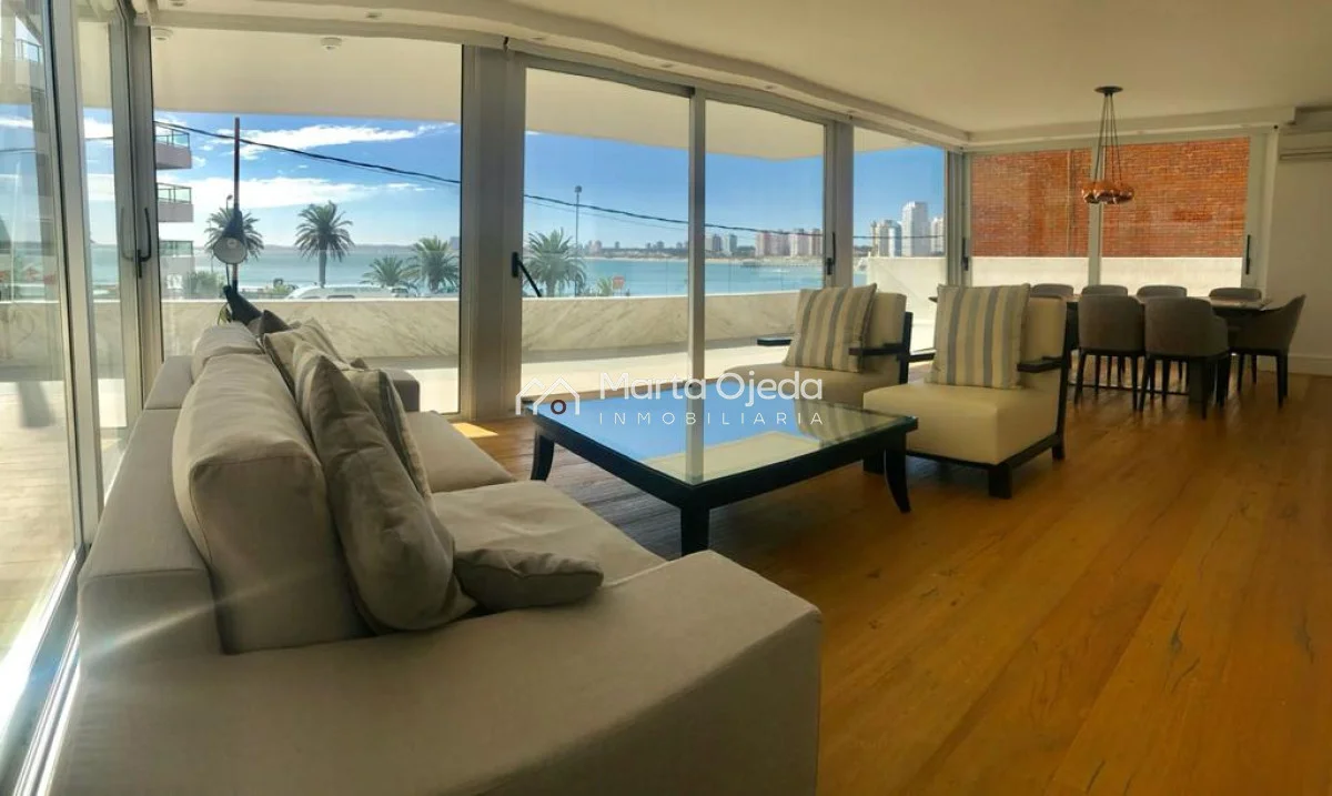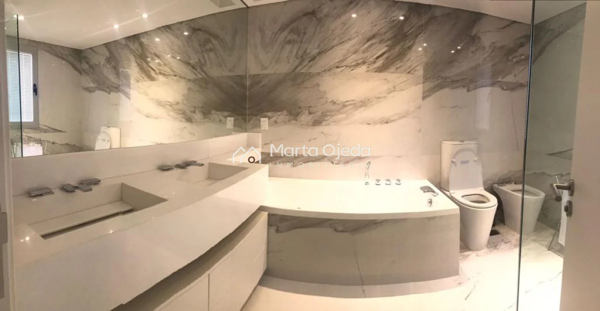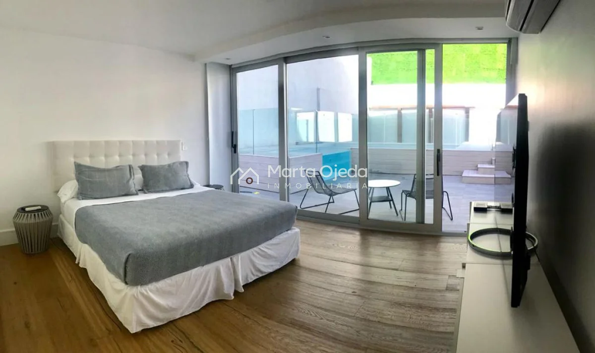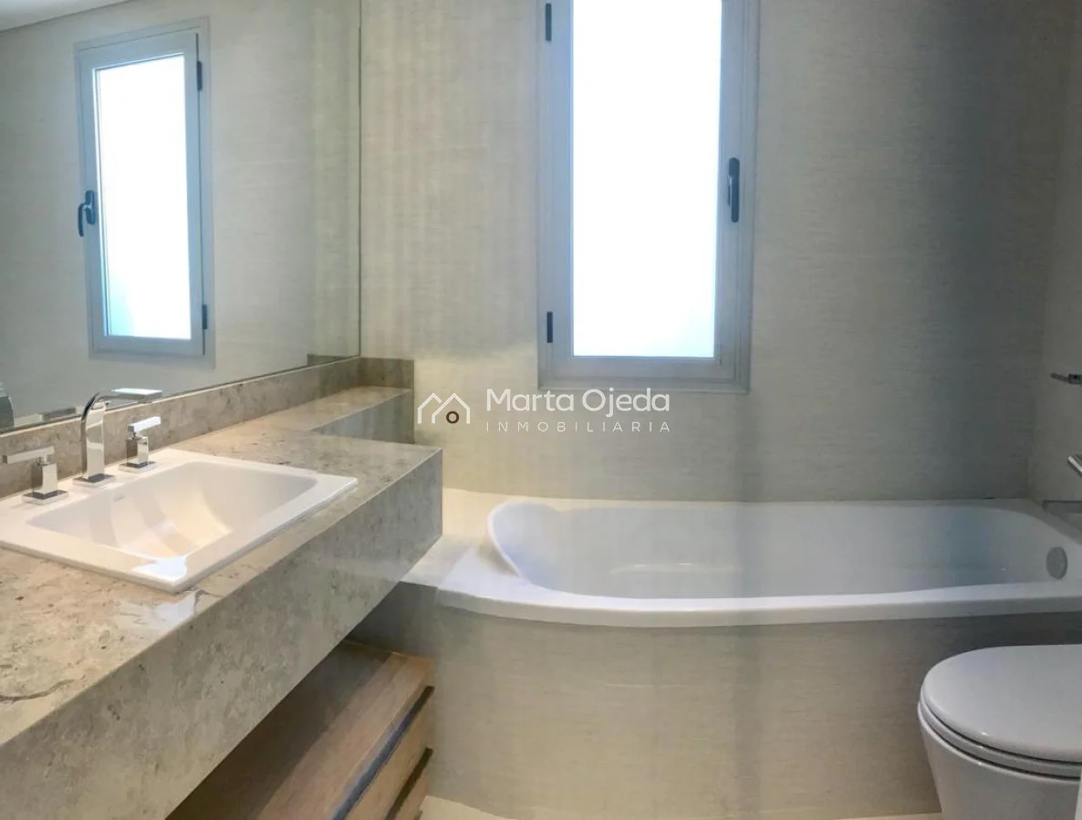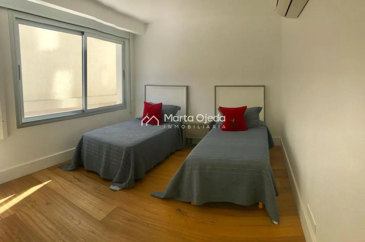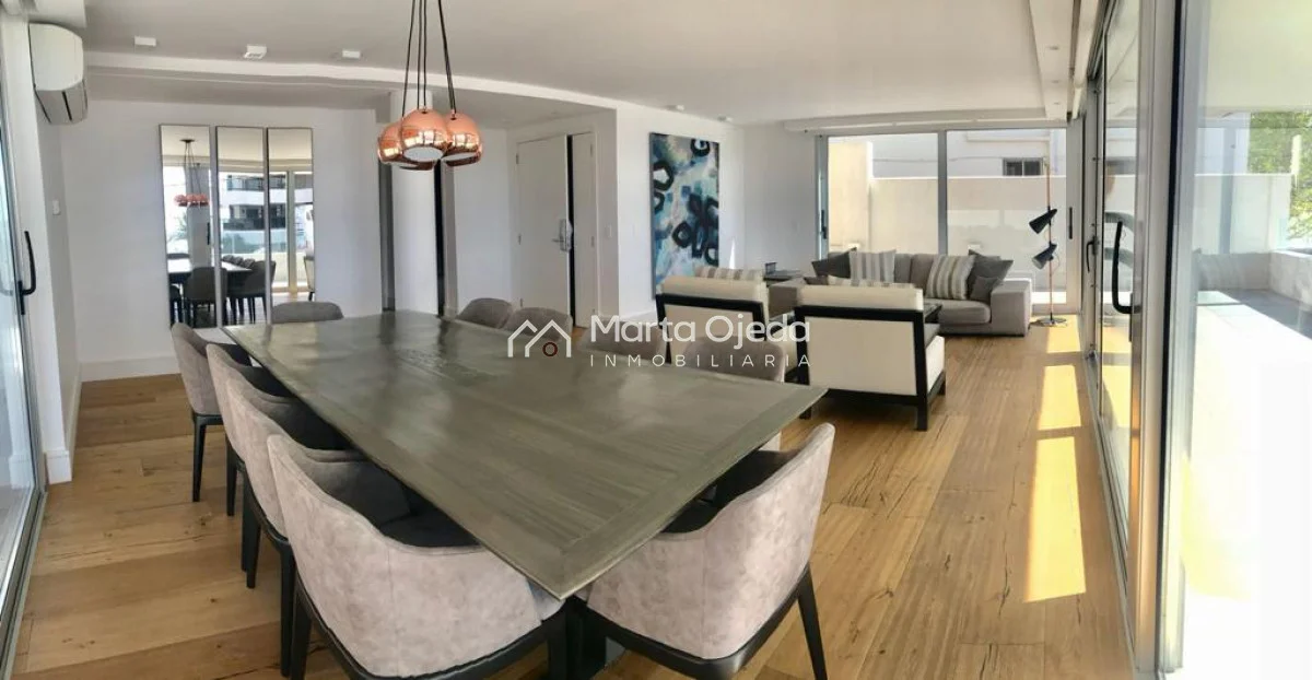 Vista Mansa , aire acondicionado central, calefacción por losa radiante , tres dormitorios en suite con vestidor , living-comedor con salida a gran balcón terraza, cocina amplia, dependencia de servicio , toilette . Todos los ambientes tienen salida a gran espacio de terraza con solarium , sector de parrilla y piscina privada . Cuatro espacios de garaje en SS . SE ALQUILA ANUAL CONSULTE