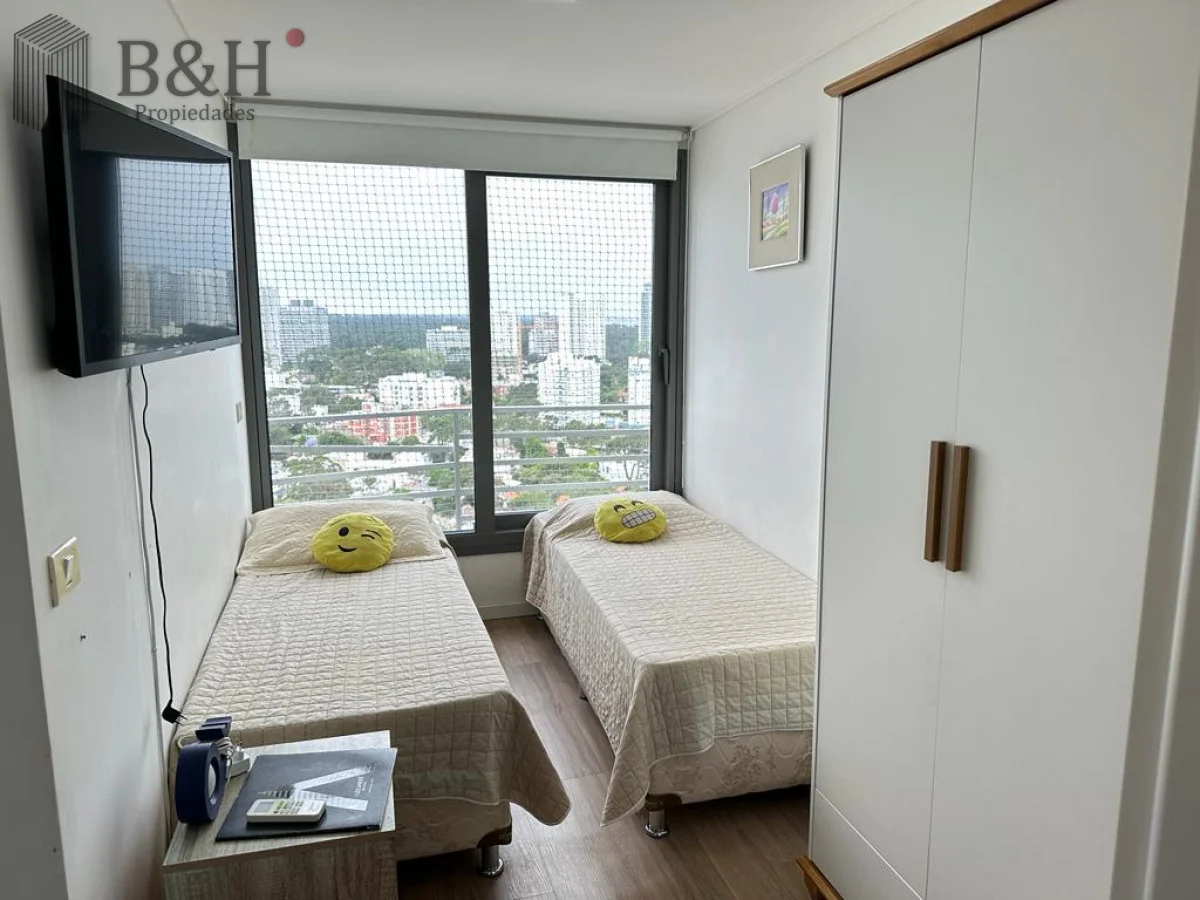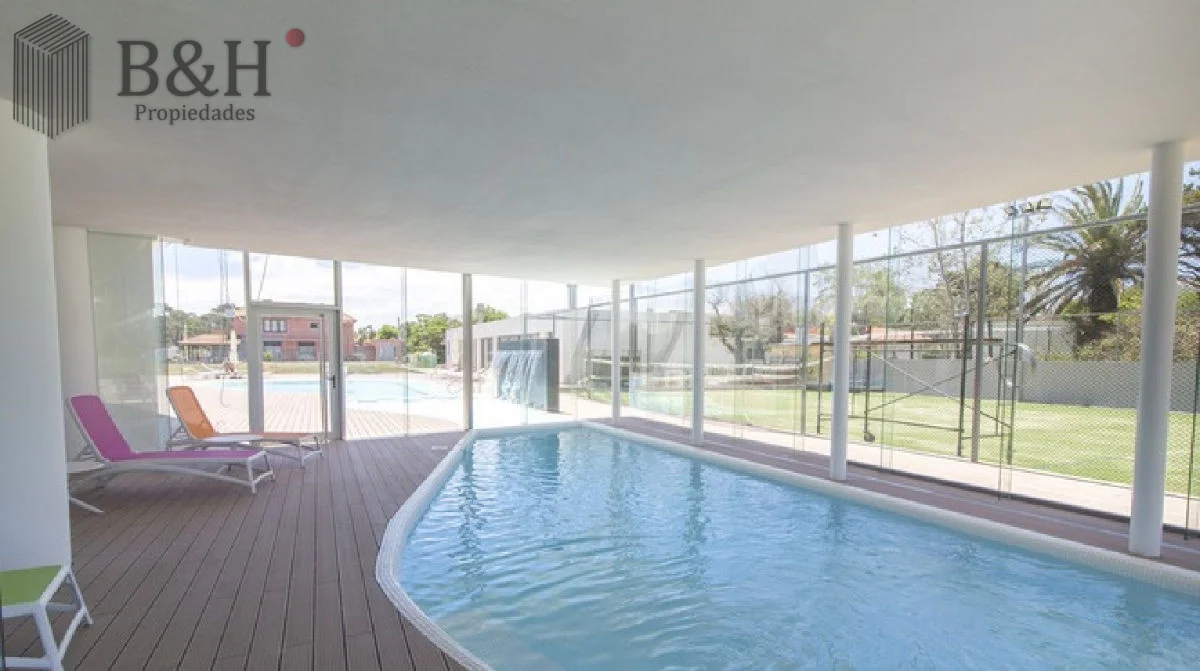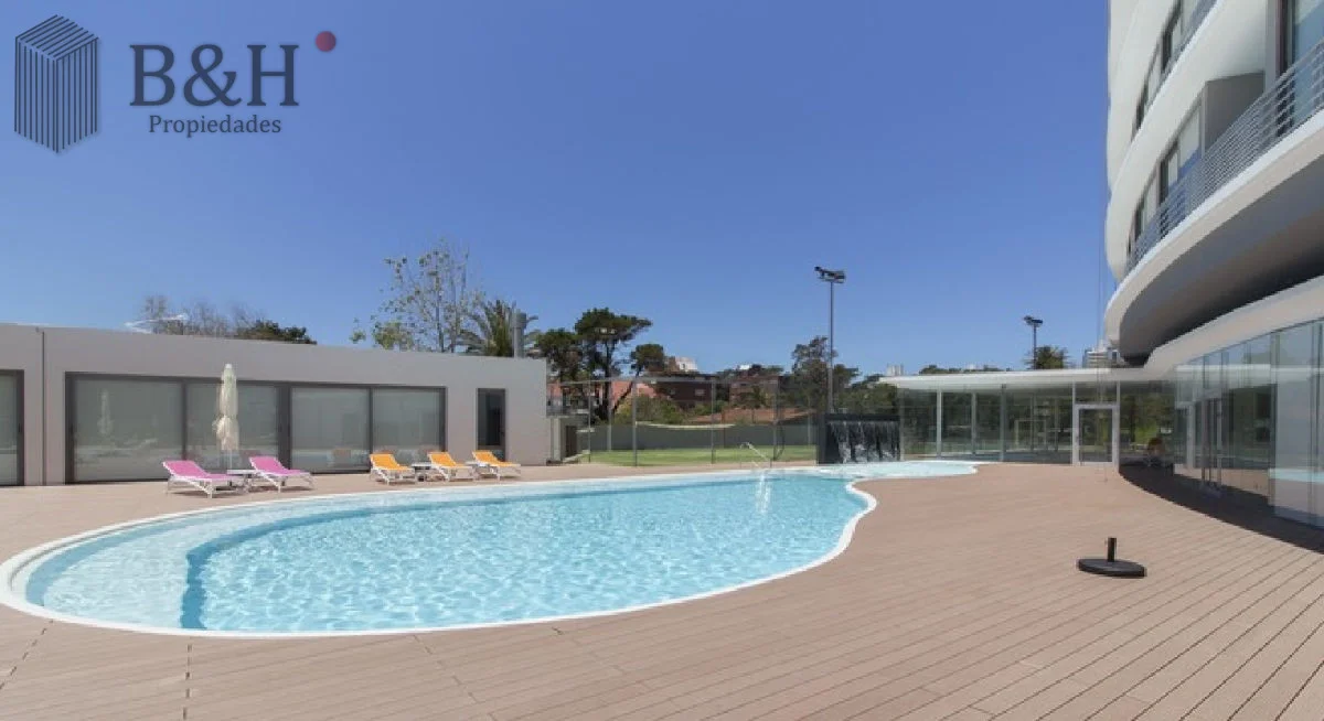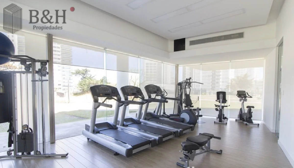 Posee un Hall de acceso en doble altura con zonas lounge , importantes amenities ubicados en planta Baja, que se relacionan espacialmente, uniendo en un todo la piscina exterior, la interior climatizada (ambas de agua salada),el solarium, el gimnasio, el sauna y la sala de masajes,