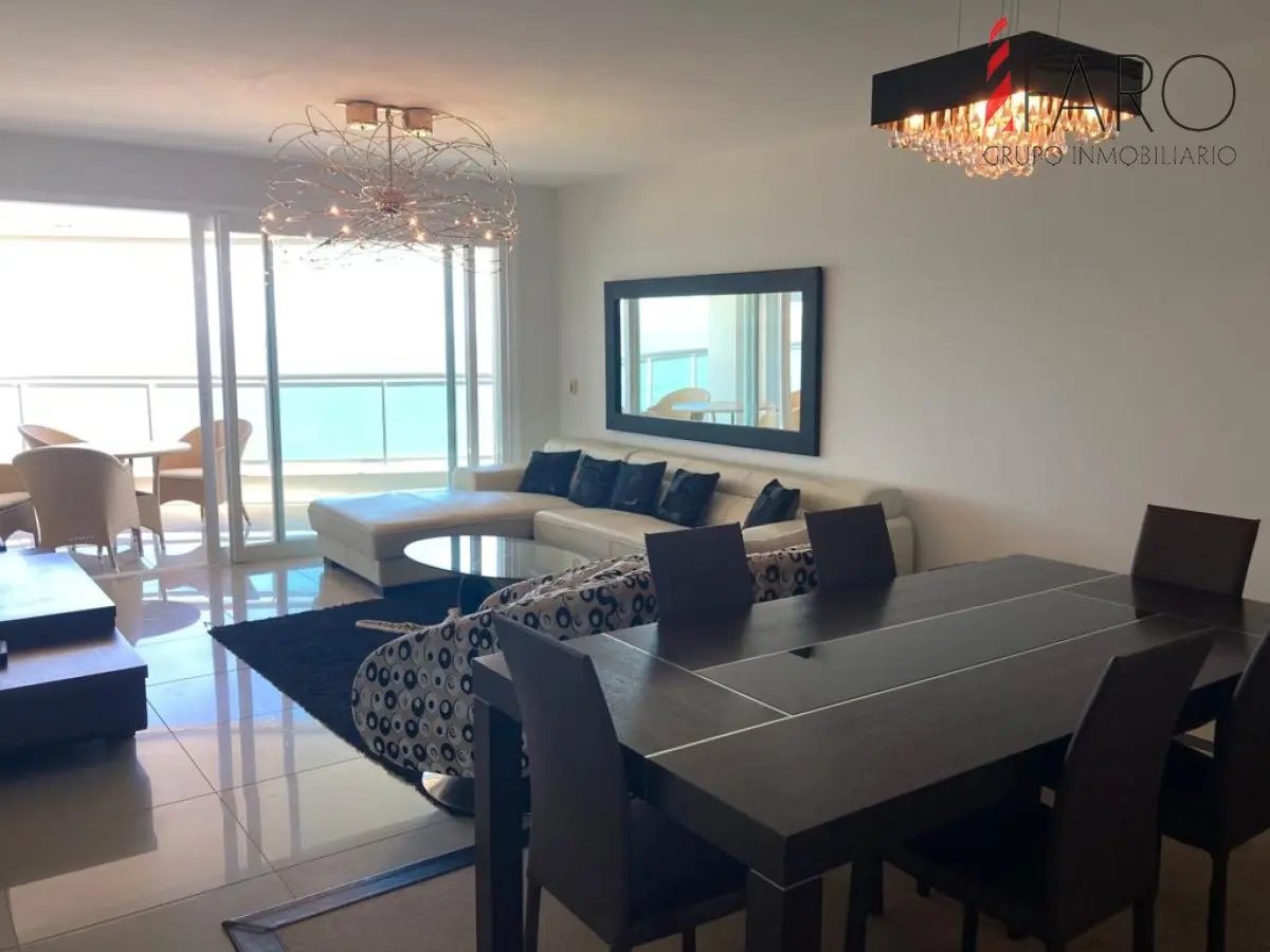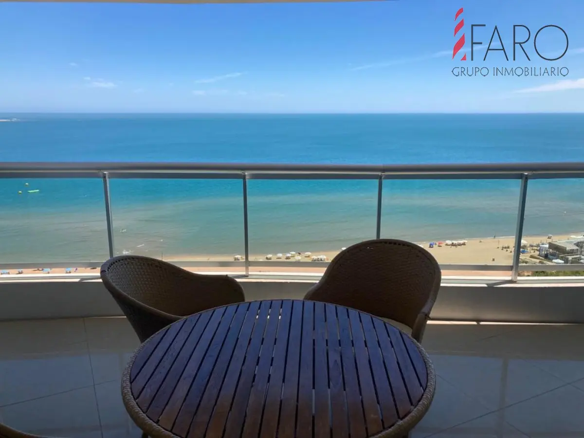 Piso alto con espectacular vista a la playa, 3 dormitorios en suite con muebles de categoría, amplia terraza. Todos los servicios. Consulte por alquiler para verano. Referencia Interna : Tera-32625