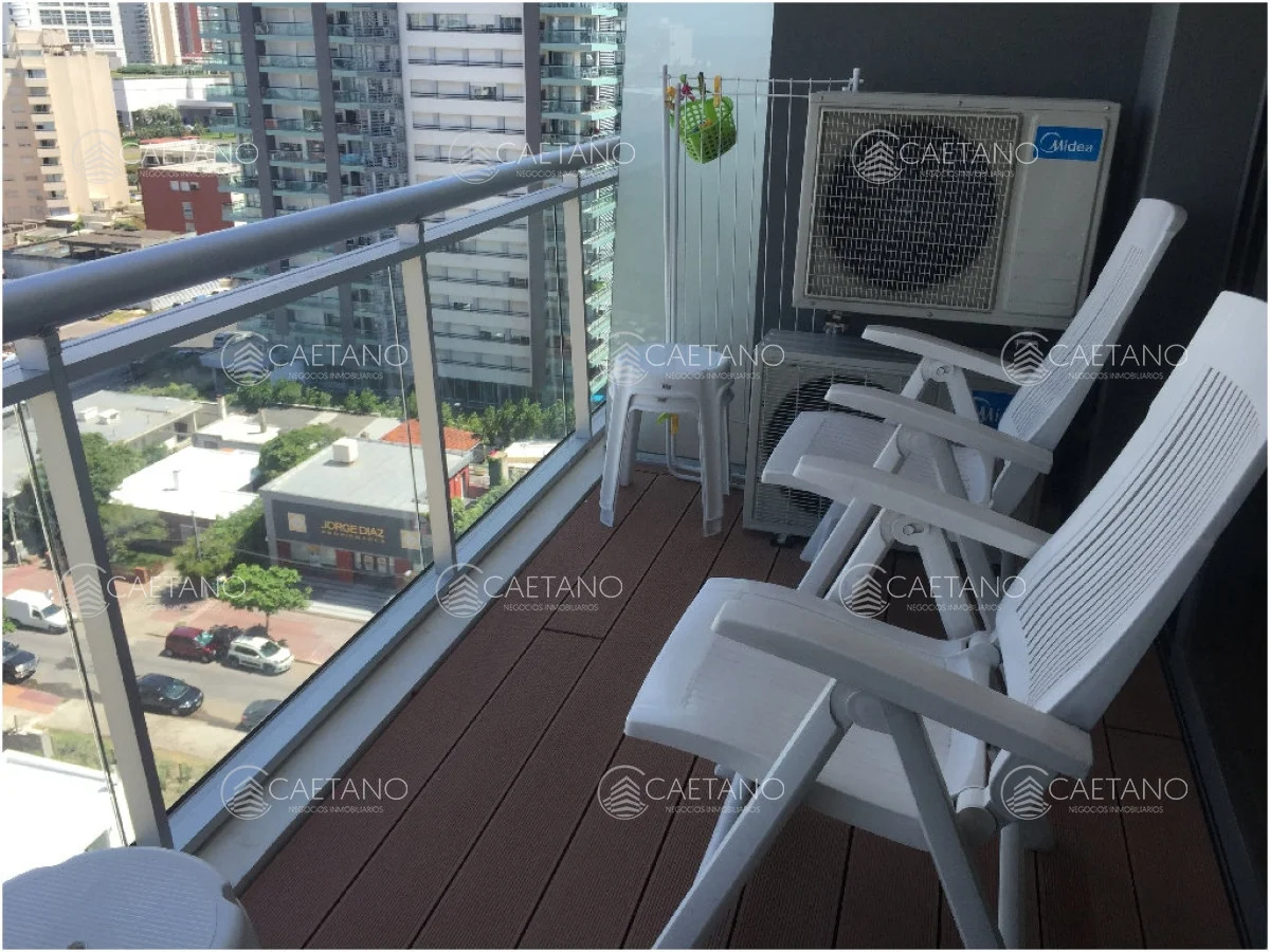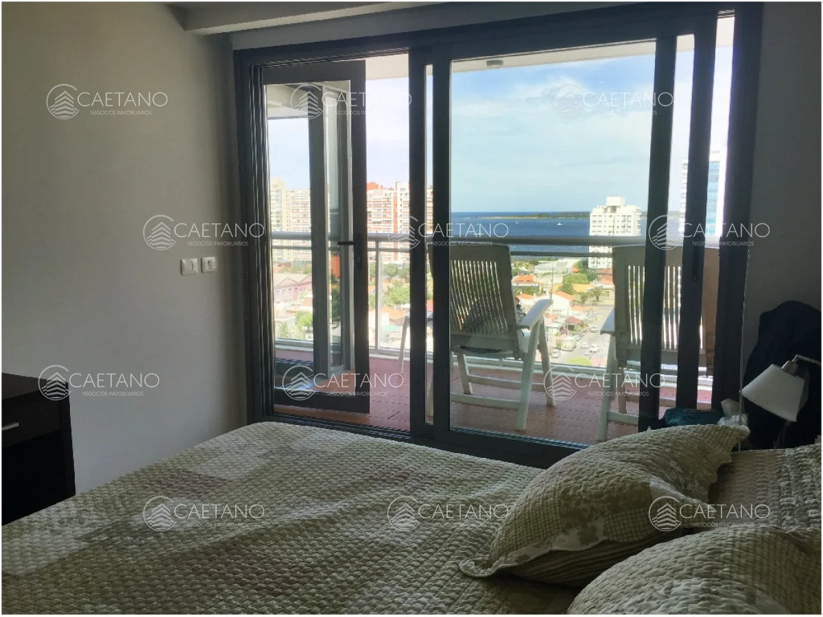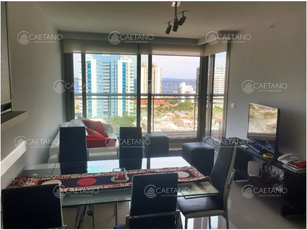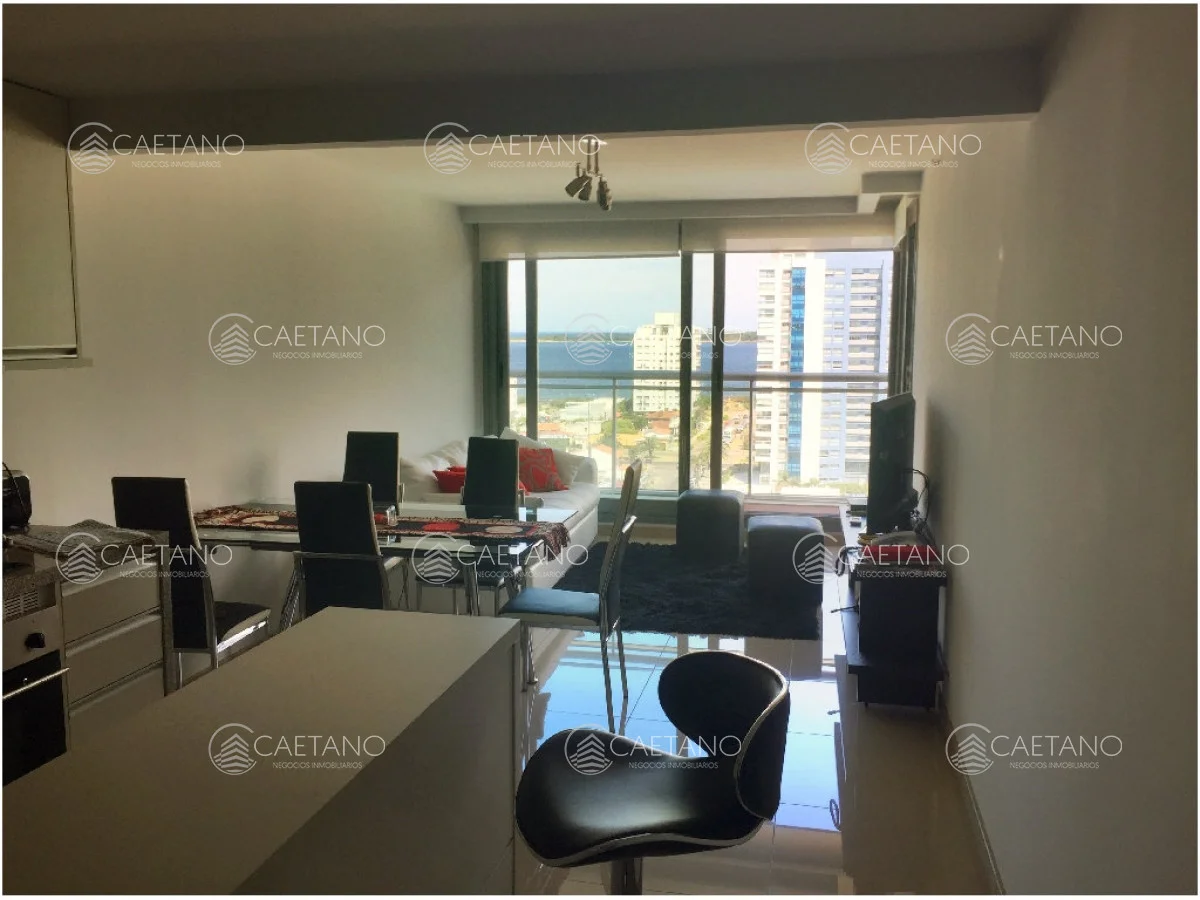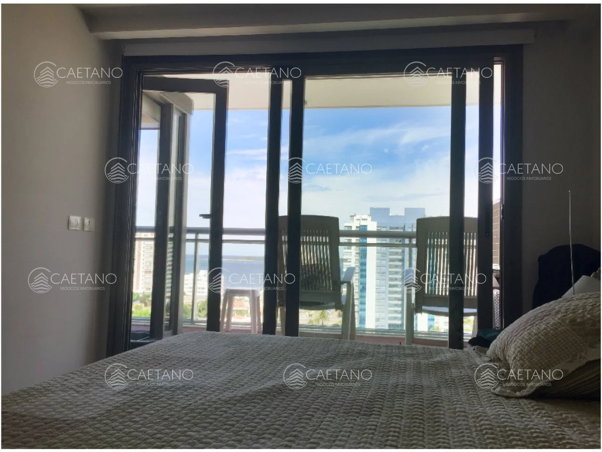 Muy lindo apartamento en piso alto con vista a la Mansa, 1 dormitorio y 1/2 con toilette y baño, living comedor y cocina americana, aire acondicionado en living y dormitorio principal, tv cable y wifi.