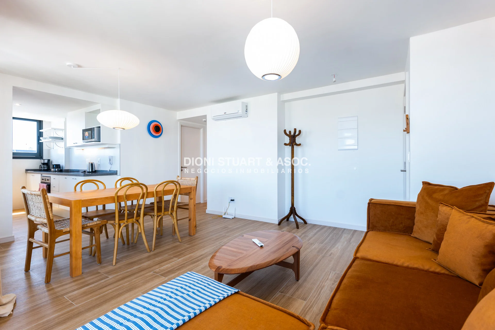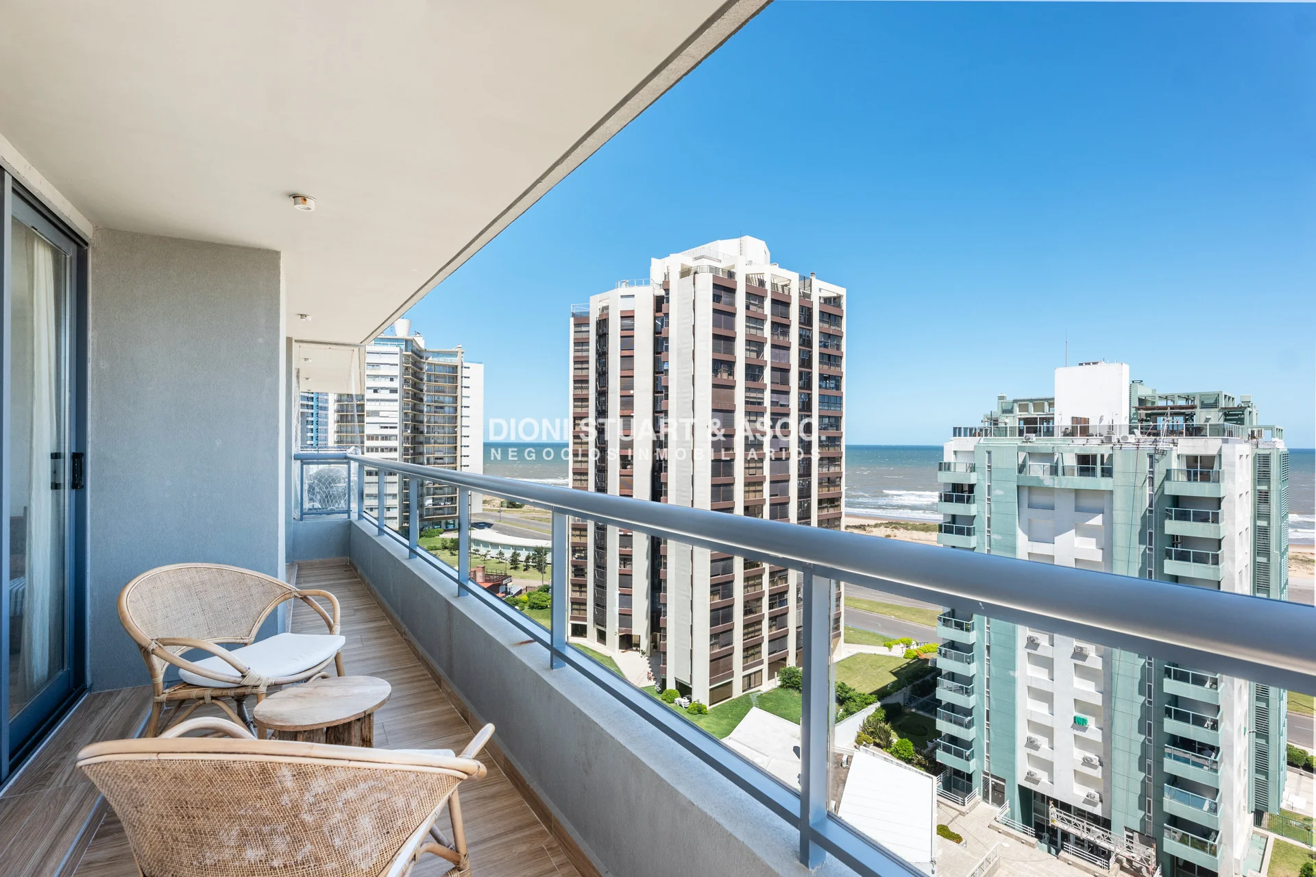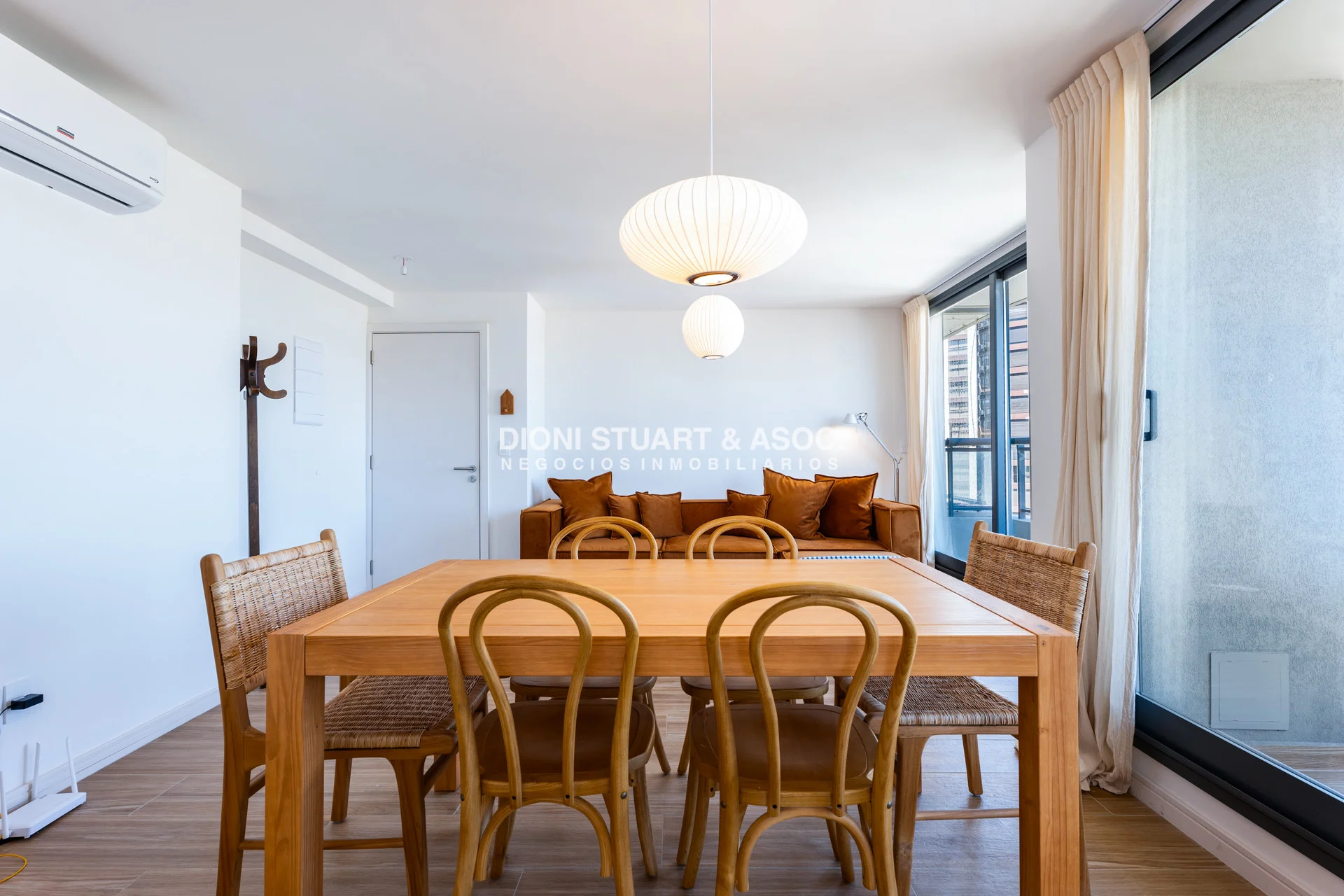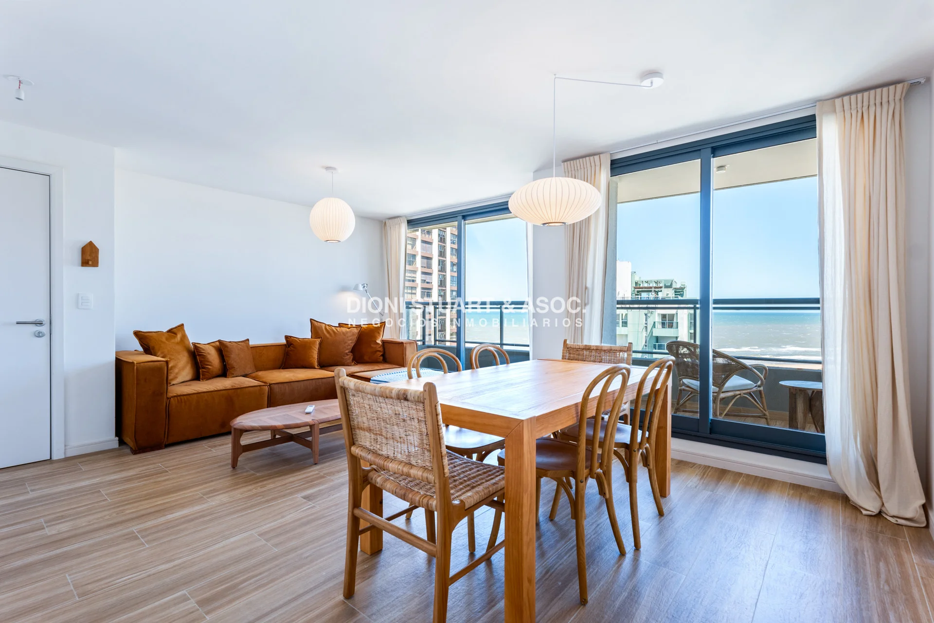 Unidad de 63m2 totales y 55m2 internos, recientemente amueblado y listo para entrar, en el moderno edificio Siglo Sol II recién terminado.Muy luminoso living-comedor con cocina kichinette bien equipada y espacio para lavaropa, terraza balcón abierta con vista al mar, dos dormitorios y dos baños (uno en suite). Cerramiento en DVH de aluminio galvanizado color negro, aire acondicionado en sus ambientes, terminaciones de alta calidad. Ideal para inversión dada sus expensas, cantidad de amenities, ubicación y posibilidades de renta.