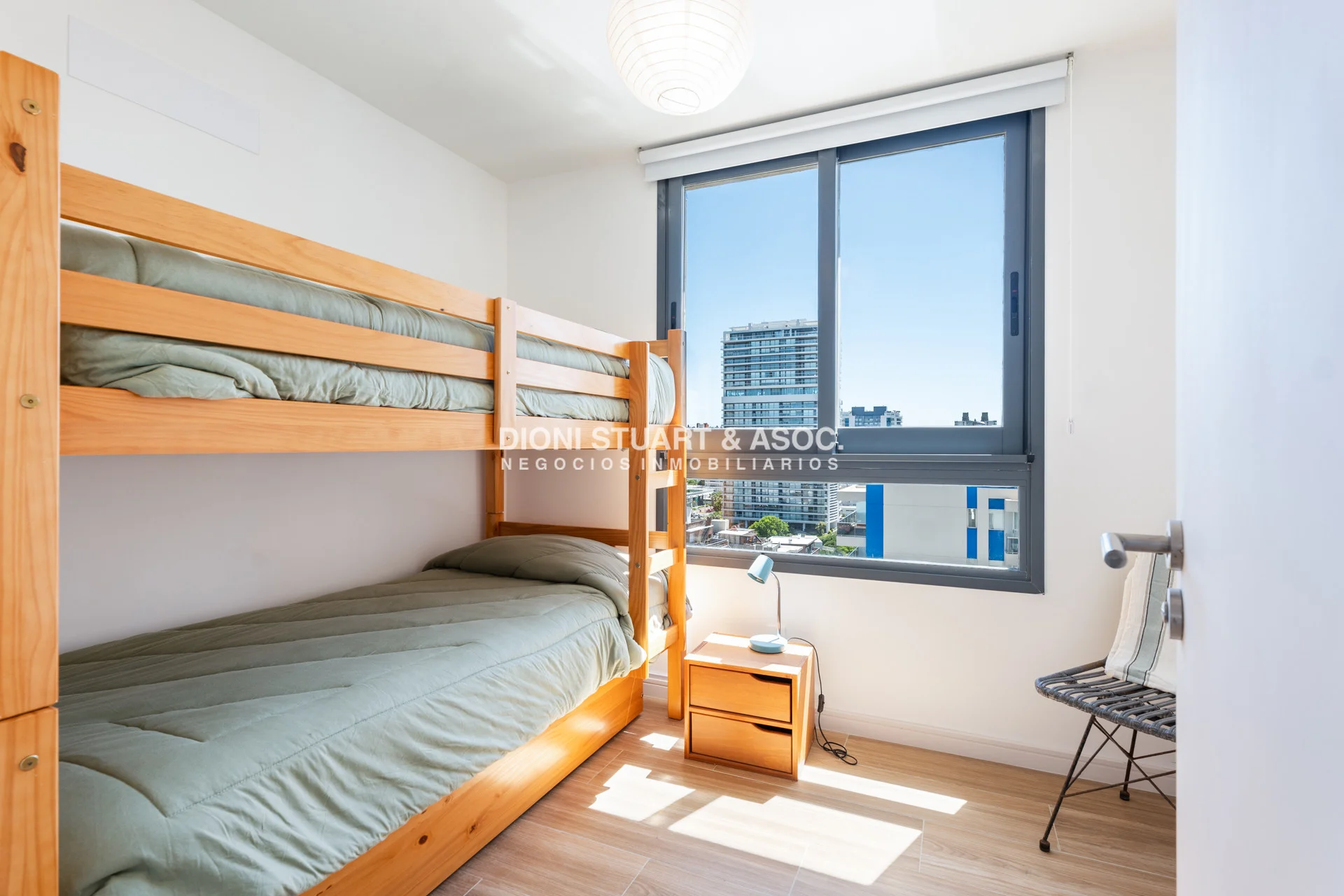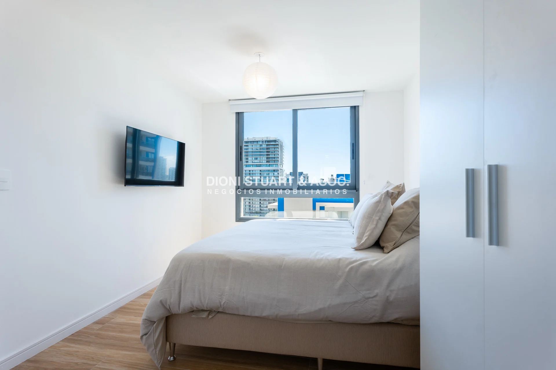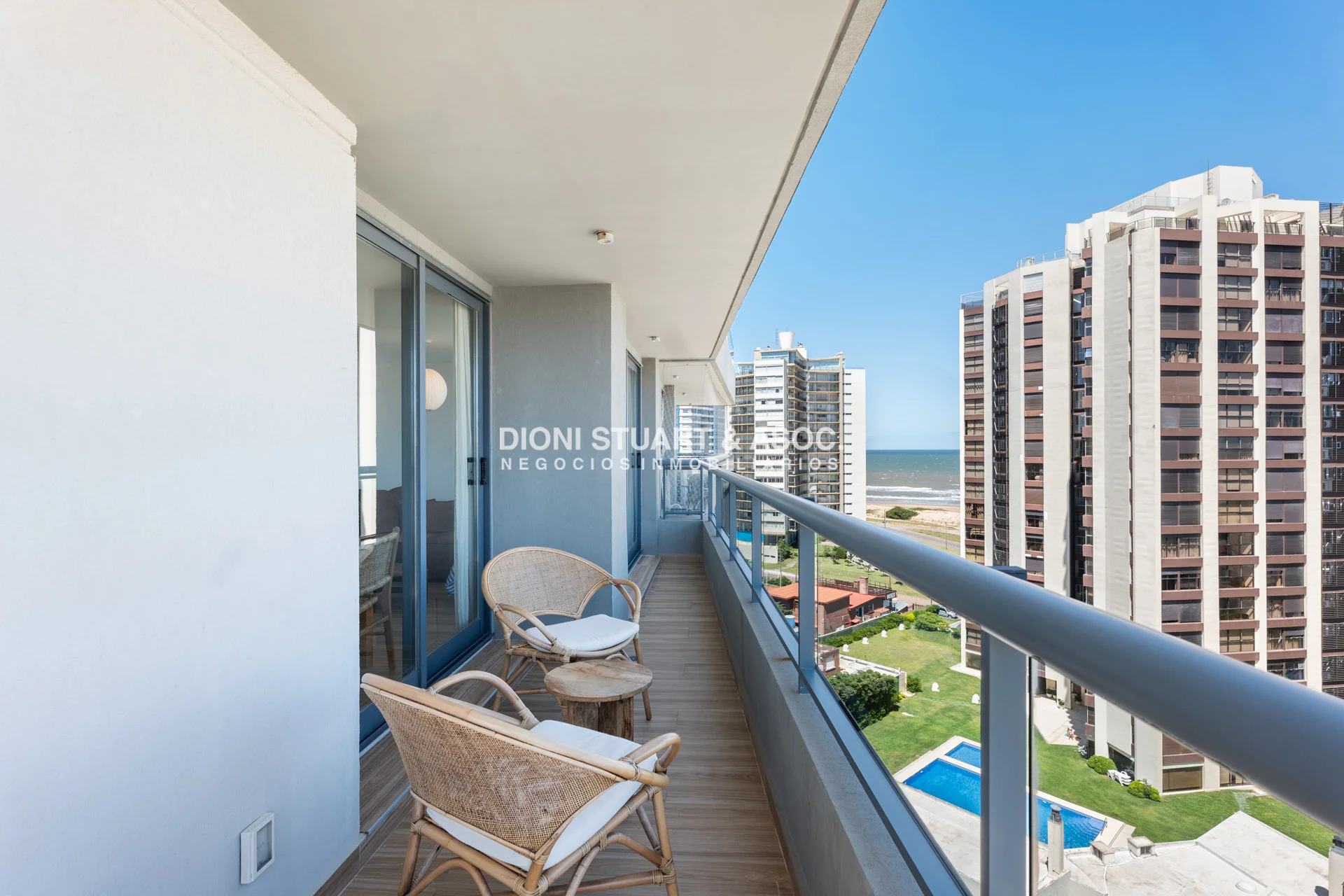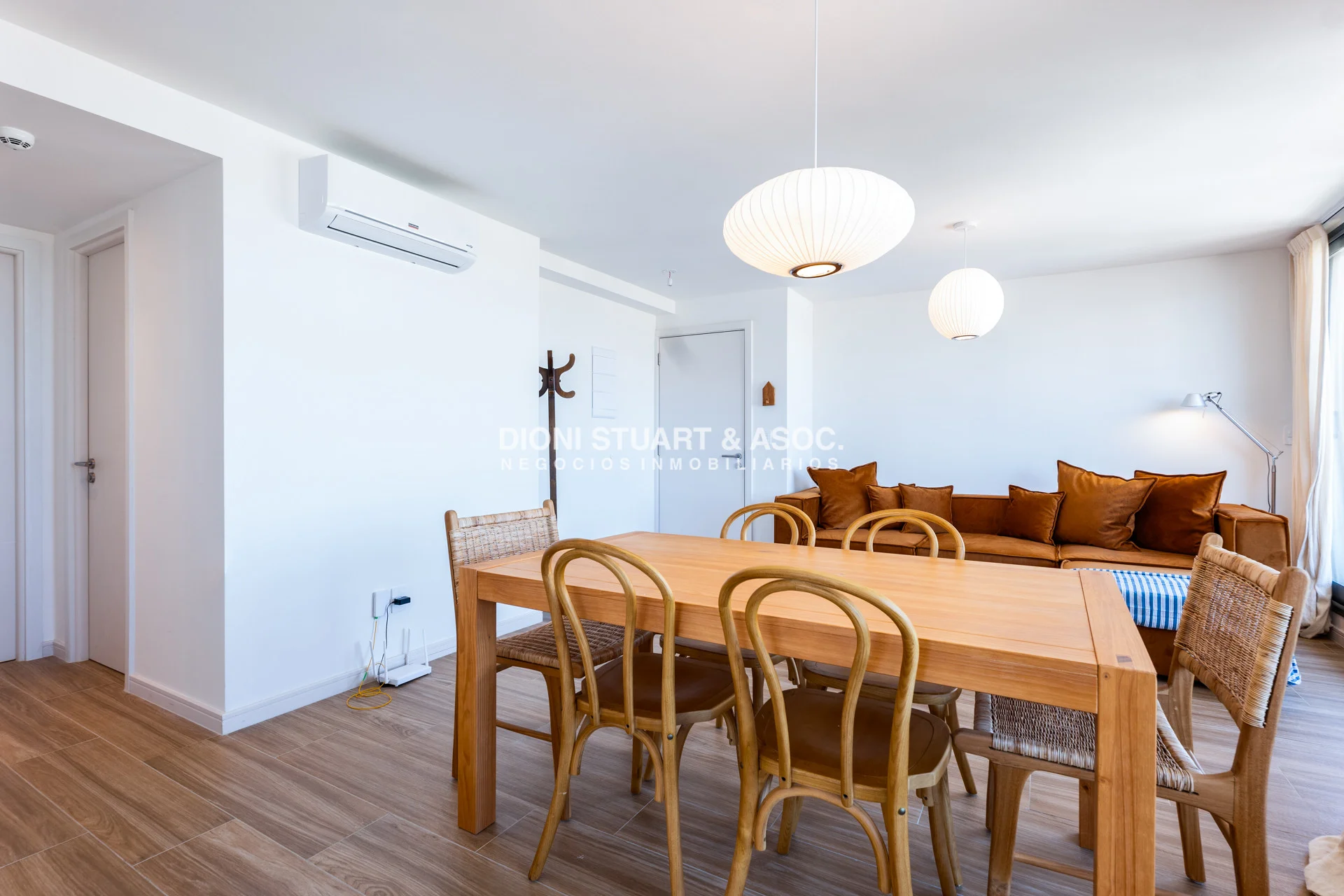 Unidad de 63m2 totales y 55m2 internos, recientemente amueblado y listo para entrar, en el moderno edificio Siglo Sol II recién terminado.Muy luminoso living-comedor con cocina kichinette bien equipada y espacio para lavaropa, terraza balcón abierta con vista al mar, dos dormitorios y dos baños (uno en suite). Cerramiento en DVH de aluminio galvanizado color negro, aire acondicionado en sus ambientes, terminaciones de alta calidad. Ideal para inversión dada sus expensas, cantidad de amenities, ubicación y posibilidades de renta.