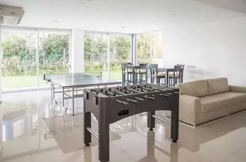 Gimnasio, parrilleros-barbacoa, lavadero, espacio para niños-adolescentes, piscina exterior climatizada, garaje para un auto, servicio de playa.