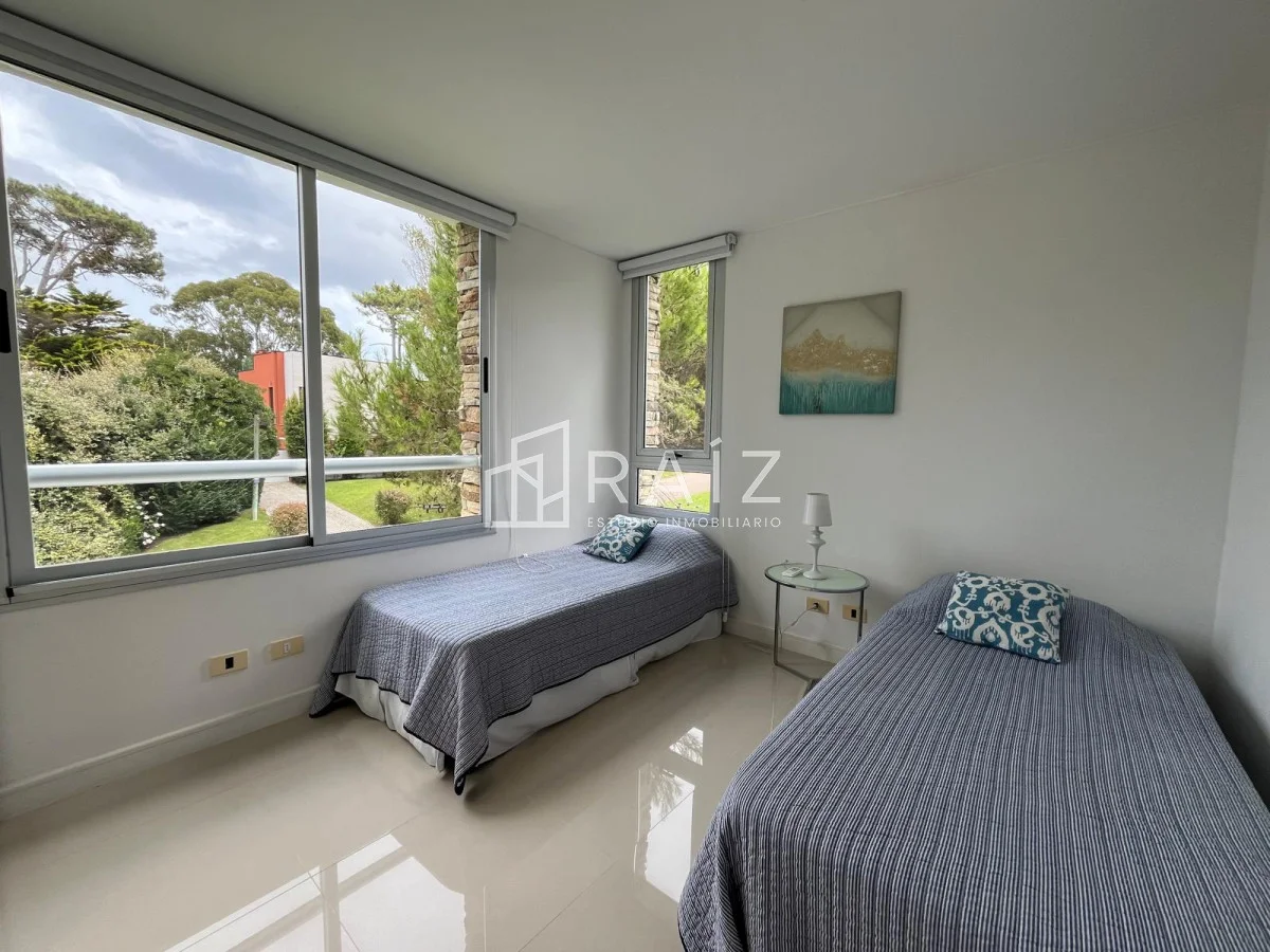 Rodeado de naturaleza, en la tranquilidad del bosque y a pocos metros del mar se encuentra este apartamento de 3 dormitorios, con amplio balcón con parrillero, garaje y baulera. Amplia planta a estrenar. Referencia Interna : Tera-2680