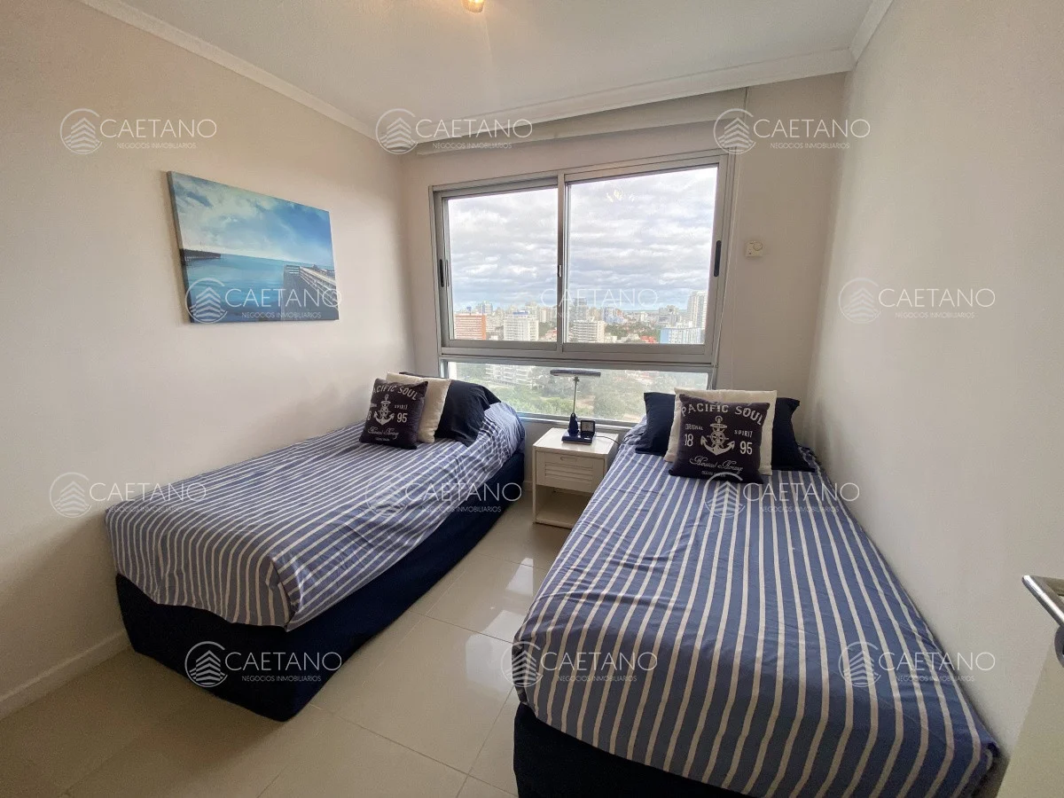En torre con servicios de primer nivel. Piso alto con muy buenas vistas a playa brava y mansa.