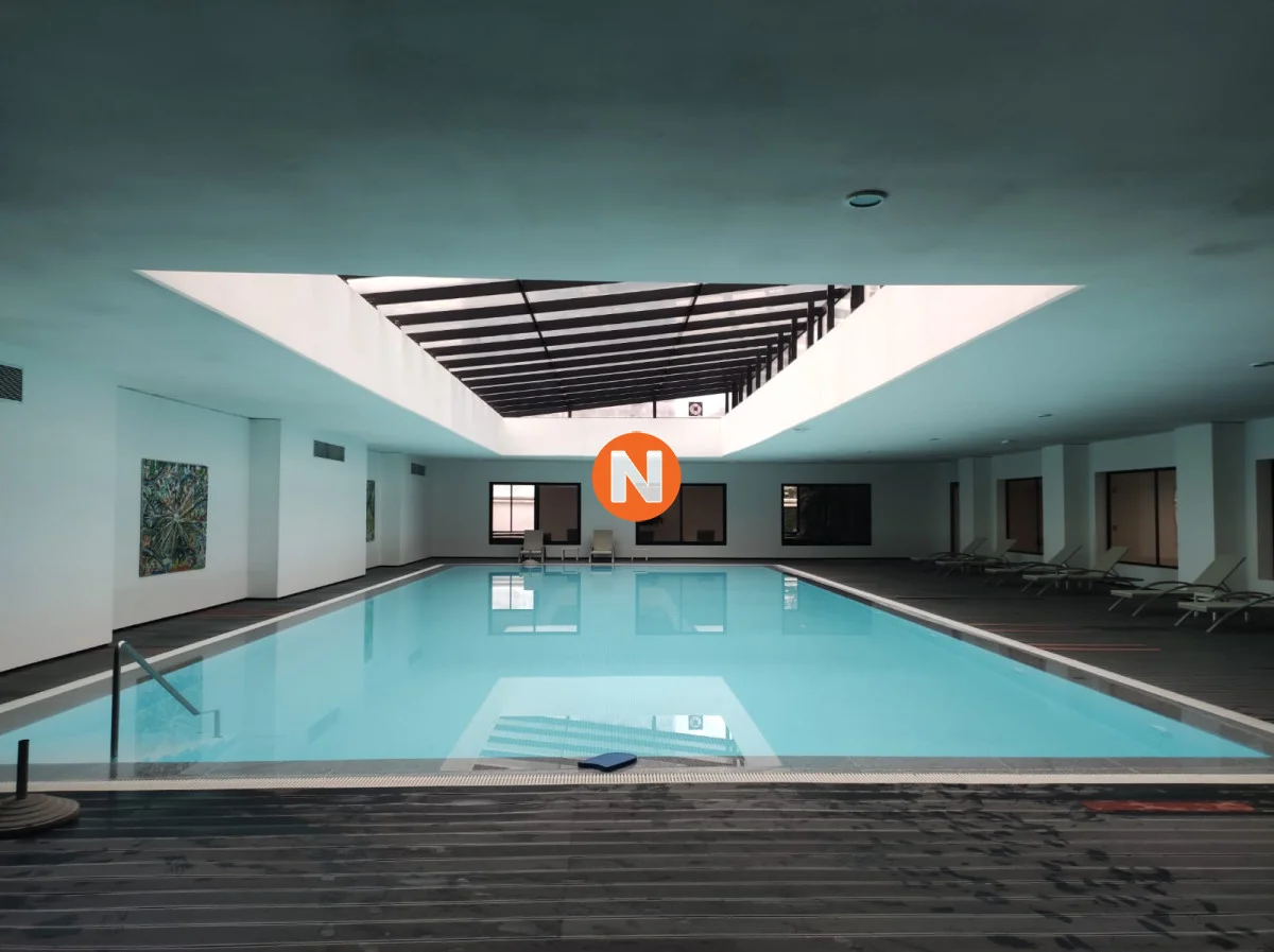 El living y comedor se fusionan en un espacio abierto y acogedor, ideal para reuniones familiares o simplemente para disfrutar de una noche tranquila en casa. Pero eso no es todo, este apartamento también cuenta con un sauna privado para tus momentos de relajación y una piscina para disfrutar durante los cálidos días de verano.