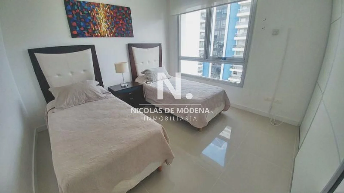 A metros del mar, en una de las zonas de mas categoría. Apartamento en torre de Categoria. OPORTUNIDAD DESTACADA! Amplios ambientes. 3 dormitorios, 2 baños completos. Suite comoda, amplio living comedor con cocina integrada, balcón y garaje en subsuelo. La torre cuenta con amenities de primera categoría, entre los cuales se destacan: piscina interior climatizada, sauna, sala de notebooks, playroom para niños y adolescentes, gimnasio, 6 barbacoas totalmente equipadas, área de fogón, 2 piscinas exteriores, solarium, mucama, recepción las 24 hs. El apartamento se vende con muebles básicos. Superficie total incluye circulaciones y cochera. Referencia Interna : Tera-1909
