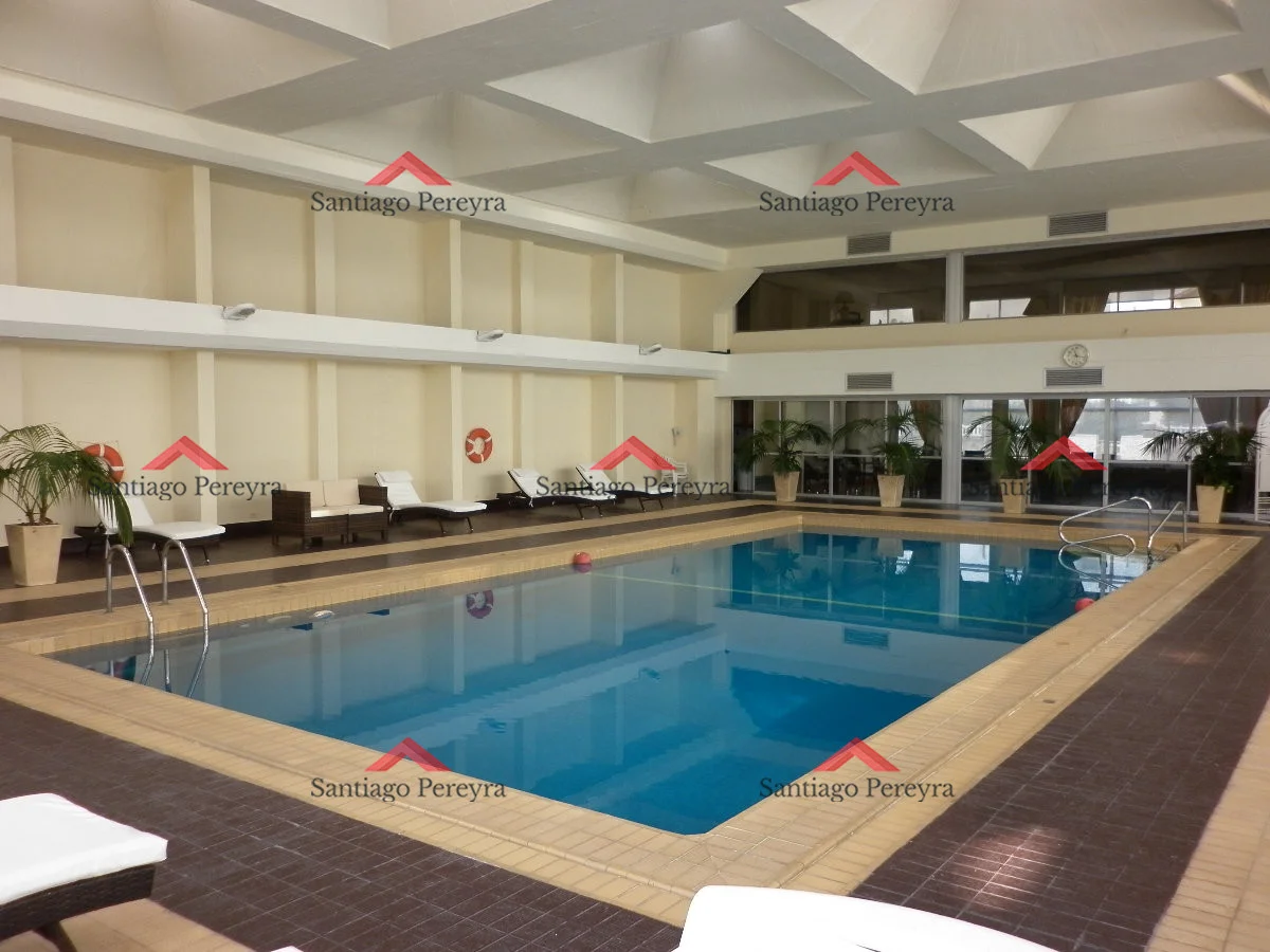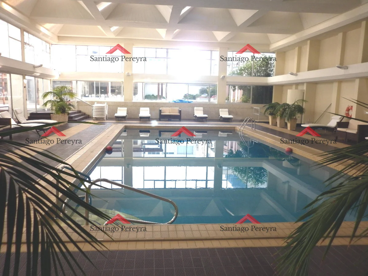 El edificio ofrece además, recepción las 24hs, servicio de mucamas, piscina climatizada interior y barbacoas de uso común.