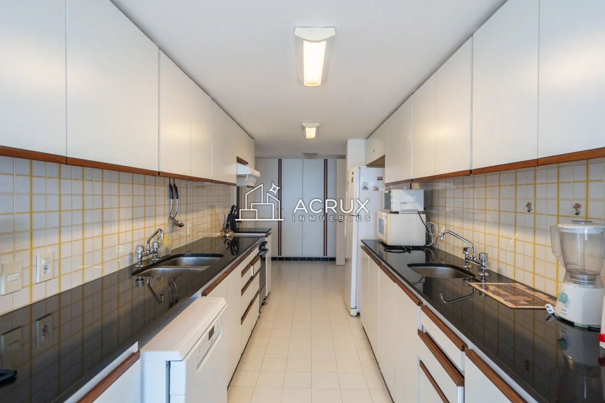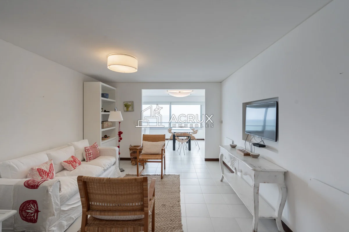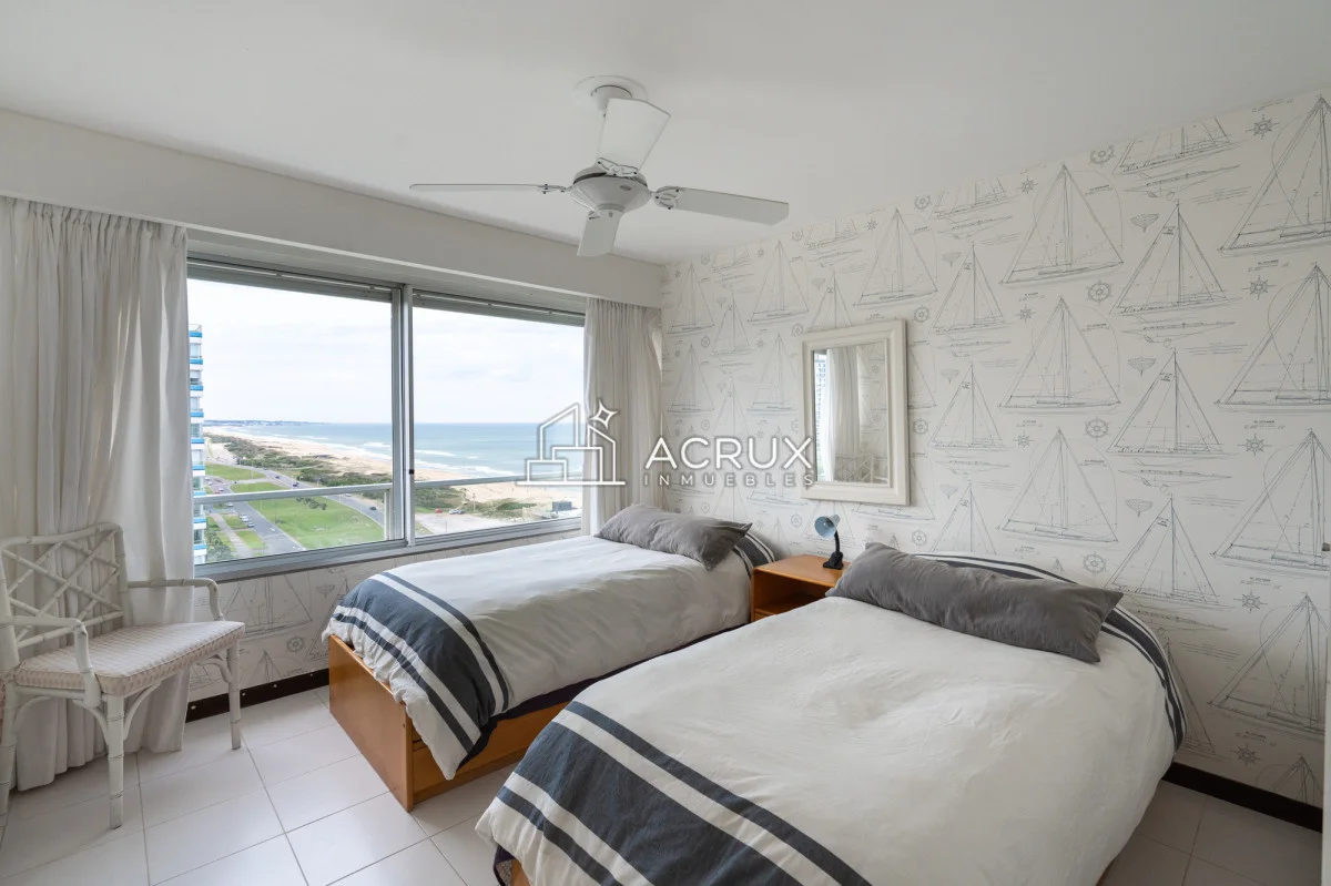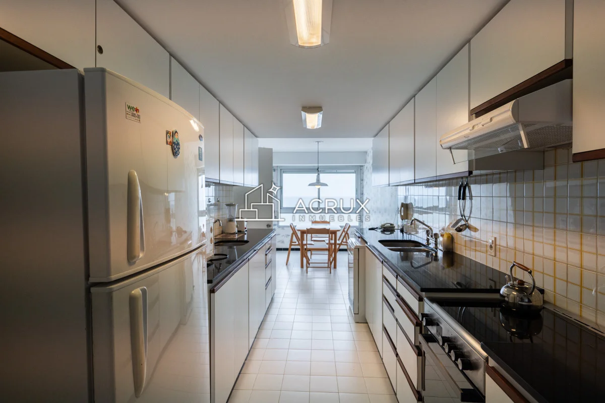 El diseño de este apartamento destaca por su luminosidad y amplitud. La cocina, equipada con modernos electrodomésticos, se integra perfectamente al living comedor, creando un ambiente ideal para compartir momentos inolvidables con familiares y amigos. Además, cuenta con servicio de mucamas y servicio de playa, asegurando que cada detalle de tu estadía sea placentero y sin preocupaciones.