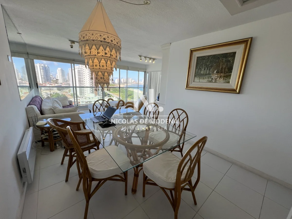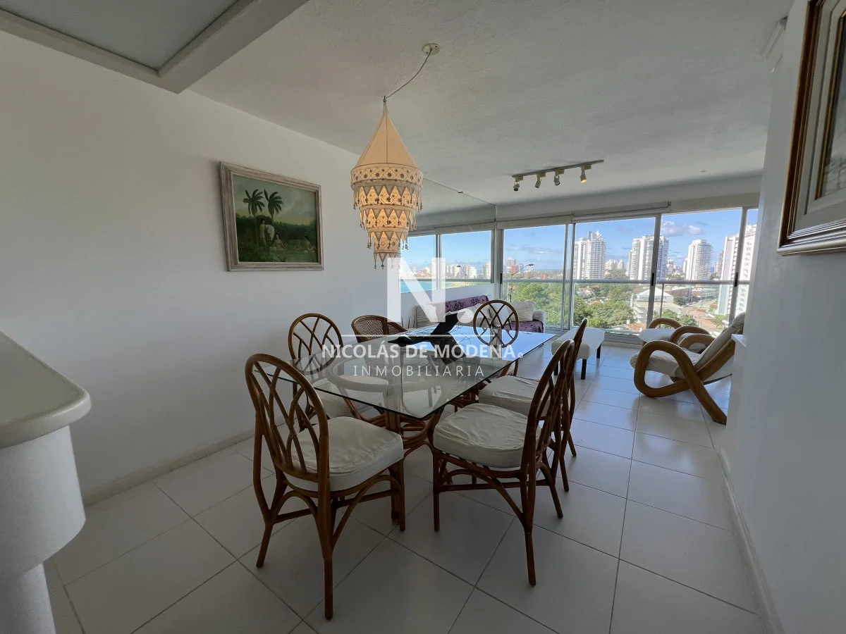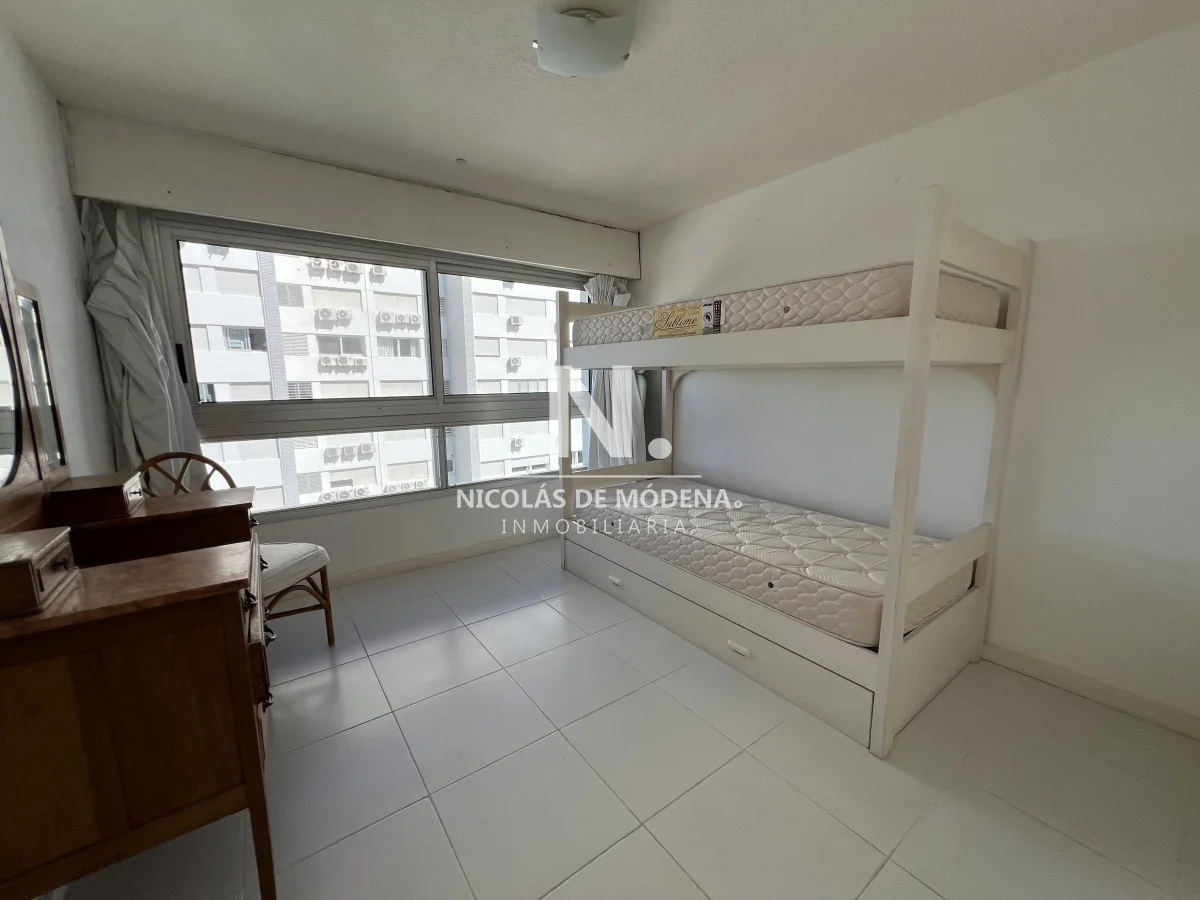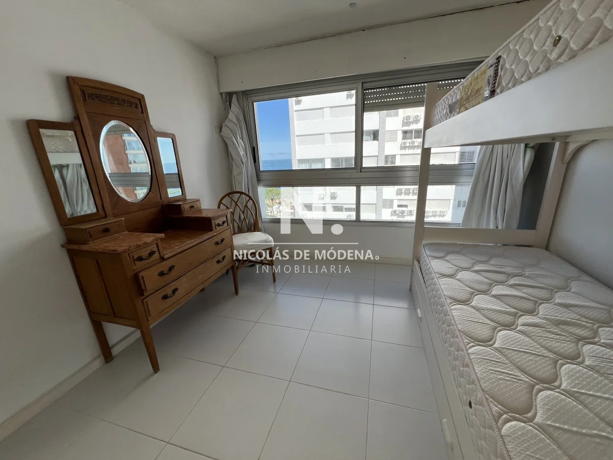 Apartamento en venta de 2 dormitorios, 2 baños, uno en suite, amplio living comedor con vista al mar, cochera, gastos moderados. Edificio con portería 24 hs., servicio de playa, de mucama (opcional), gimnasio, laundry, sauna, sala de juegos, etc. Consulte con nuestros asesores.