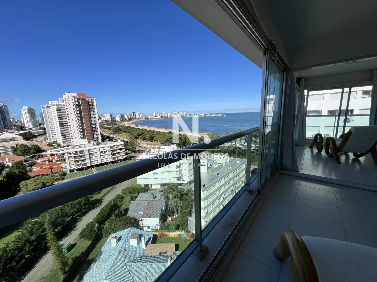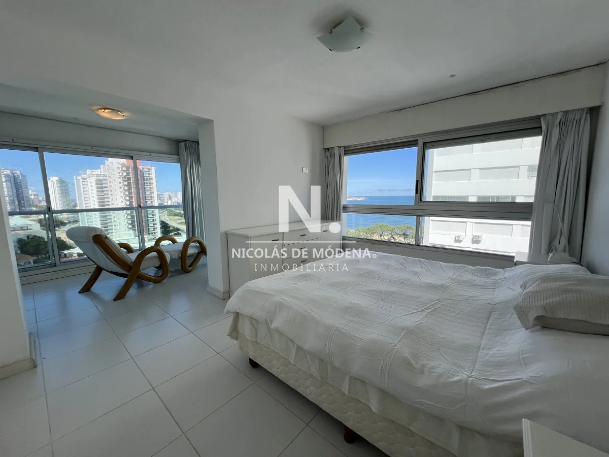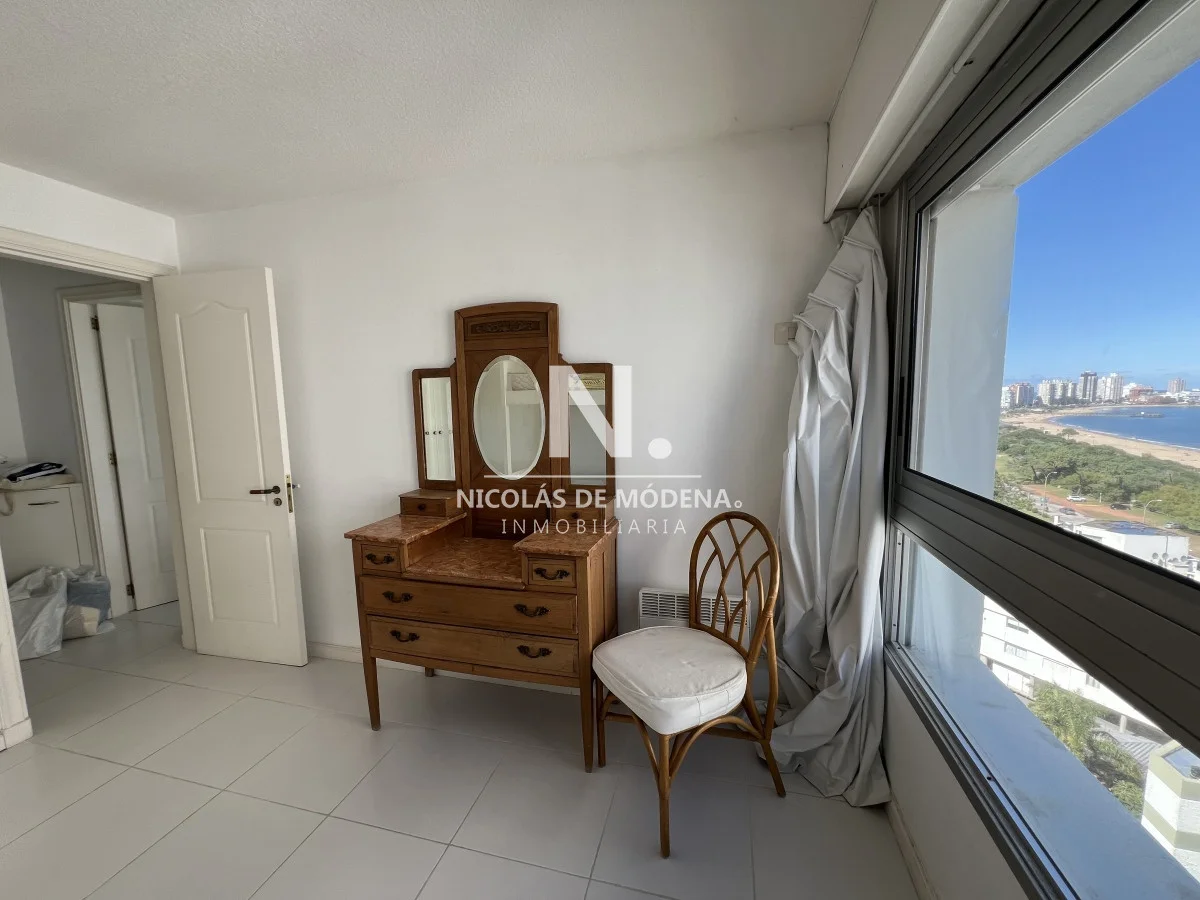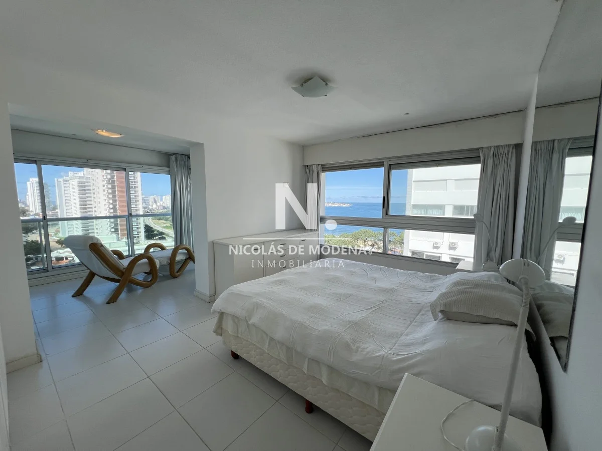 Apartamento en venta de 2 dormitorios, 2 baños, uno en suite, amplio living comedor con vista al mar, cochera, gastos moderados. Edificio con portería 24 hs., servicio de playa, de mucama (opcional), gimnasio, laundry, sauna, sala de juegos, etc. Consulte con nuestros asesores.