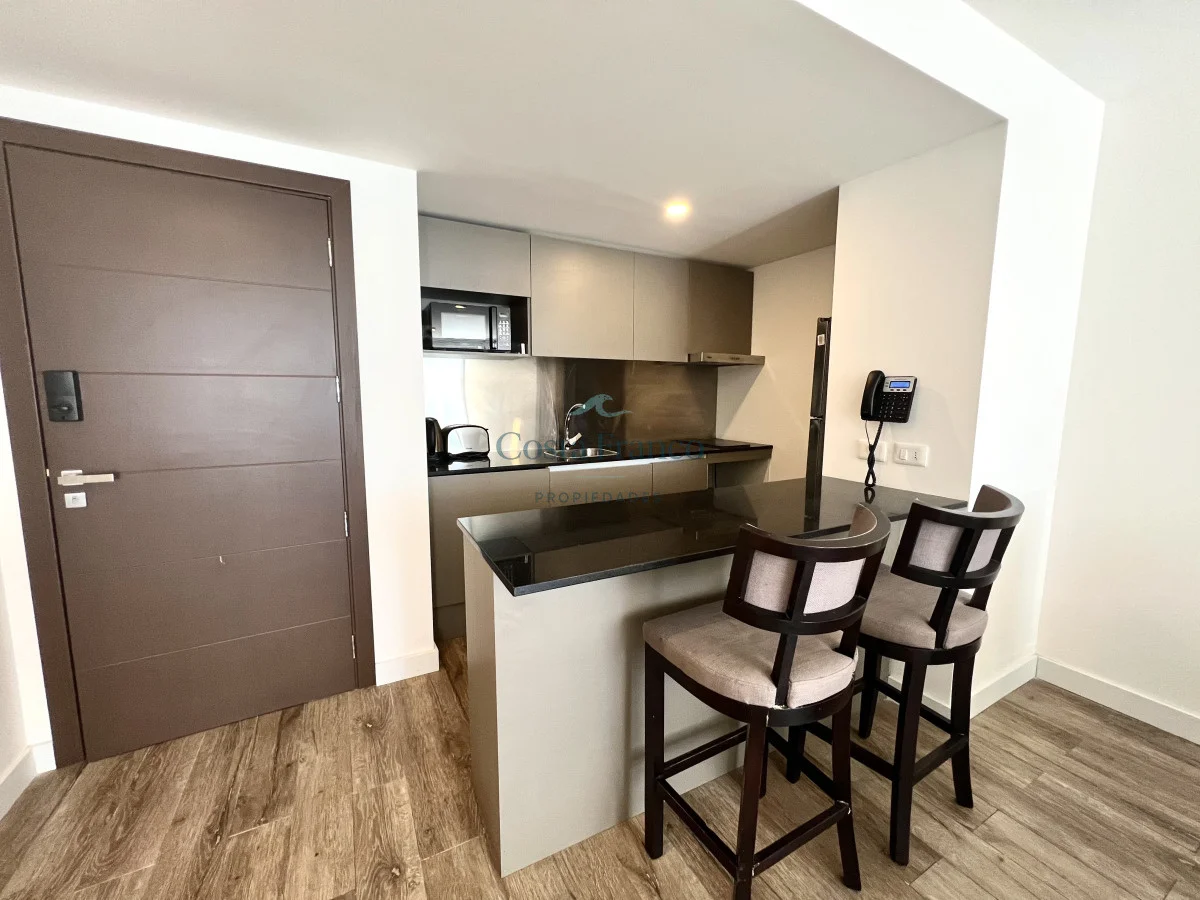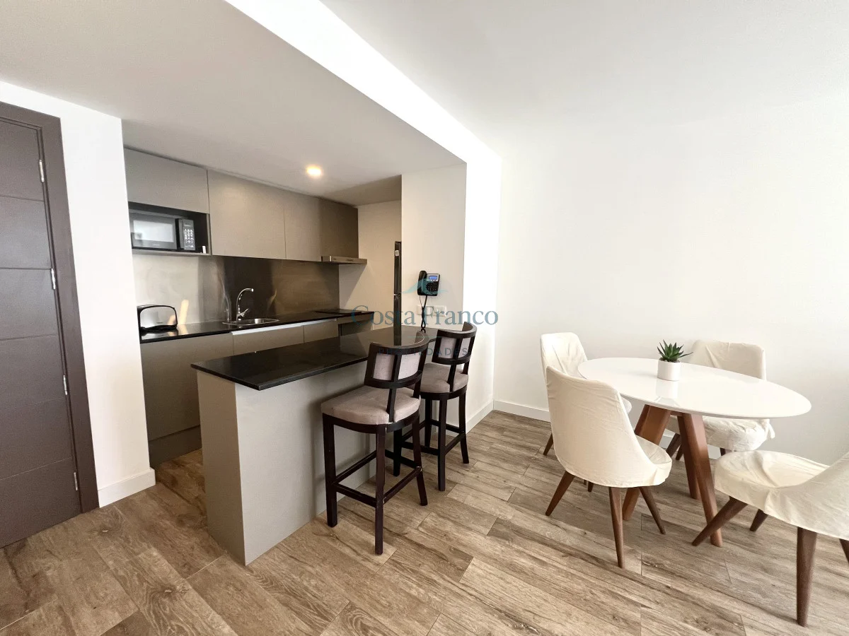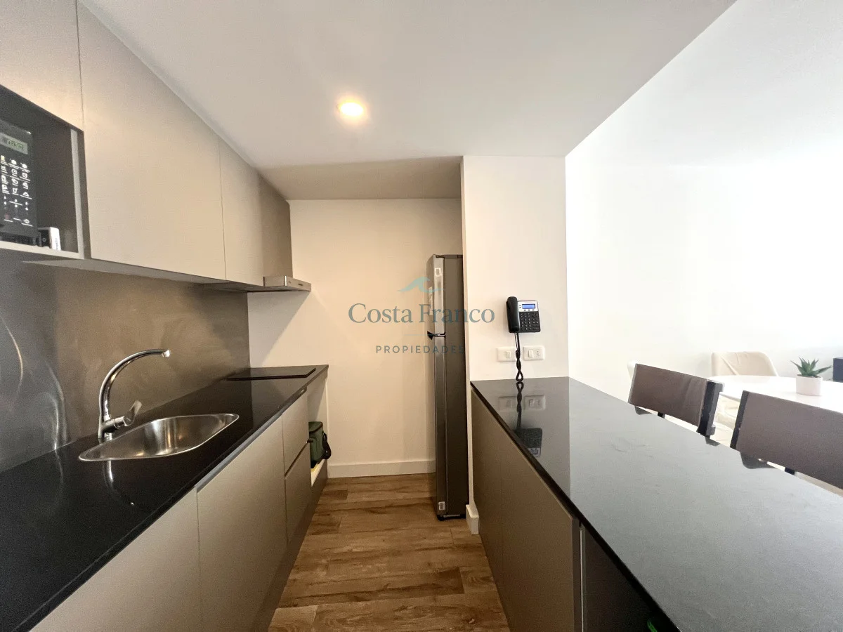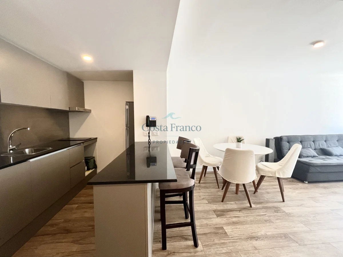 Un dormitorio, vestidor, baño, amplio living comedor con salida a un amplio balcón, cocina integrada.