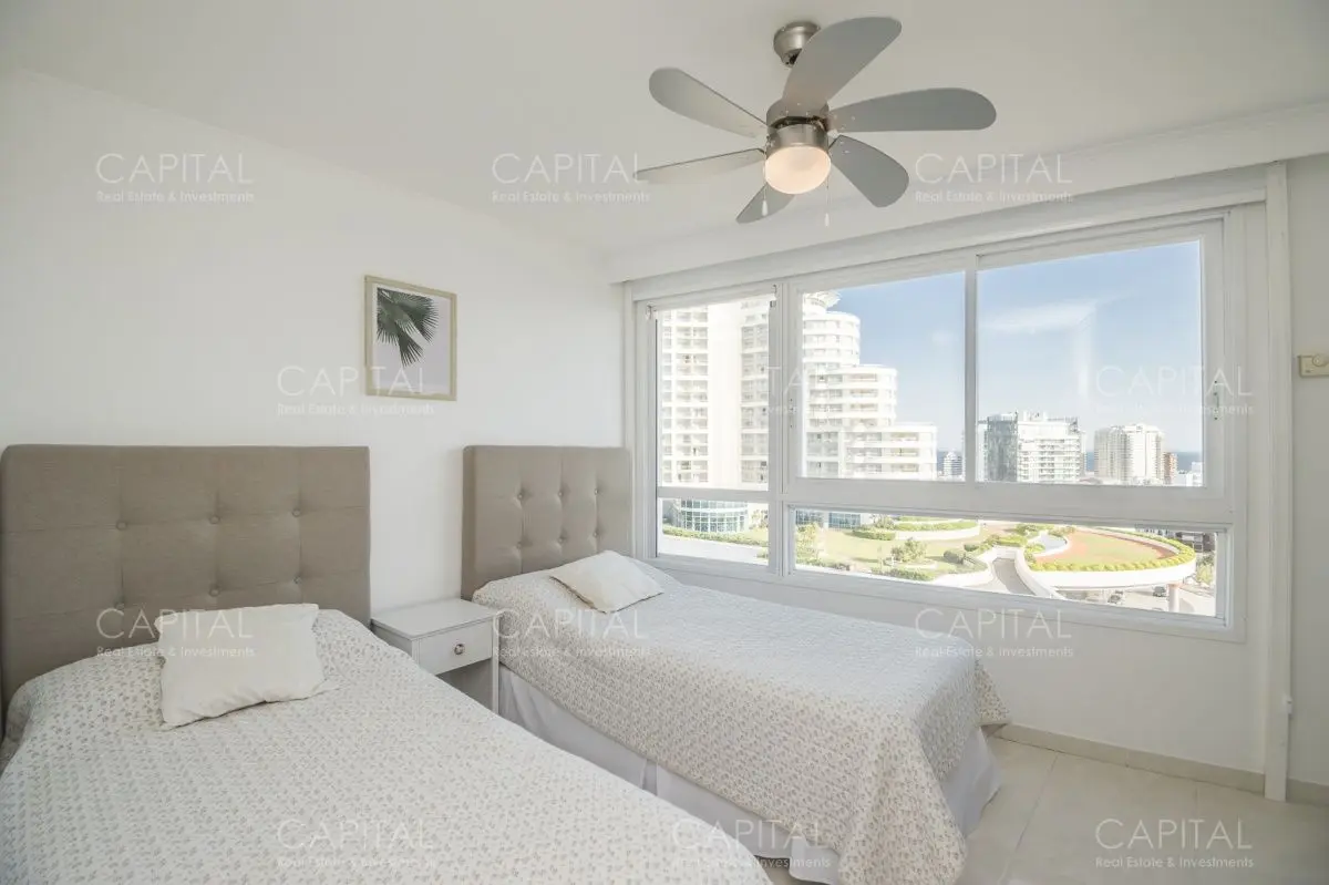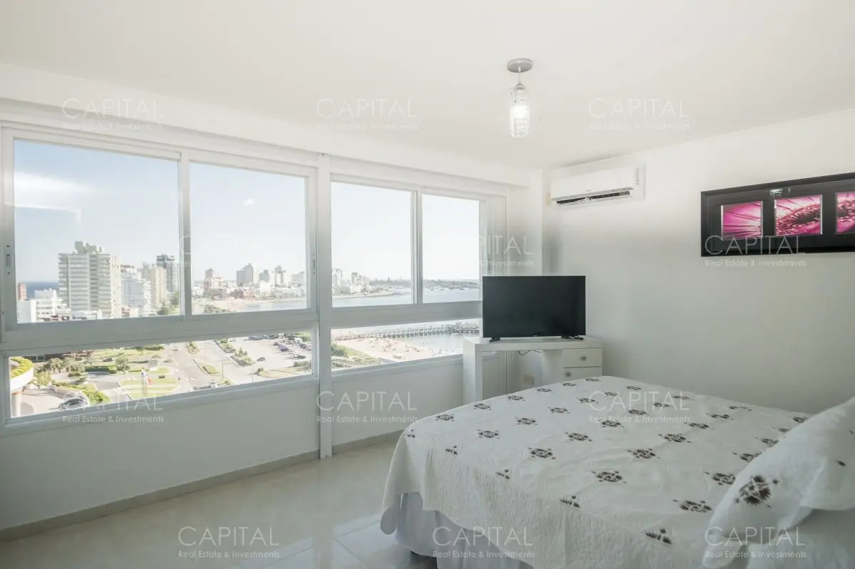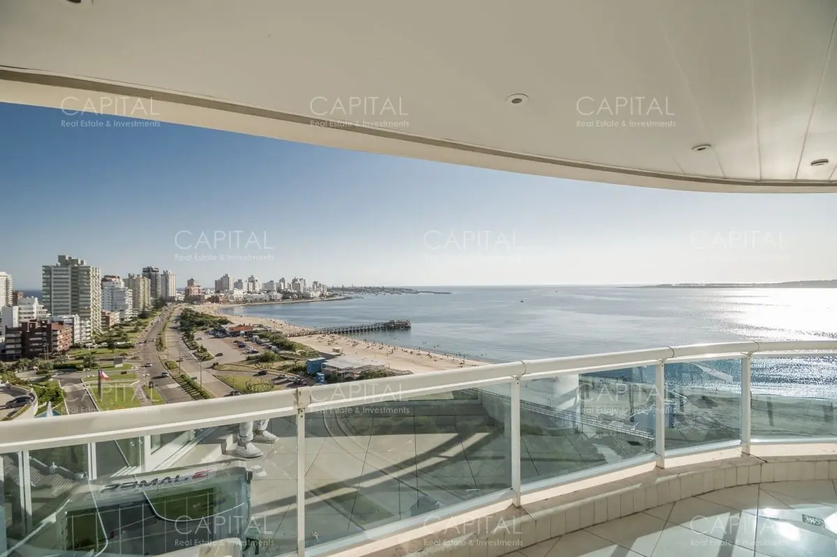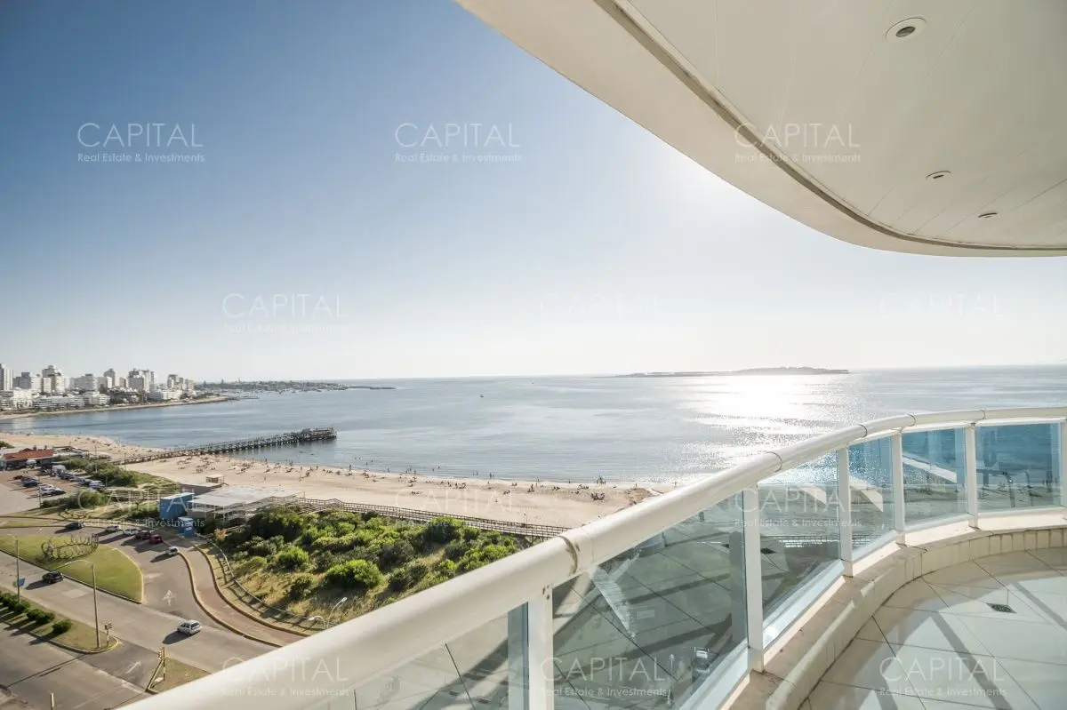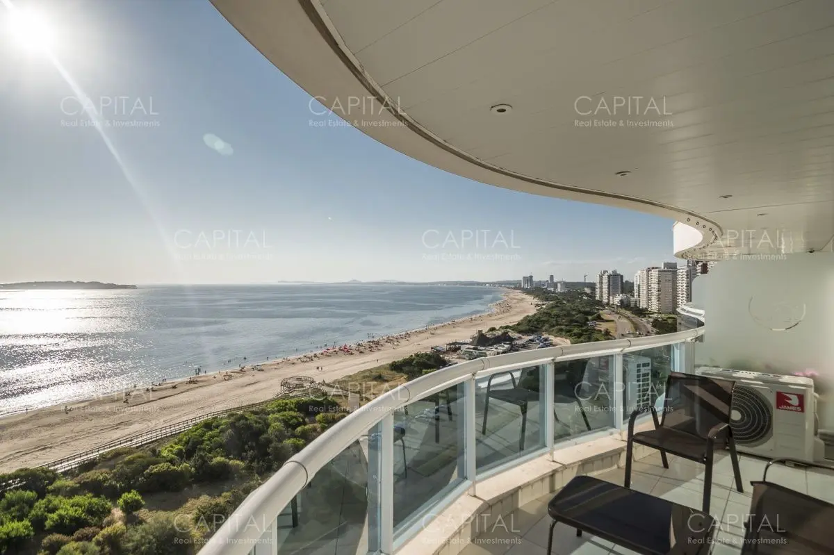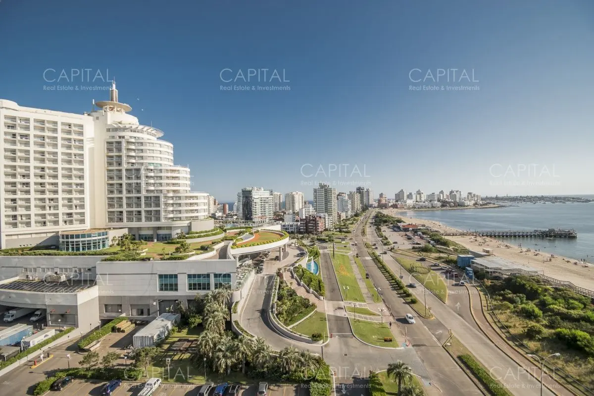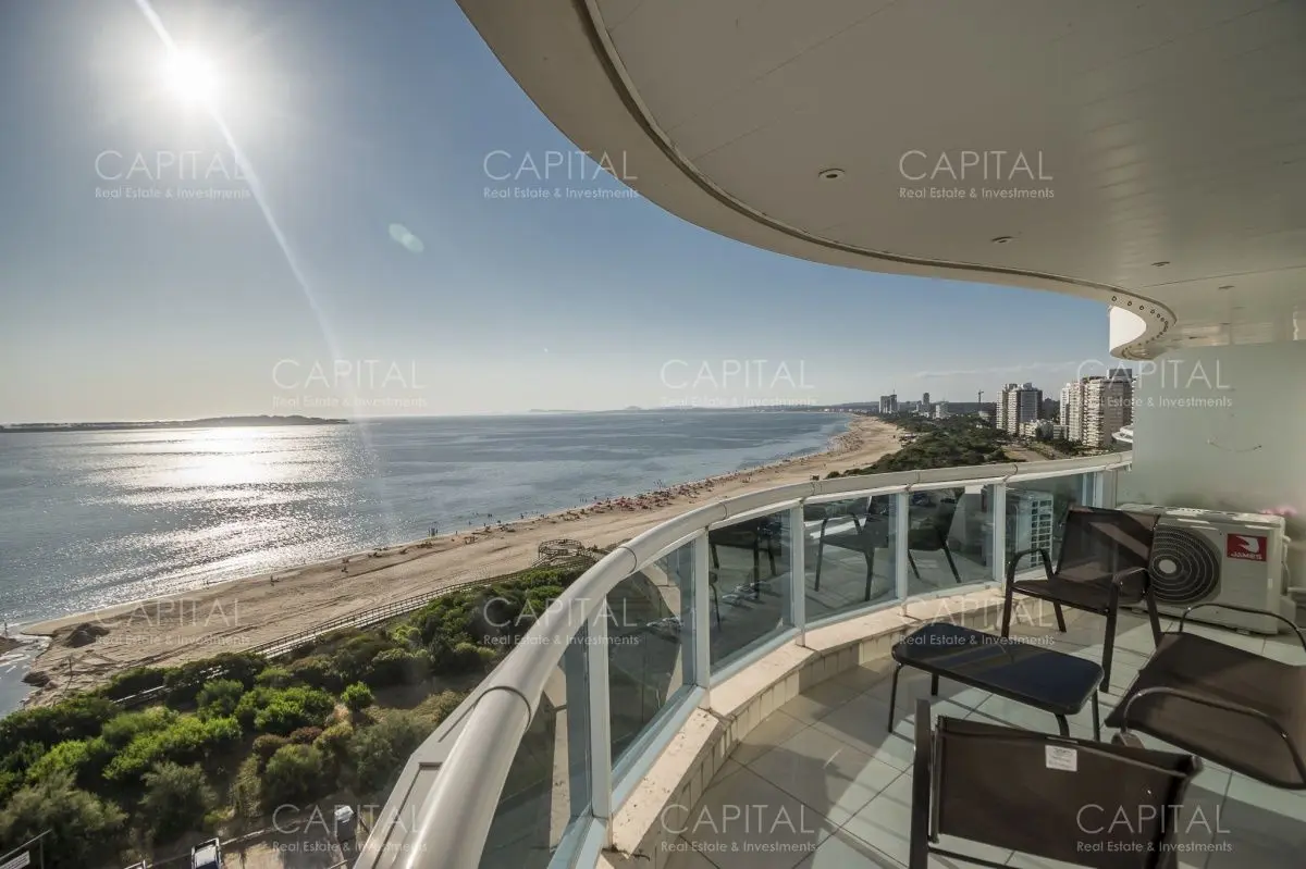 Apartamento de primer nivel en Playa Mansa, Punta del Este, living comedor amplio con vista al mar y el atardecer