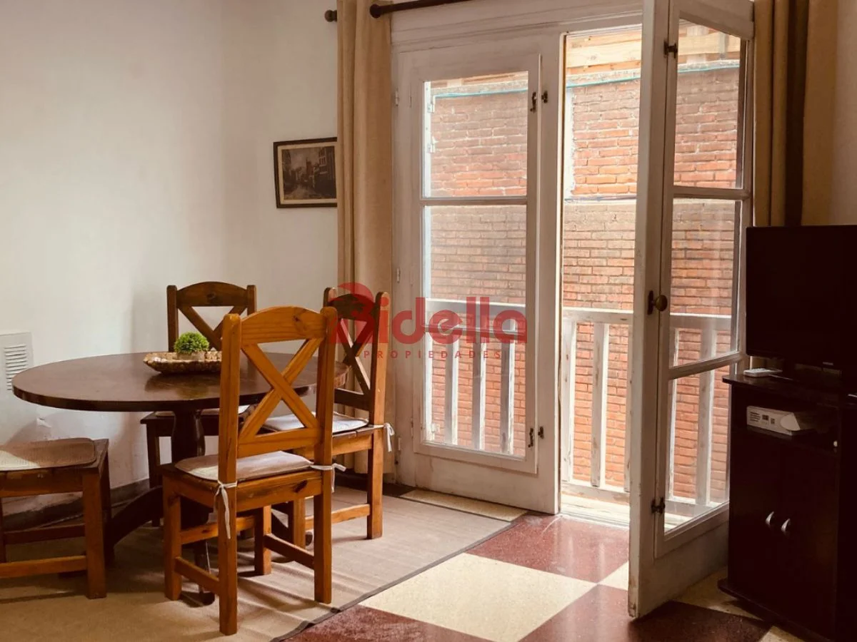 Ubicado en primer piso por escalera, este apartamento ofrece buena luminosidad y ventilación natural. Cuenta con un living-comedor con ventanal, un dormitorio con acceso al balcón y una cocina definida. Está completamente amoblado y equipado, con aire acondicionado en ambos ambientes. El balcón da a un pasaje interno, proporcionando mayor tranquilidad.