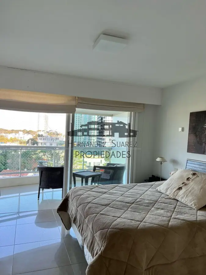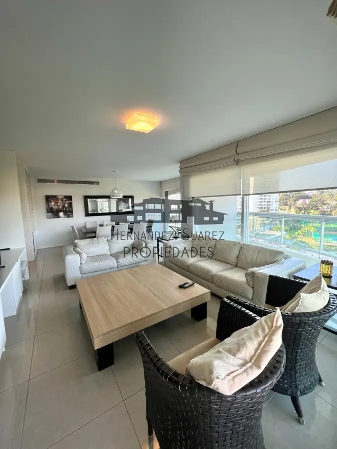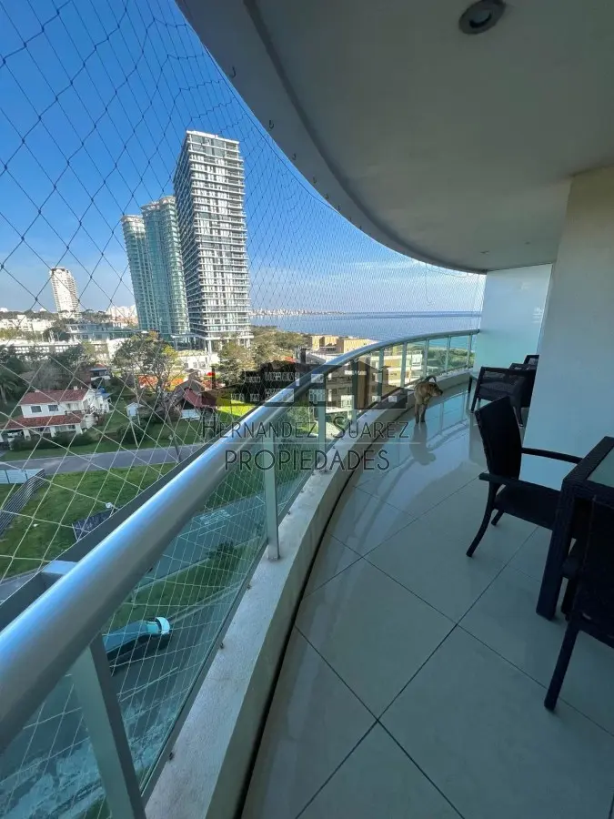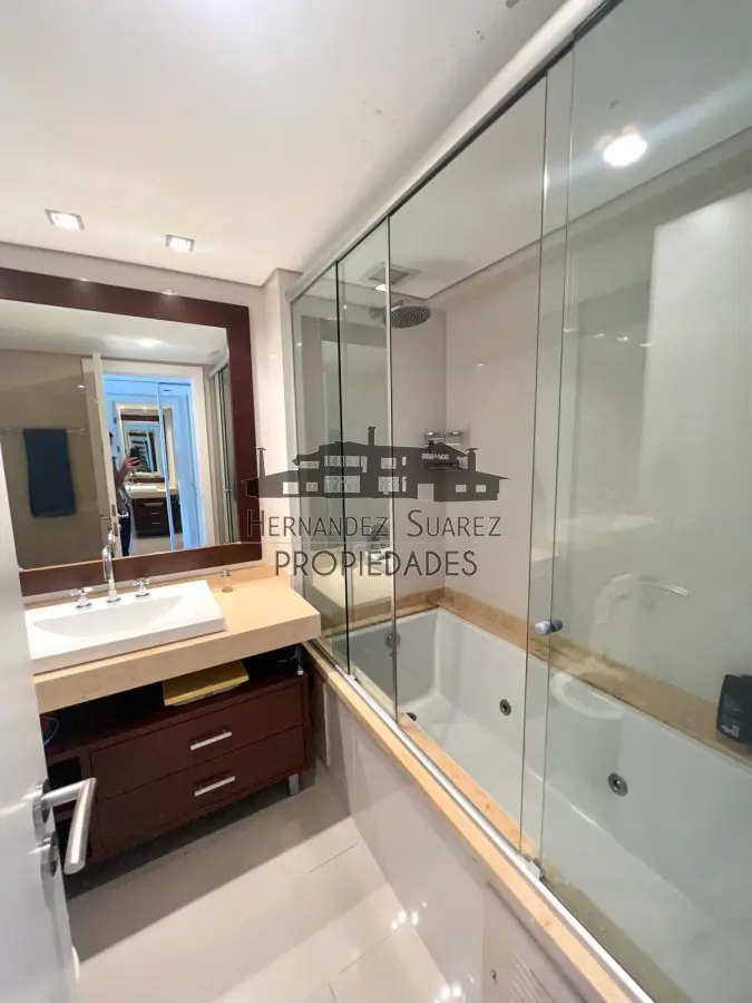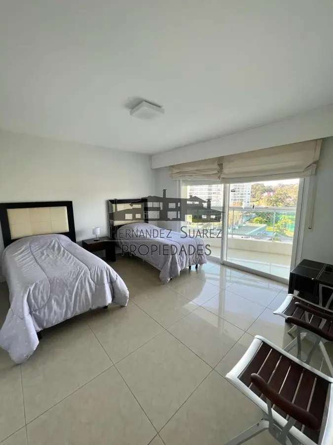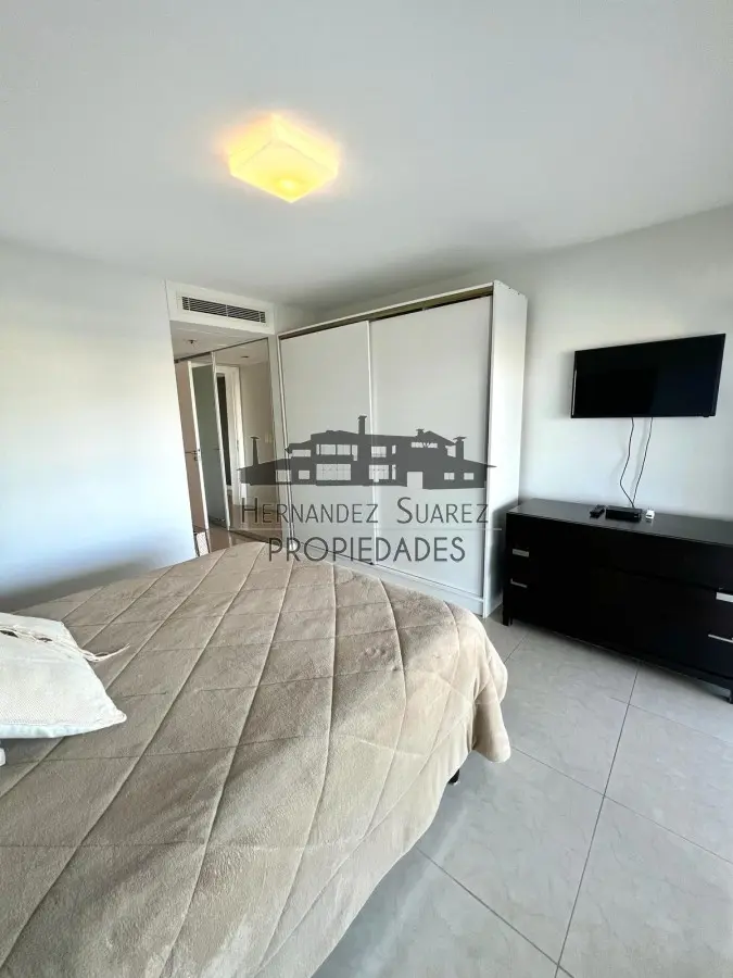 Se alquila espectacular apartamento de 2 dormitorios y servicio en edificio Aquarela, ubicado frente al mar en la parada 18 de la mansa.