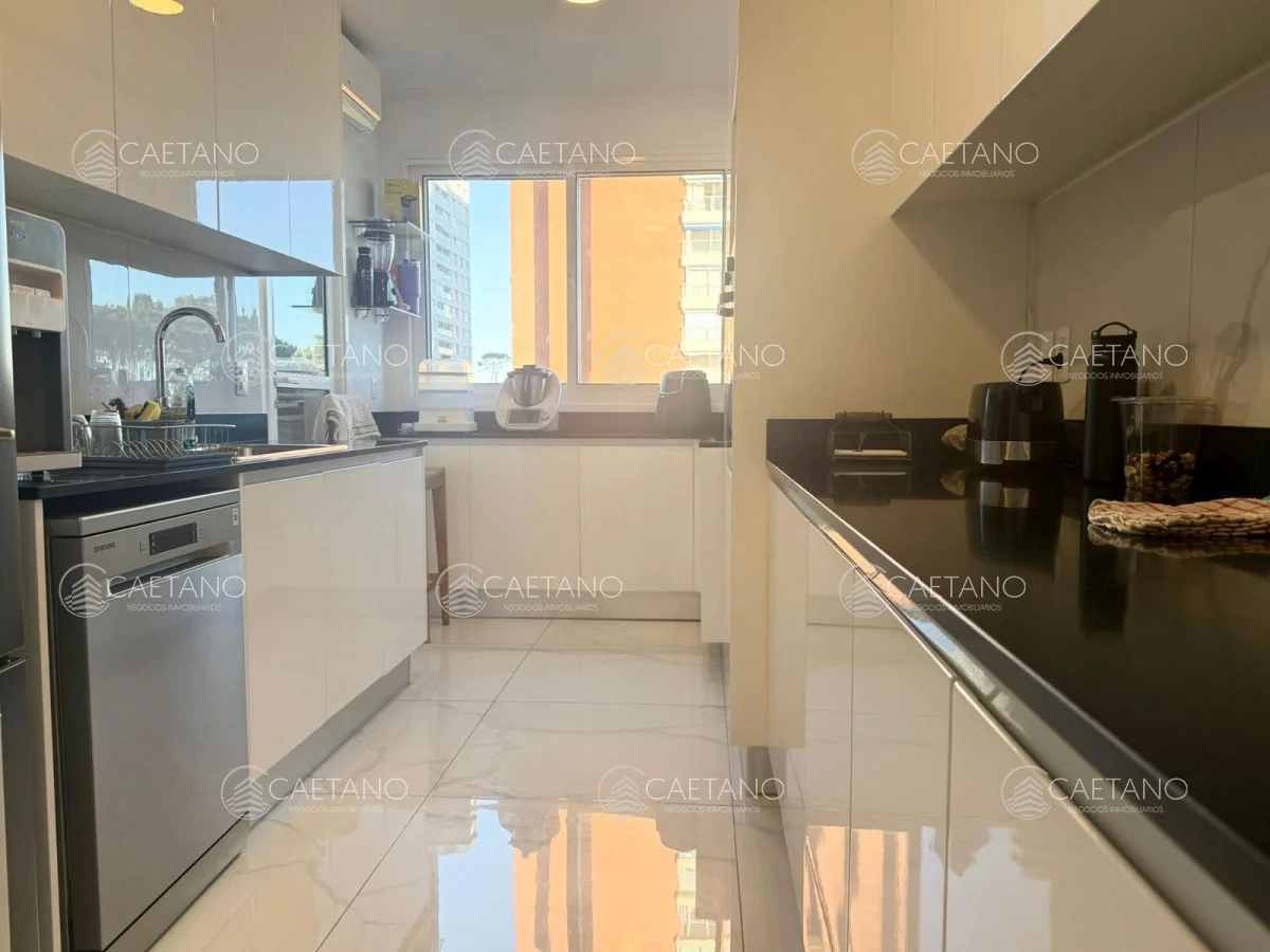 Amplio living-comedor con terraza, tres suites elegantes, toilette social, cocina definida con terraza lavadero y dependencia de servicio completa que puede ser un dormitorio más.