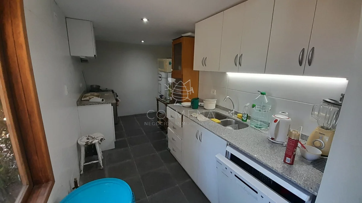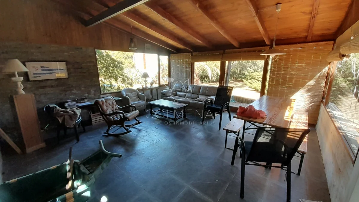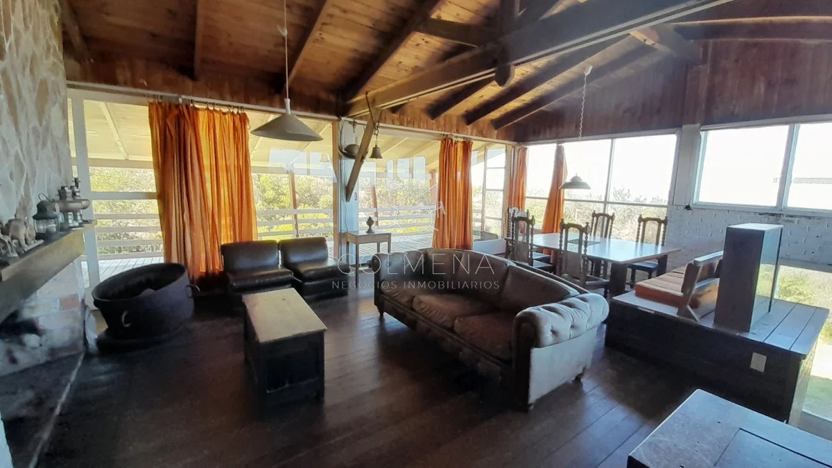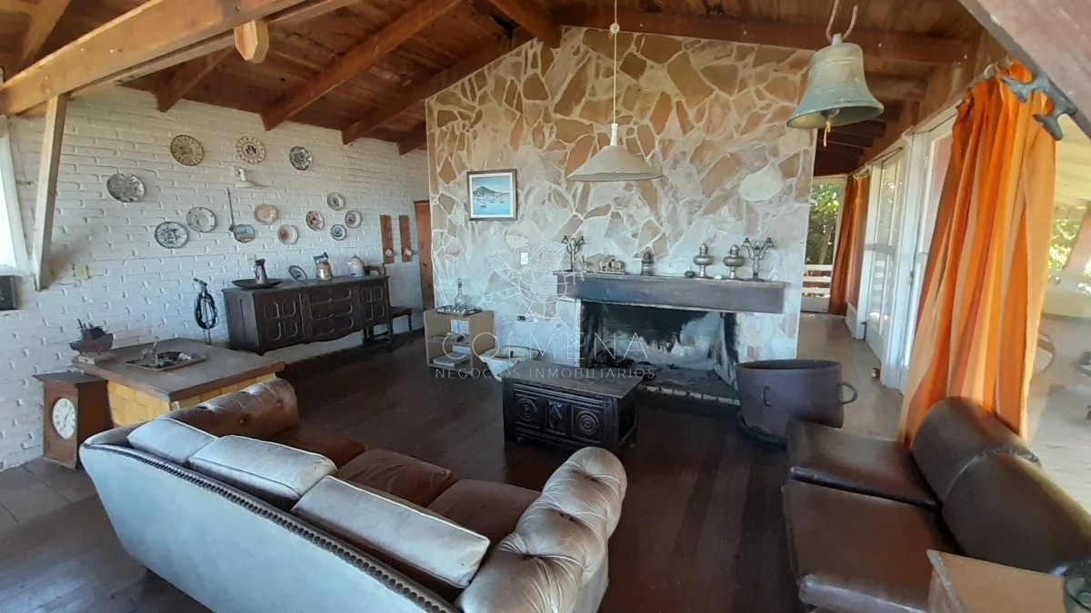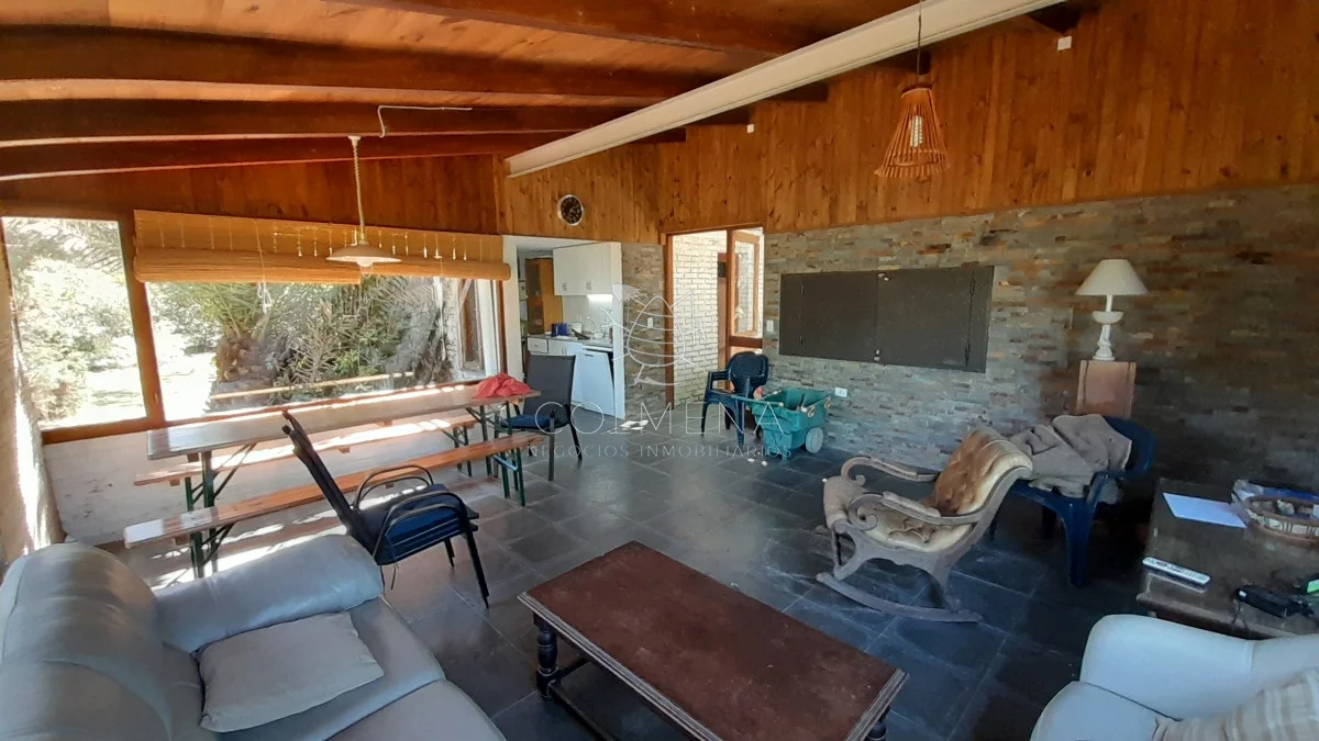 Living comedor con estufa a leña, cocina y amplia terraza. 4 dormitorios, 5 baños.