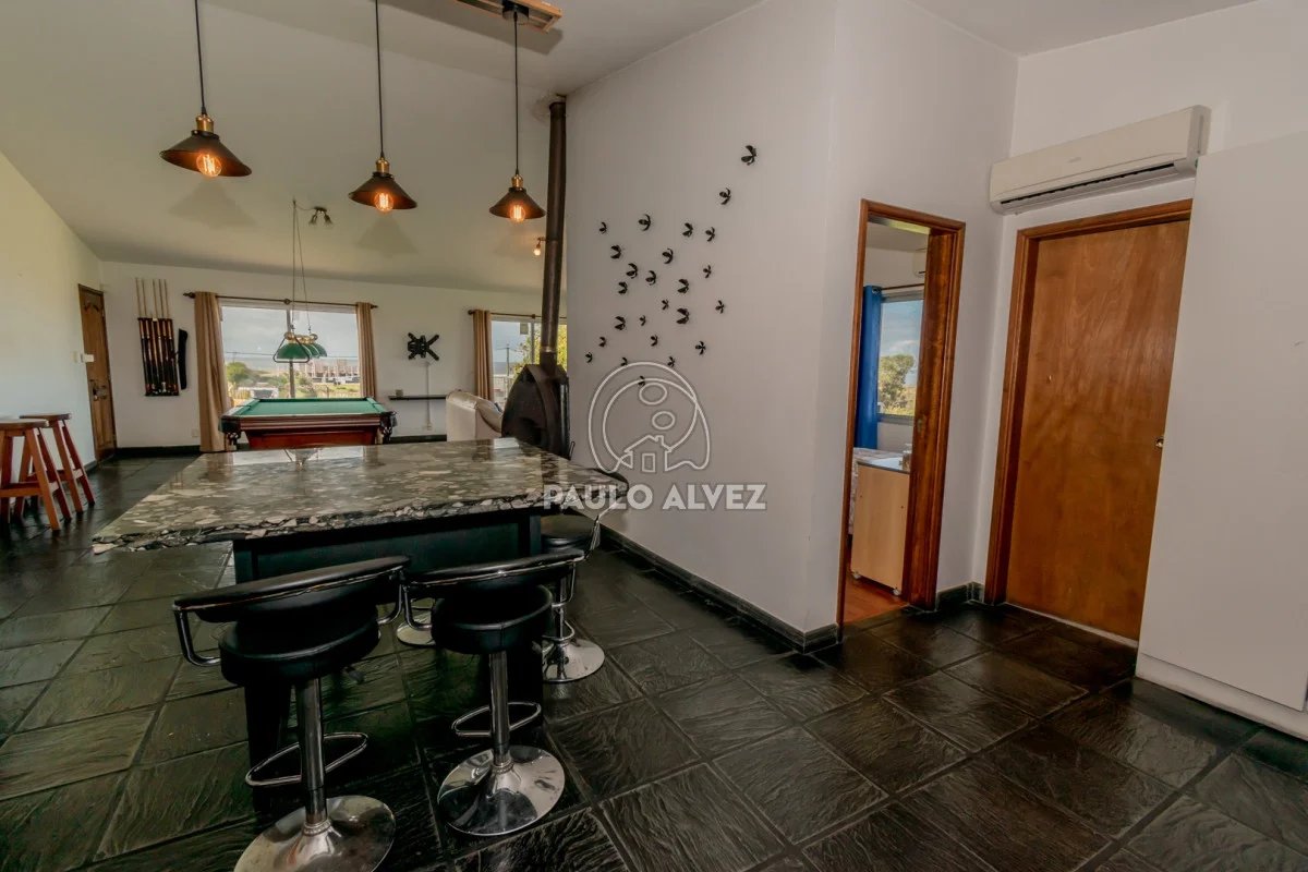 Propiedad ubicada en Barra de Portezuelo, balneario tranquilo rodeado de naturaleza, a 15 minutos del Piriápolis y 30 minutos de Punta del Este. Emplazada sobre terreno de 2005m², 194 metros edificados en una planta y 33,50 metros de frente. Construcción de estilo tradicional doble pared de ladrillos, techo de loza con tejas. Ambientes amplios y luminosos distribuidos en living comedor con estufa a leña, cocina con isla estilo americana, equipada con muebles bajo y sobre mesada. Baño social completo y primer dormitorio con vista al mar. Pasillo distribuidor hacia dos dormitorios y segundo baño social completo. Barbacoa integrada con acceso por la cocina cuenta con alacena y lavadero. Patio y amplio parque nivelado. Garage subterráneo. Consulte por más información. Referencia Interna : Tera-523