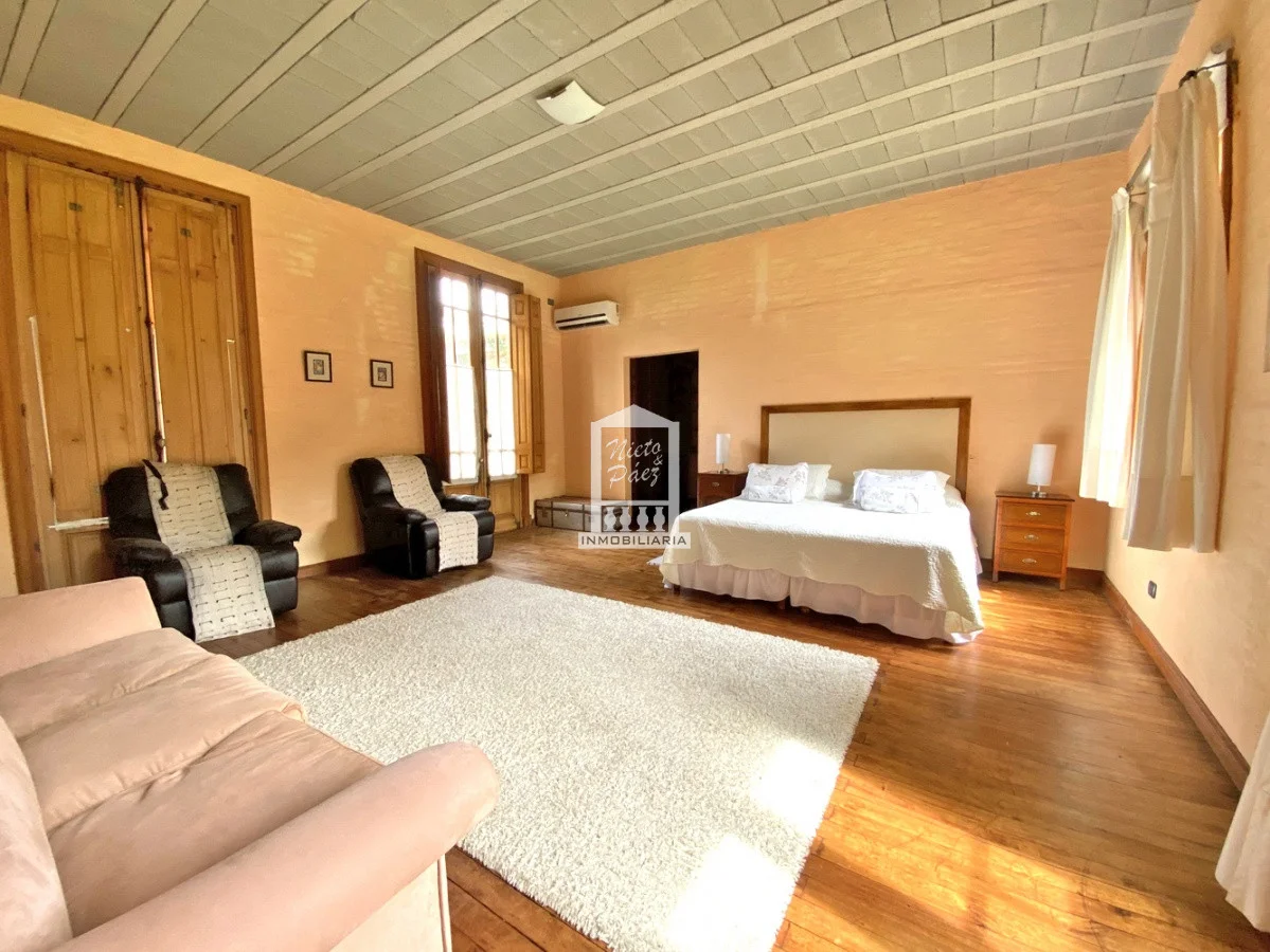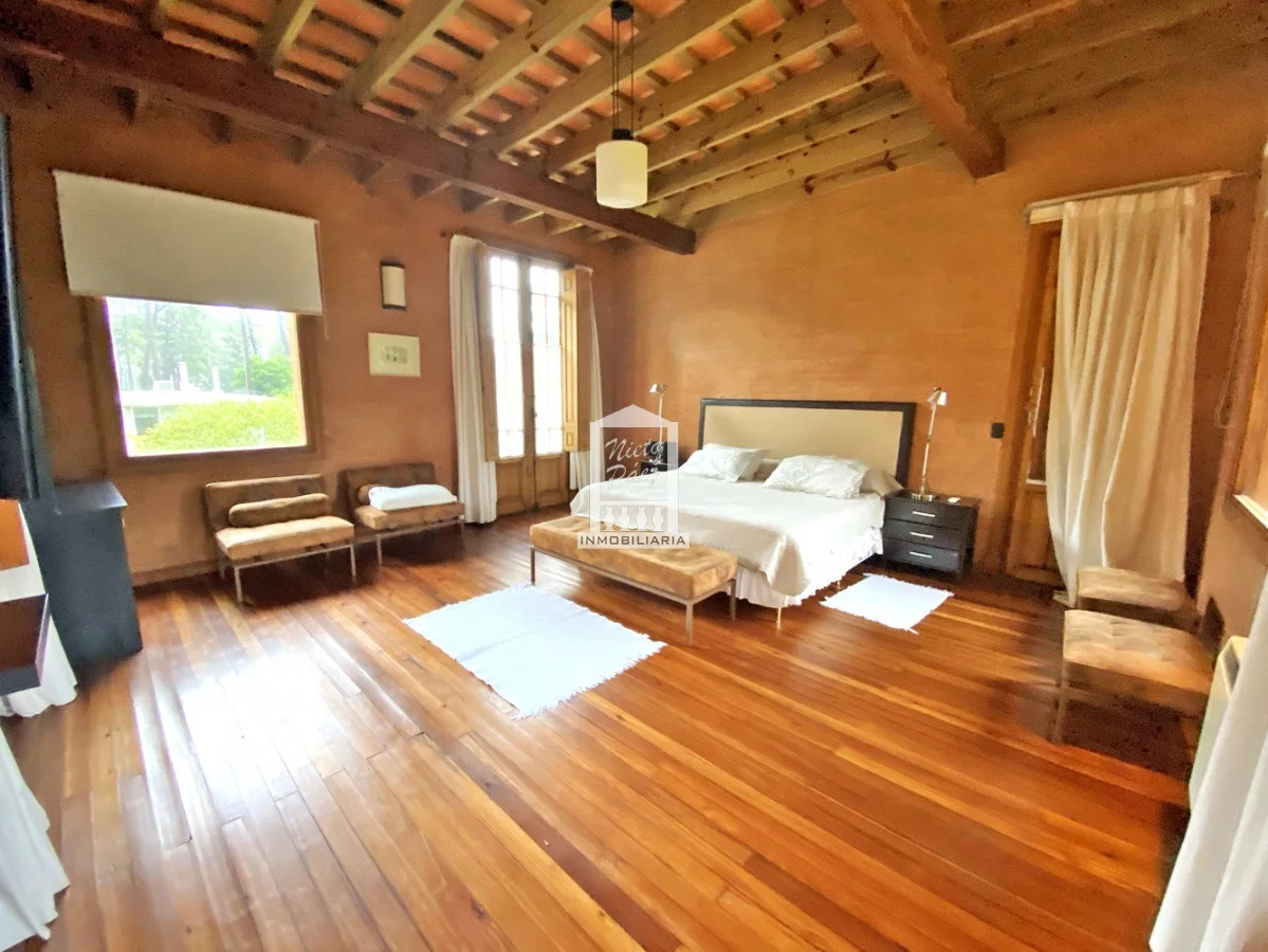 Son 5 dormitorios, 4 baños, 3 en suite, baño social, más casa de caseros o huéspedes.