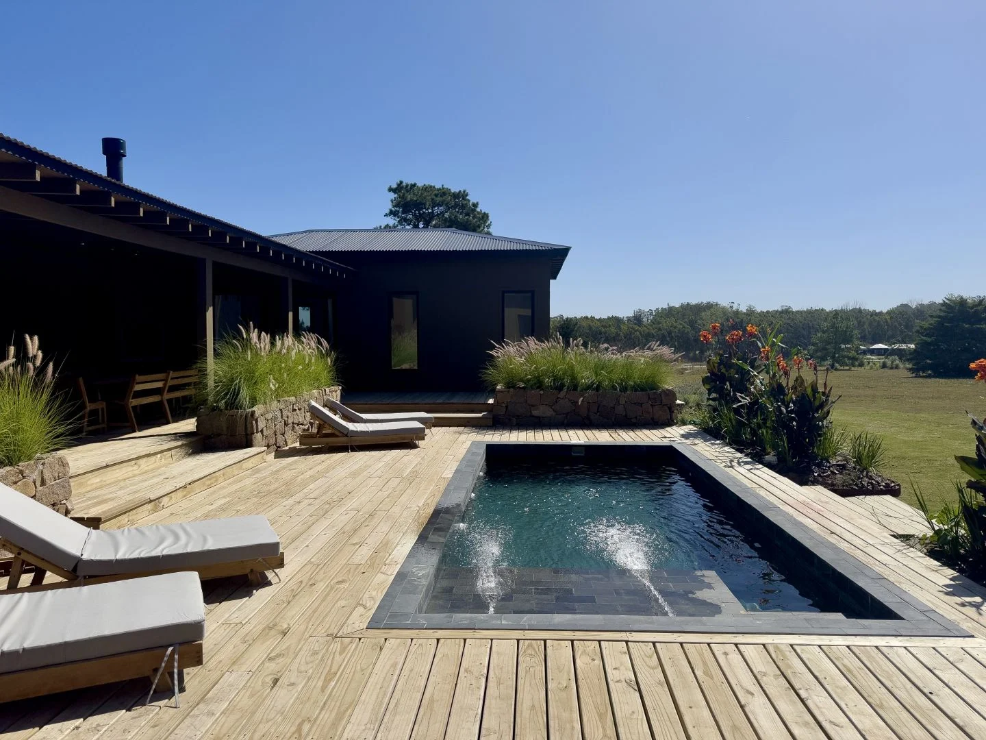 Casa en venta de 4 DORMITORIOS en Puerto Quetzal, nuevo barrio privado en LA BARRA Ubicada en este nuevo y precioso barrio rural de La Barra, Puerto Quetzal. Sobre un espectacular terreno, muy bien orientada hacia el Norte, encontramos ésta encantadora propiedad en construcción, con excelente terminaciones y un exquisito diseño que contempla las necesidades de todo el año convirtiendo la residencia disfrutable tanto en verano como en invierno. Cuenta con diversos ambientes para que cada persona pueda disfrutar al máximo tanto reunidos, como la paz de la soledad. Ambientes internos y externos acogedores, un gran salón principal social con preciosas vistas y entradas de luz, gran jardín con galerías, piscina y parrillero. Sobre el ala izquierda encontramos tres suites unidas por un pasillo distribuidor, que otorga privacidad y distancia de áreas sociales, y sobre el ala derecha, una gran cocina comedor con estar. En exterior una cuarta suite de huéspedes. Esta propiedad es la opción ideal para quienes buscan lujo costero, confort y un estilo de vida relajado en uno de los lugares más bellos de la región. Contáctanos . Caracteristicas: COMEDOR, DEPOSITO, DORMITORIO EN SUITE, ESCRITORIO, ESTAR, LAVADERO, LAVANDER?A, LIVING, TOILETTE, VESTIDOR, CANCHA DE TENIS, CANCHAS DEPORTIVAS, CONEXI?N A INTERNET, ESPACIOS DEPORTIVOS, ESTUFA A LE?A, HOGAR, PERMITE MASCOTAS, PLACARD EN COCINA, SALA DE REUNIONES, SUM, LUZ ELECTRICA, PORTERO ELECTRICO, TELEFONO, WIFI, CANCHA DE FUTBOL, BARRIO CERRADO, CHIMENEA XINTEL (BPV-BPV-10628)