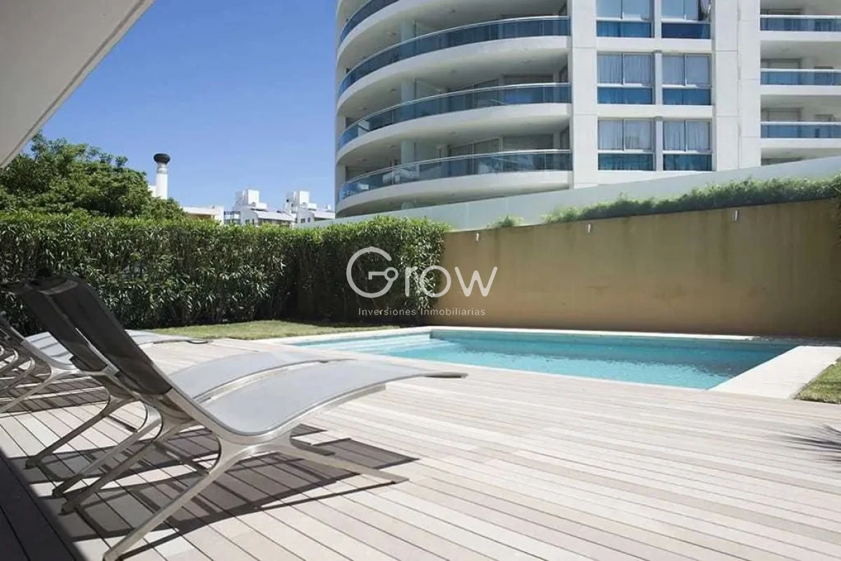 Edificio super exclusivo tiene 16 unidades todas con vista a la bahia. Departamento lateral con terraza en L con parrillero propio. Tiene 58m2 más terraza. Comodidades 2 dormitorios, 2 baños (uno completo y otro toilete), cocina semi integrada, living comedor, garage en subsuelo con baulera.
