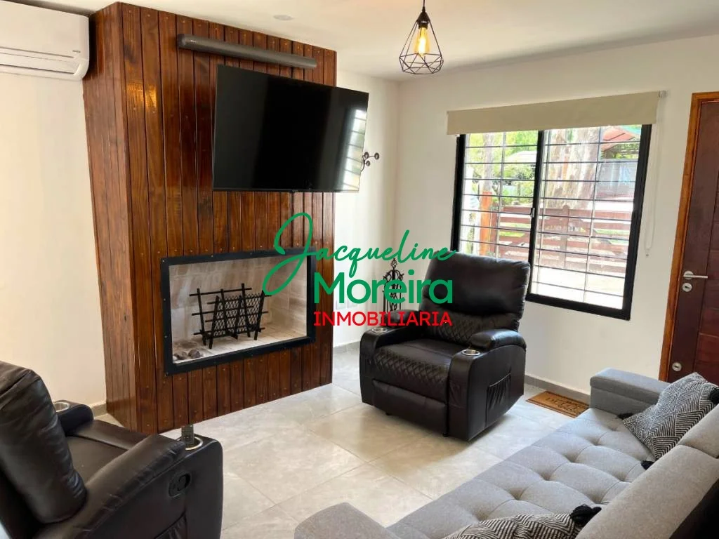 Al ingresar; cómodo living con sillones reclinable, tv y aire acondicionado. Cocina comedor totalmente equipada.