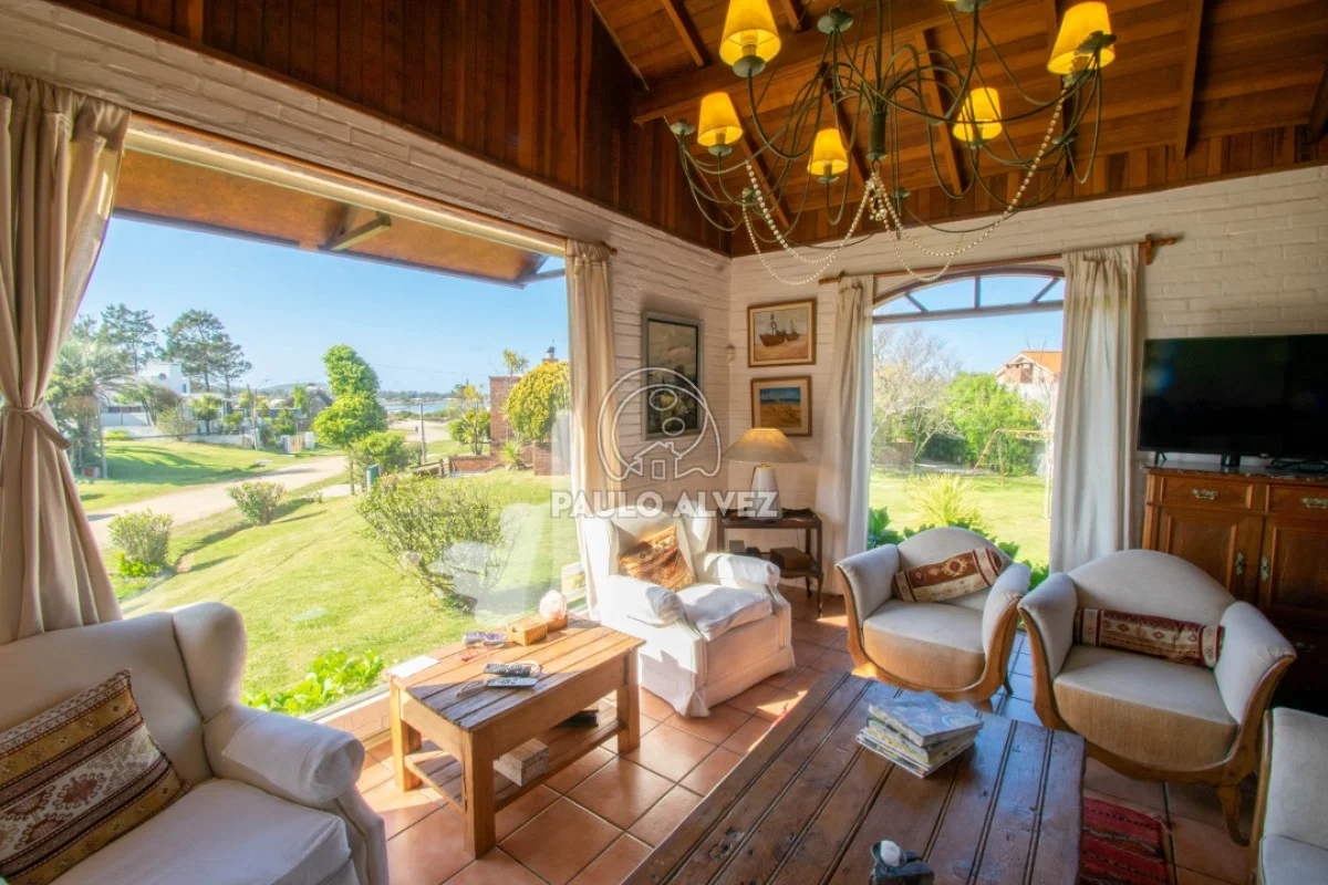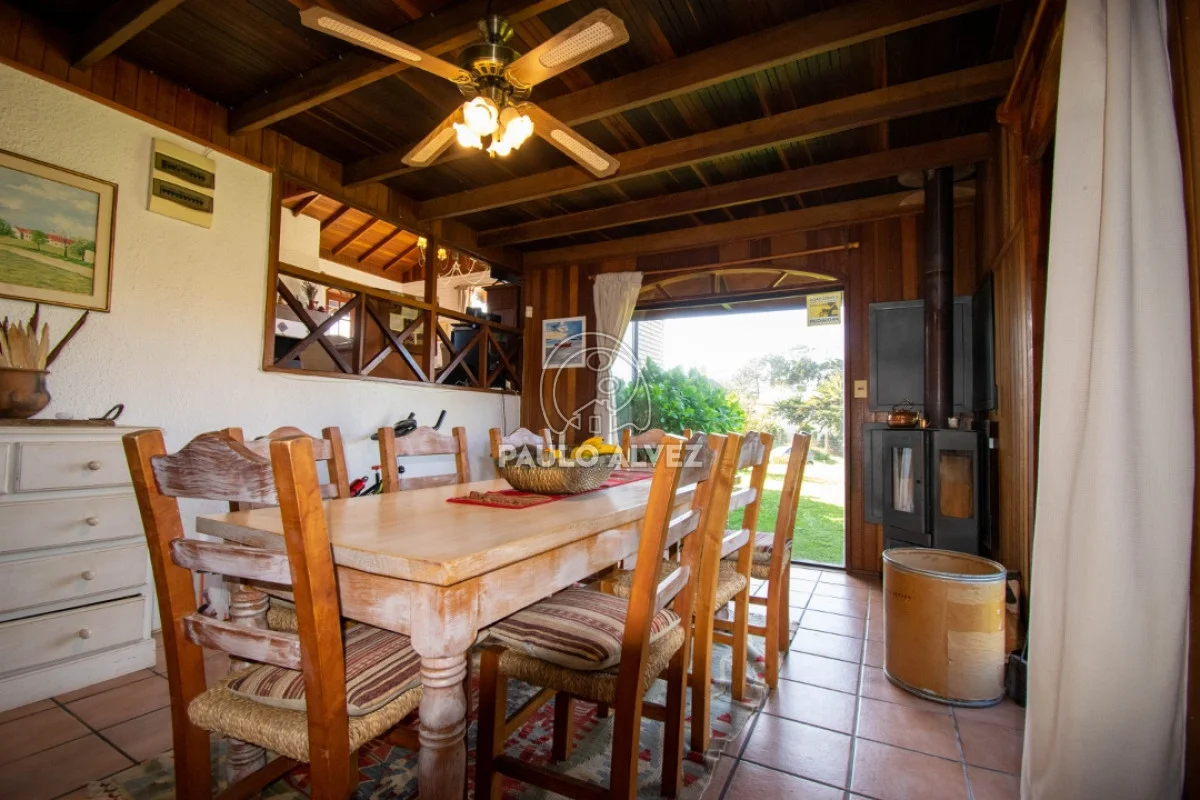 Excelente propiedad, ubicada en Playa Hermosa, a pocos metros del mar y a 10 minutos de Piriápolis. El buen gusto y sus vistas al mar la destacan. Construcción mixta, emplazada en un predio de 405 m², 120m² edificados. Aberturas y postigones en madera. Distribuida en tres niveles. En el primer nivel, amplio y luminoso living comedor, baño completo, cocina con muebles alto y bajo mesada definida por barra desayunador. Primero dormitorio con tres plazas. En el segundo nivel, living con espectacular vista al mar muy luminoso y estufa a leña. Cochera para dos vehículos con acceso al interior de la propiedad. Tercer nivel, tres dormitorios y baño completo. Al fondo, parrillero techado con living exterior y deck de madera. Jardín con cómoda mesa para disfrutar momentos de reuniones. Consulte por más información.