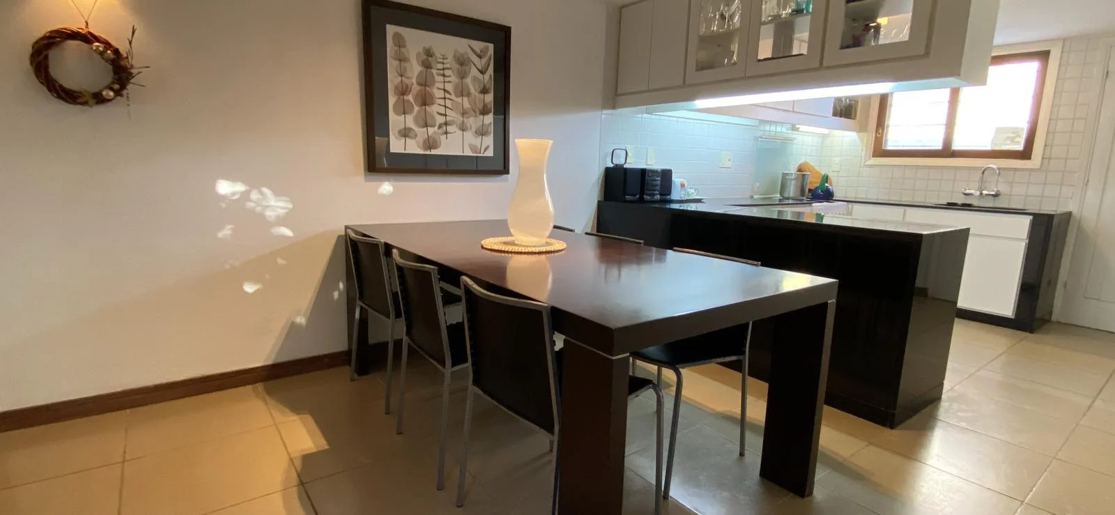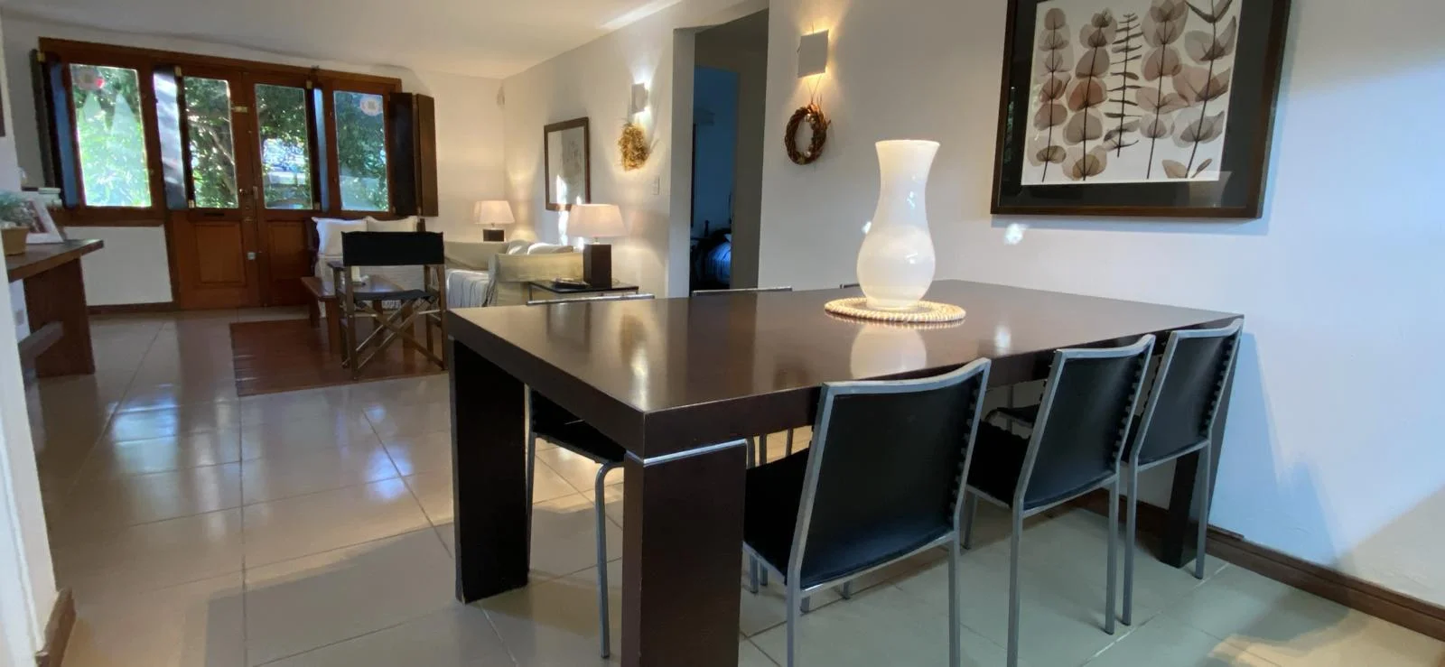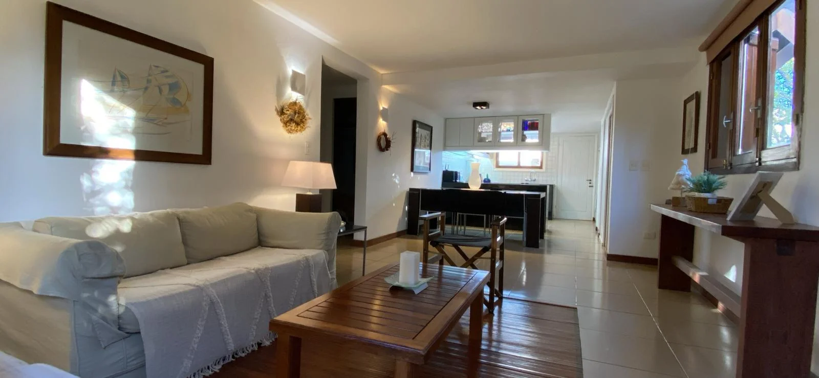 - Living comedor amplio con cocina integrada y mesa para 6 personas.