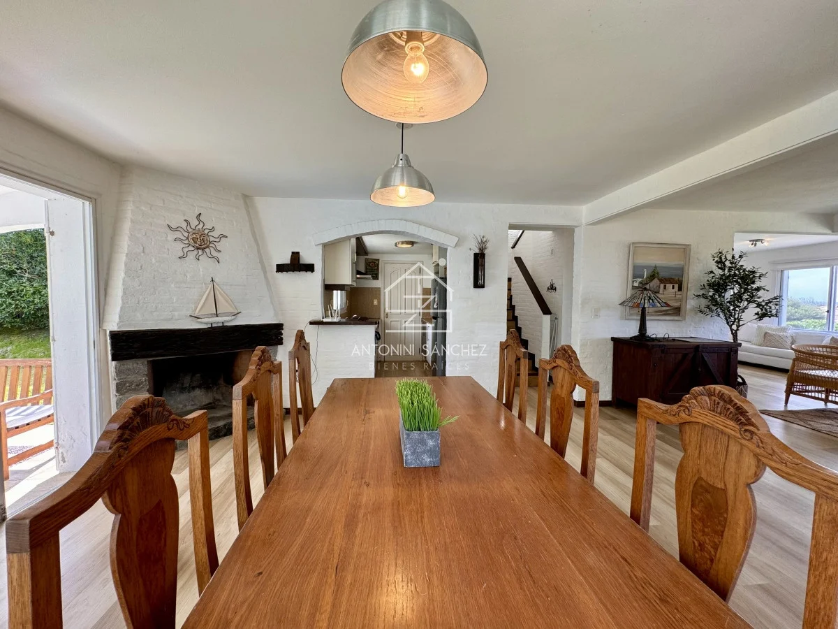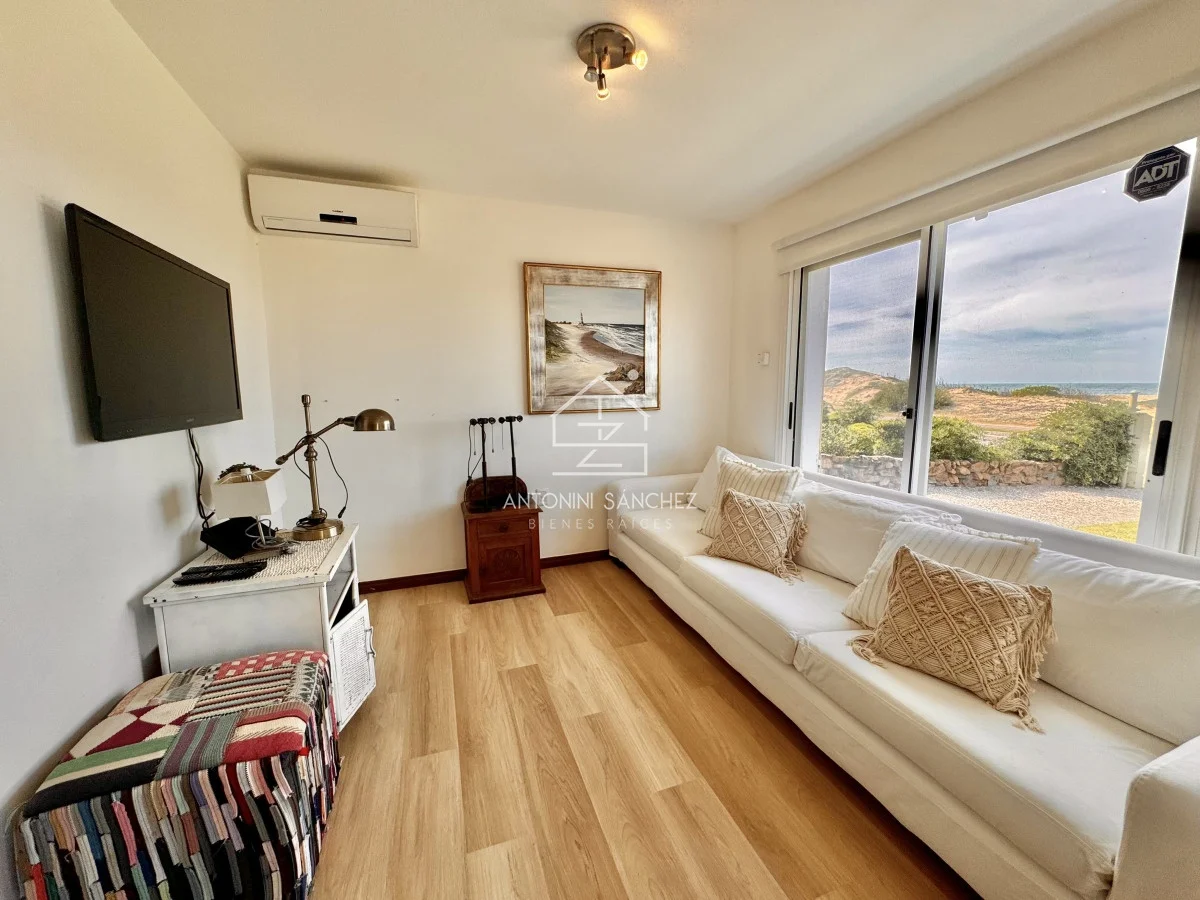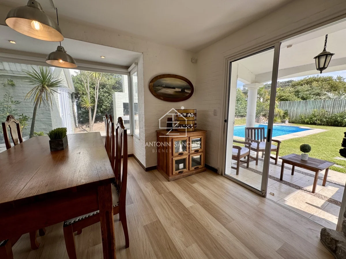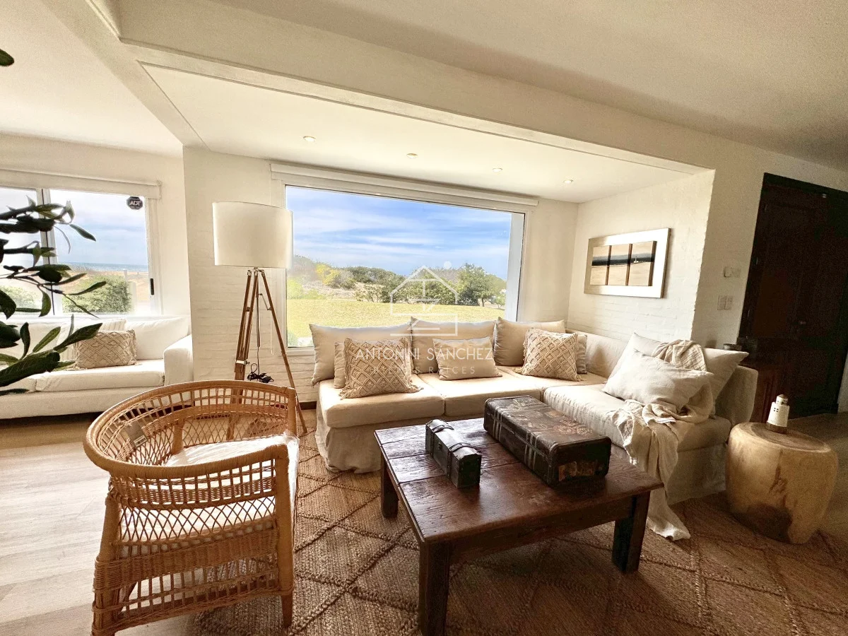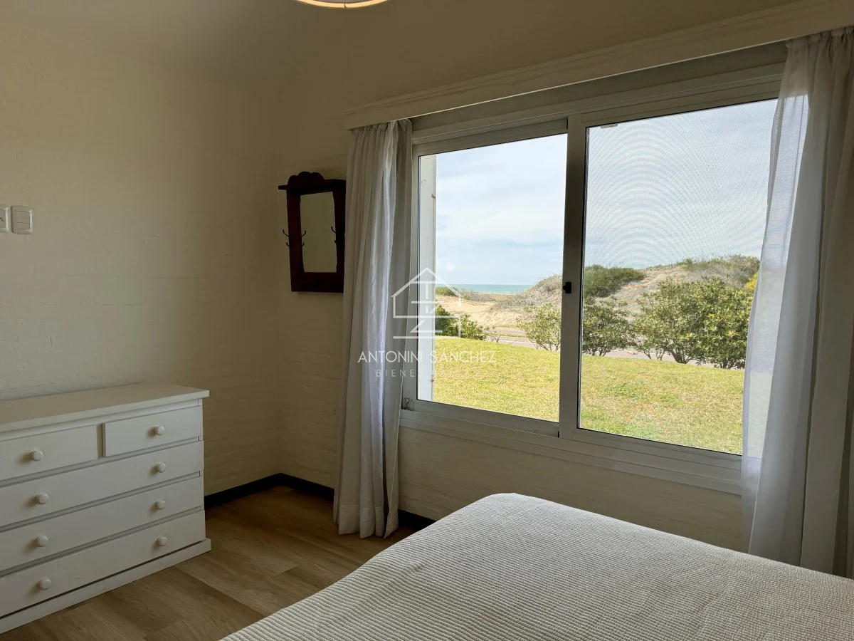 La esta ubicada en una primera linea al mar, en la zona de Manantiales, cuenta con 5 dormitorios amplios con placares, 3 baños completos, sala de television, amplio living con vista al mar y las dunas naturales de la playa, comedor y cocina definida. Ademas, parrillero, lavadero, cochera techada y pileta exterior.