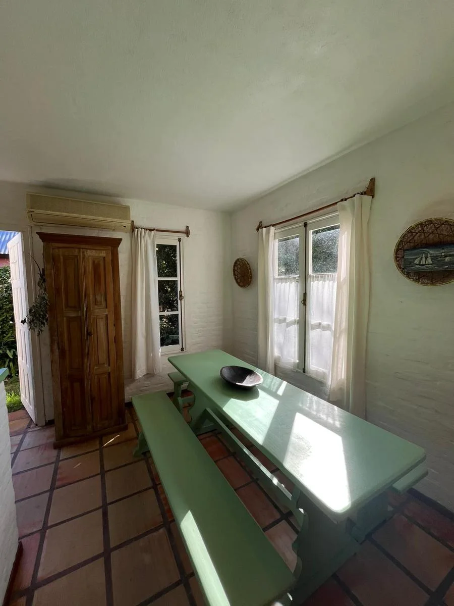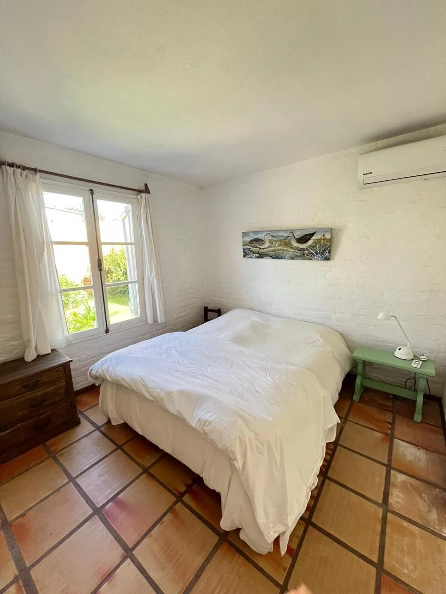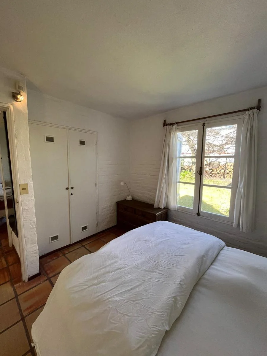 CASA EN ALQUILER EN LA BARRA.La propiedad se encuentra muy cerca del centro comercial. Cuenta con un jardin de 600 m2, construida en una sola planta con la siguiente distribucion: Living comedor y cocina integrada con barra. Aire acondicionado y estufa. Suite principal con aire y baño con ducha. El segundo dormitorio cuenta con dos camas de una plaza y utiliza el baño del pasillo. En un bloque externo cuenta con dos habitaciones mas y un baño que se utiliza para personal de servicio. Parrillero y pérgola.