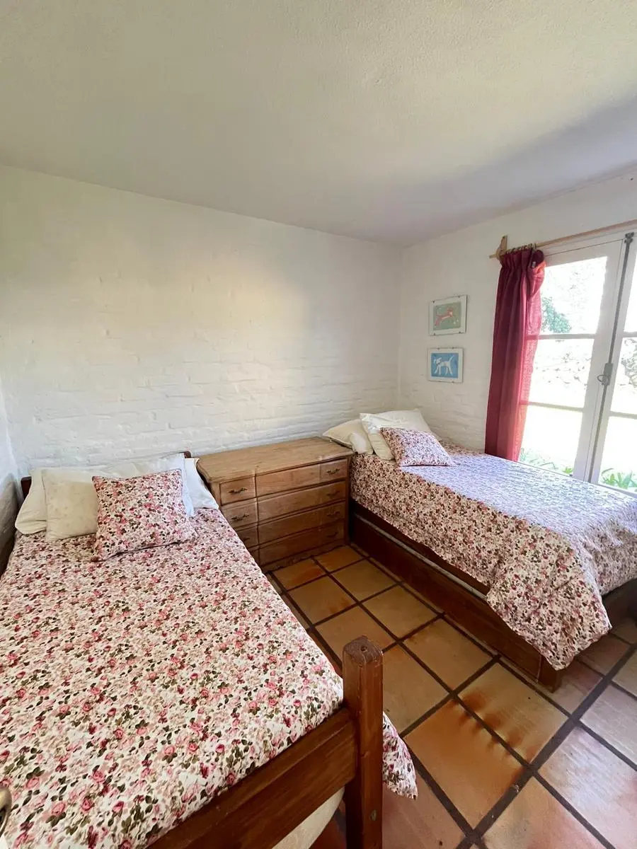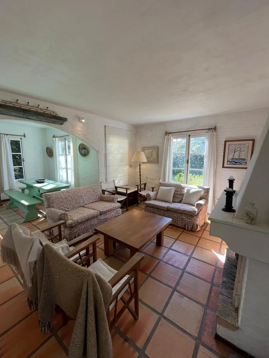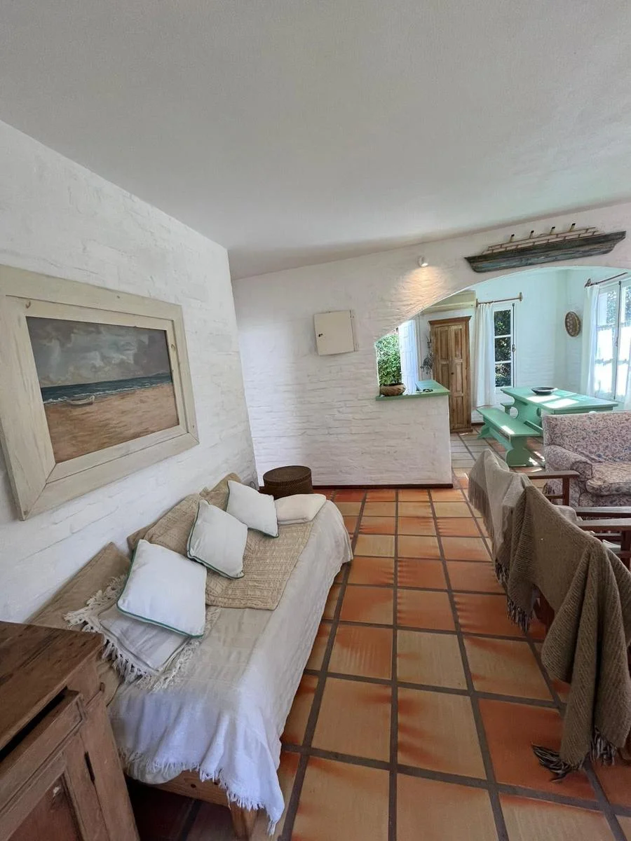 CASA EN ALQUILER EN LA BARRA.La propiedad se encuentra muy cerca del centro comercial. Cuenta con un jardin de 600 m2, construida en una sola planta con la siguiente distribucion: Living comedor y cocina integrada con barra. Aire acondicionado y estufa. Suite principal con aire y baño con ducha. El segundo dormitorio cuenta con dos camas de una plaza y utiliza el baño del pasillo. En un bloque externo cuenta con dos habitaciones mas y un baño que se utiliza para personal de servicio. Parrillero y pérgola.